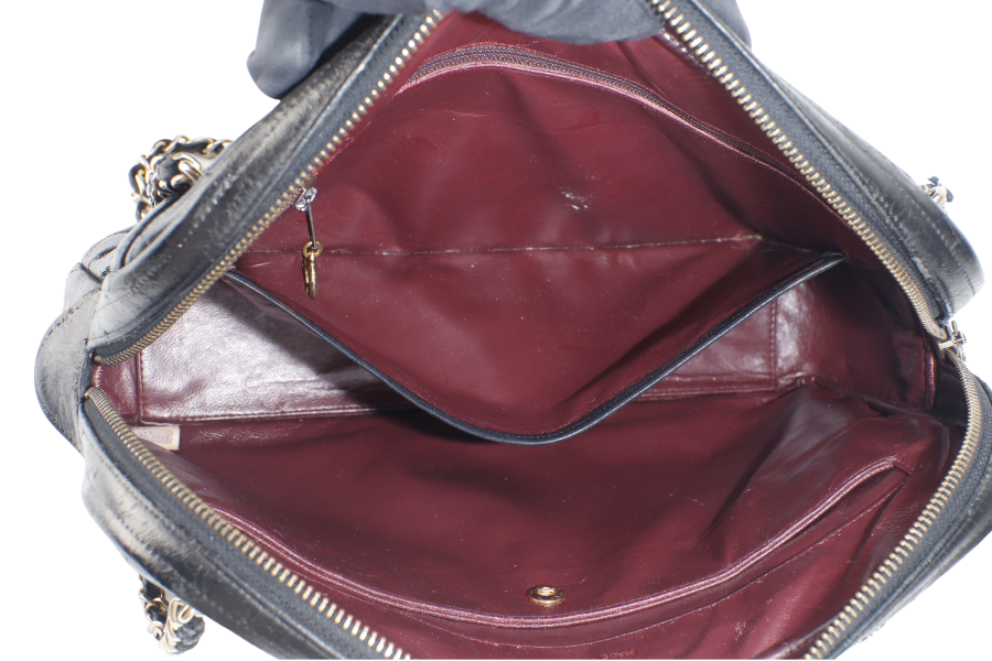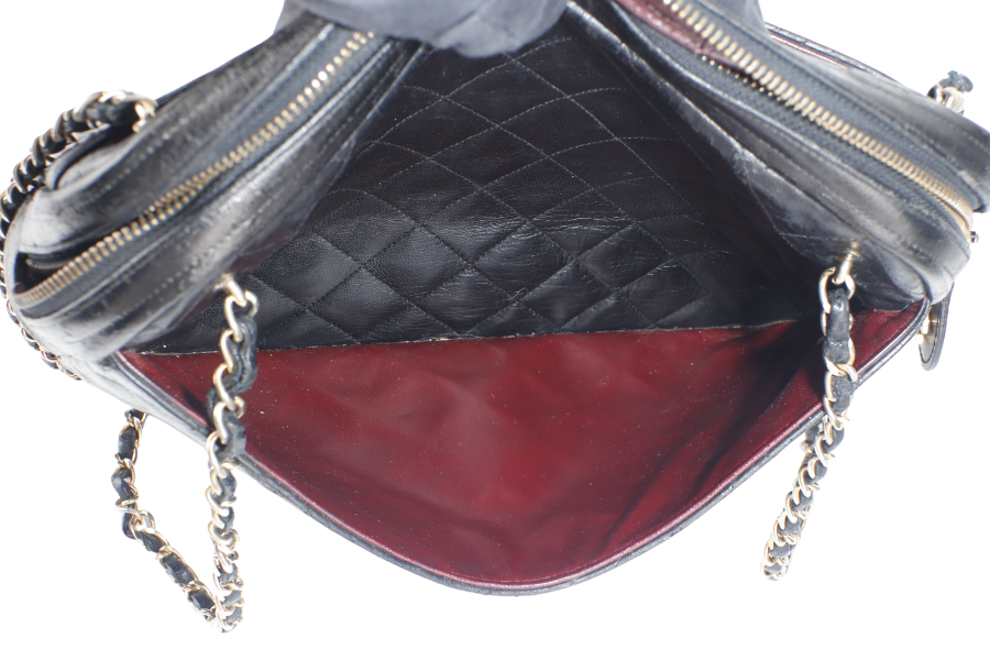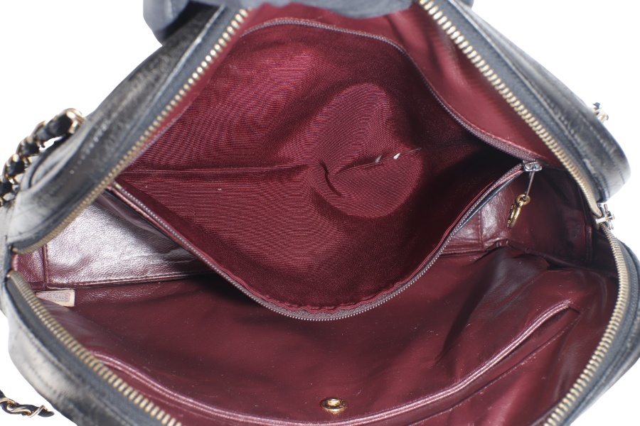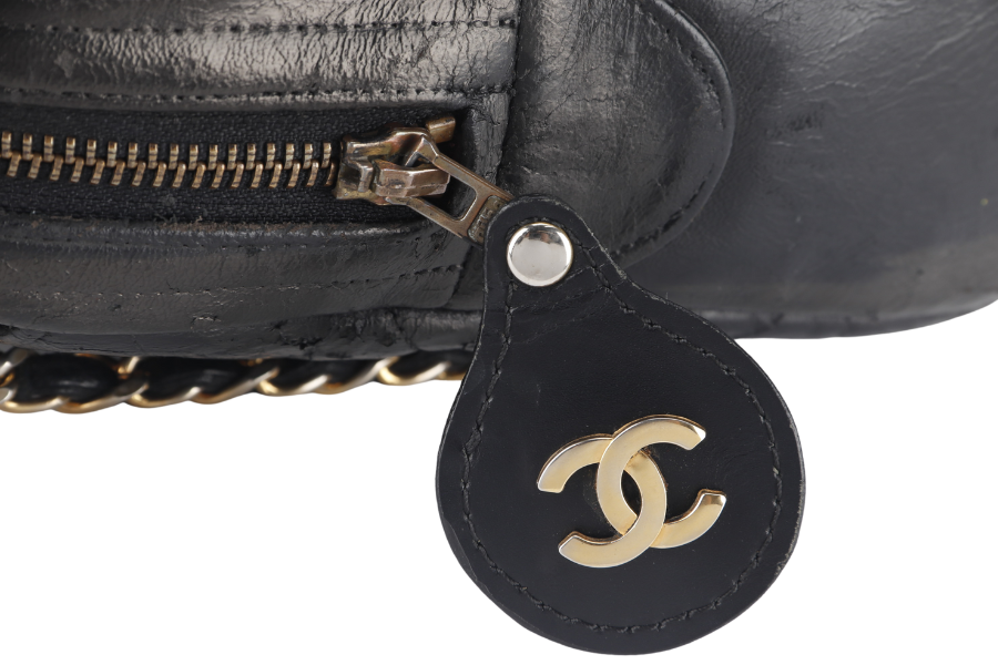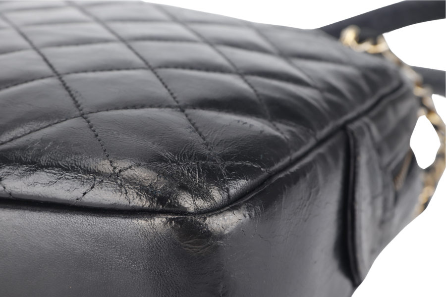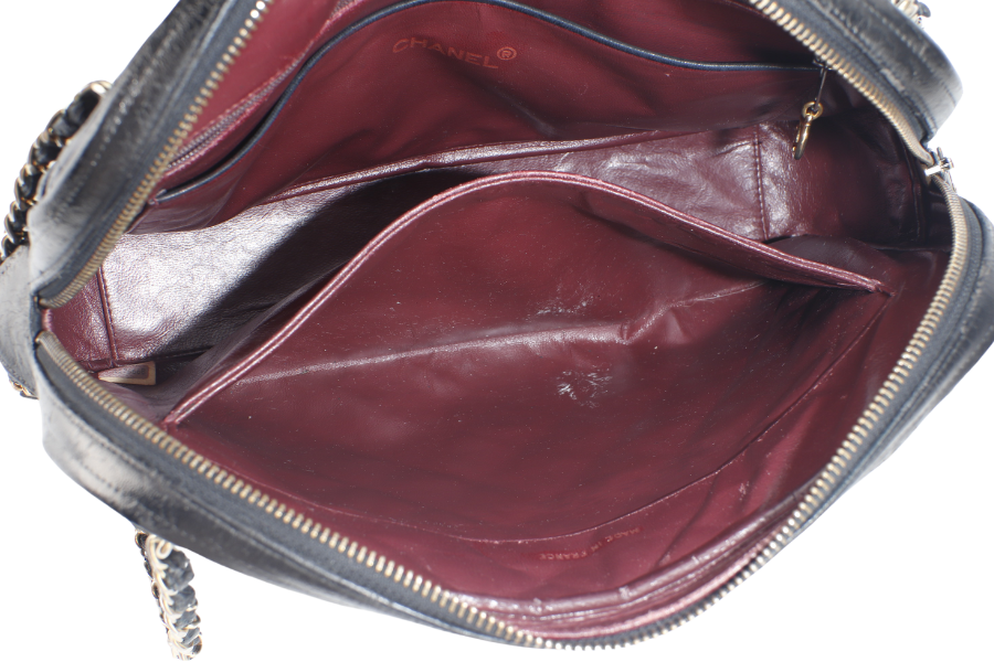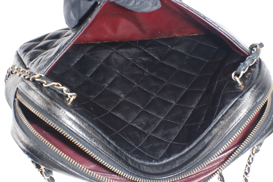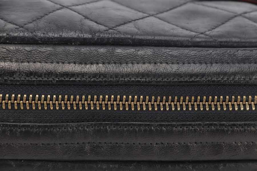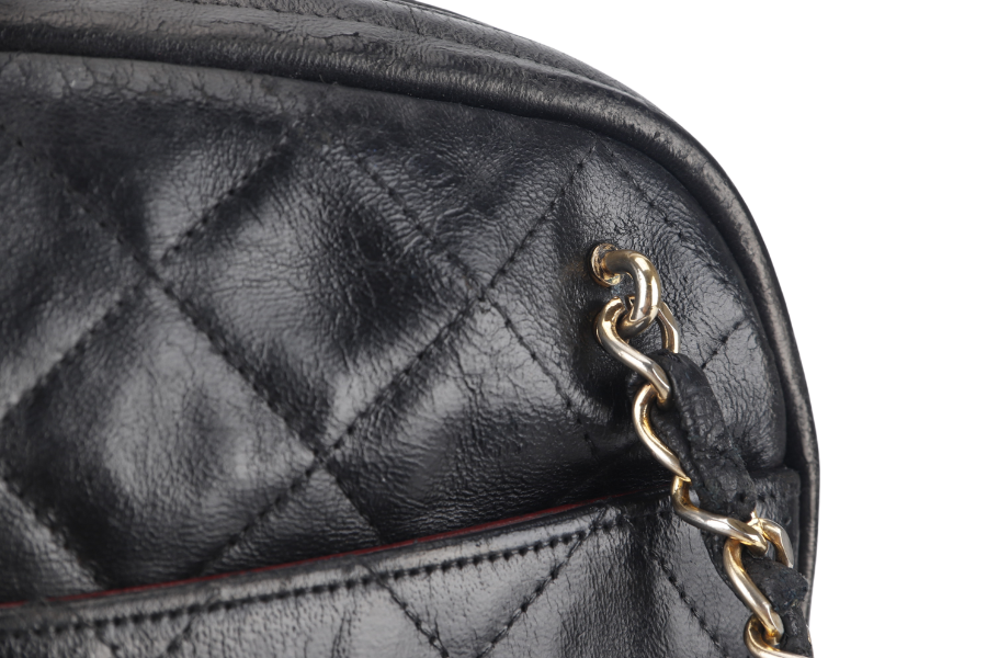 CHANEL VINTAGE CAMERA BAG (117xxxx) MEDIUM BLACK LAMBSKIN QUILTED GOLD HARDWARE NO DUST COVER