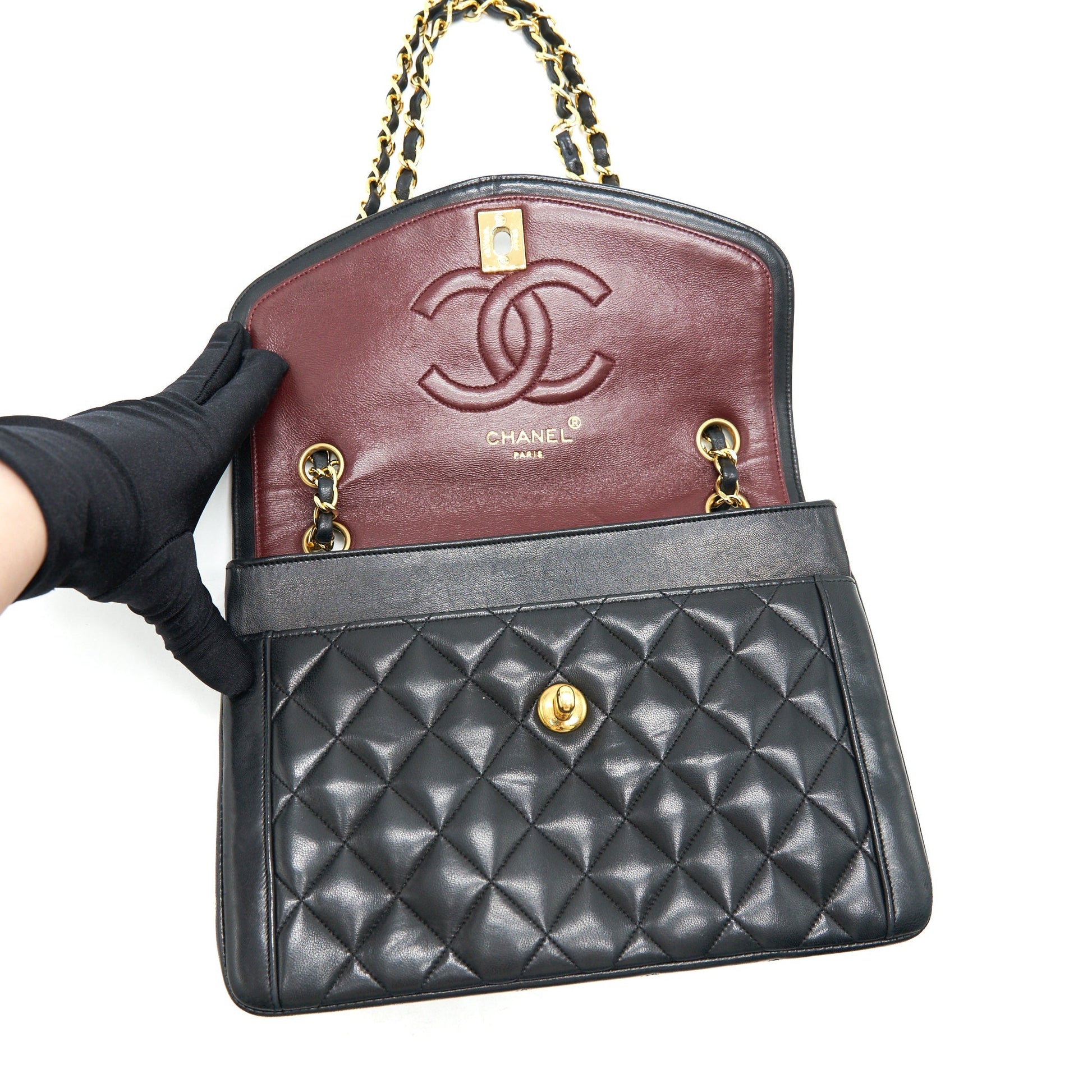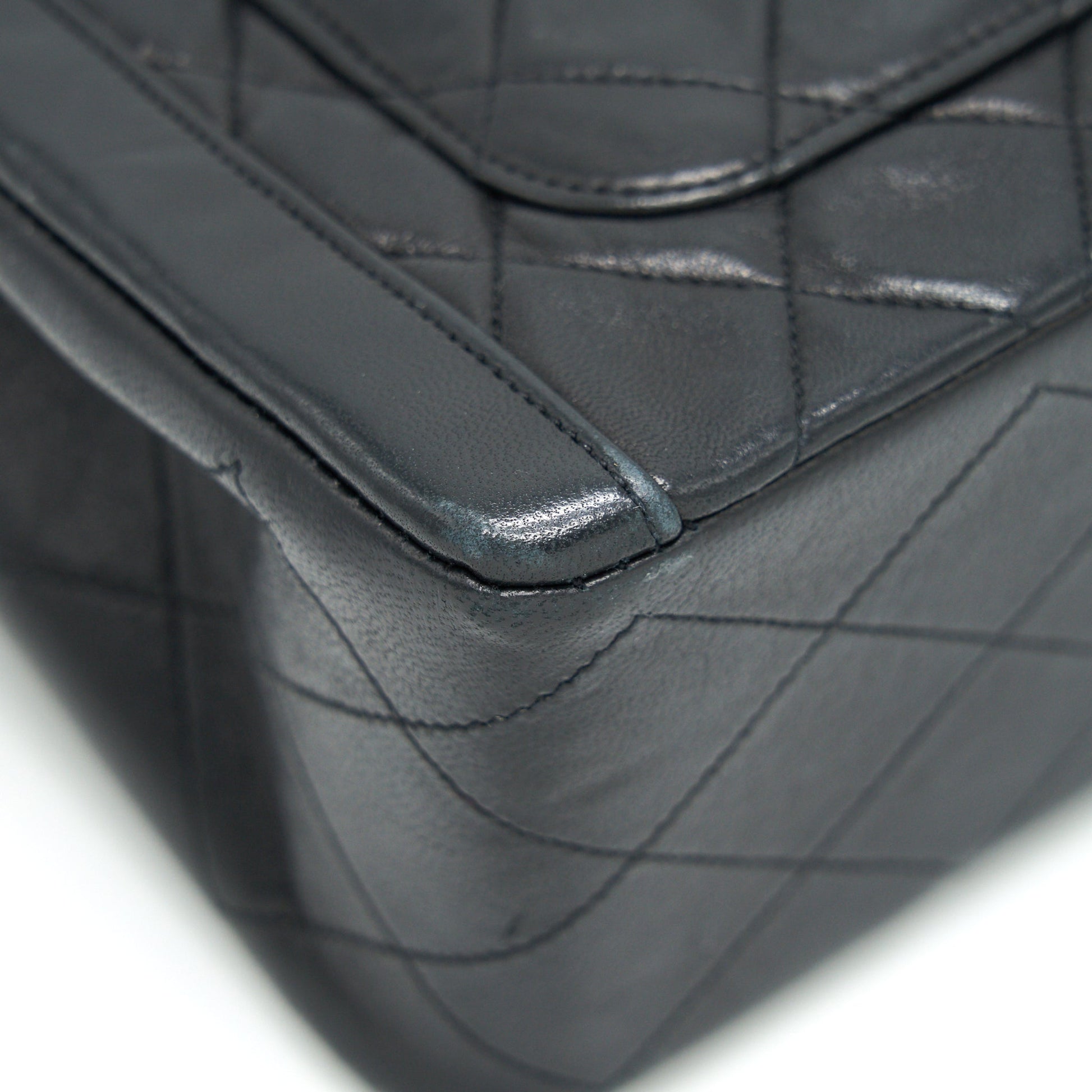 (This item is in fair condition with loosing puffy at back Lambskin, slight sign of , light rubbing on corners.)