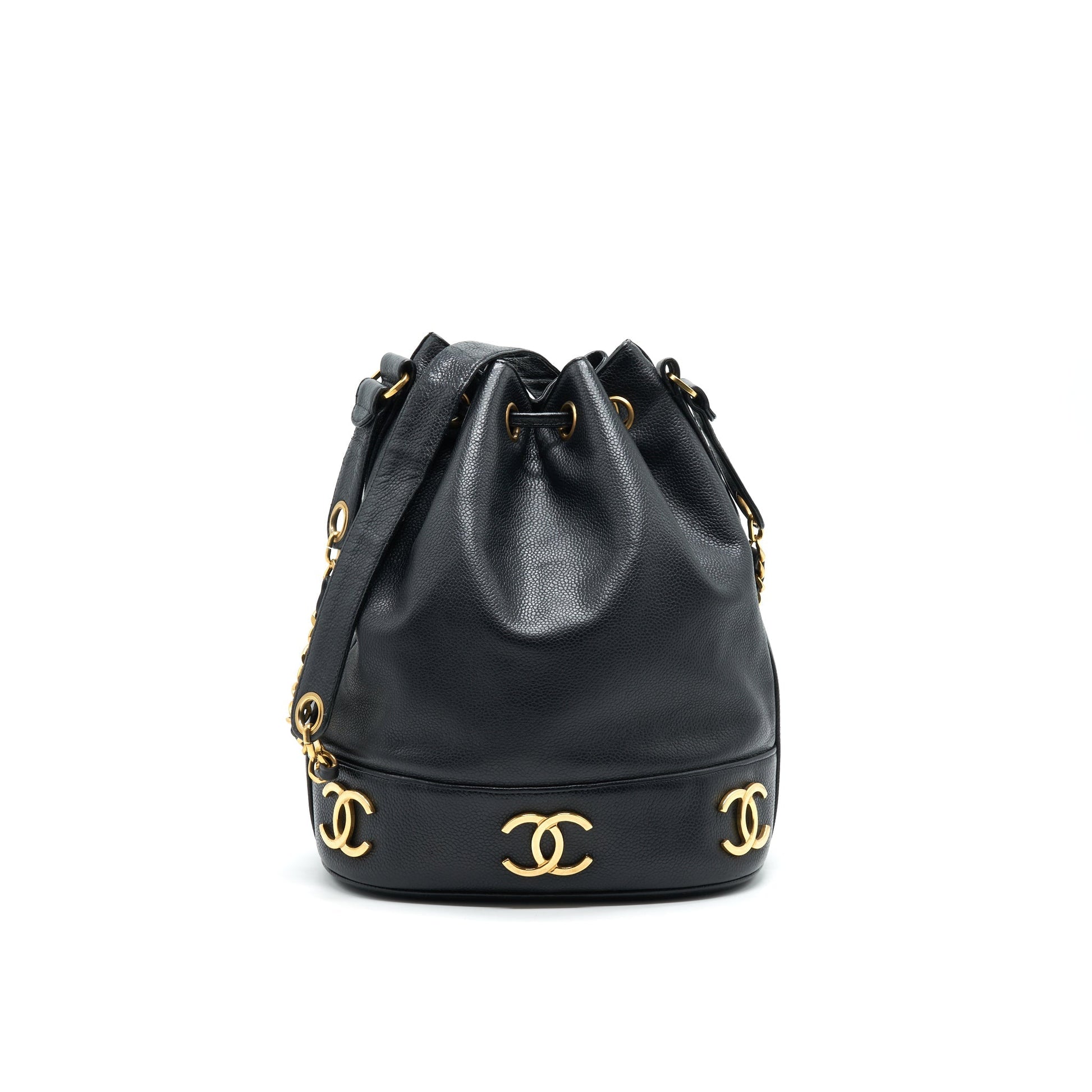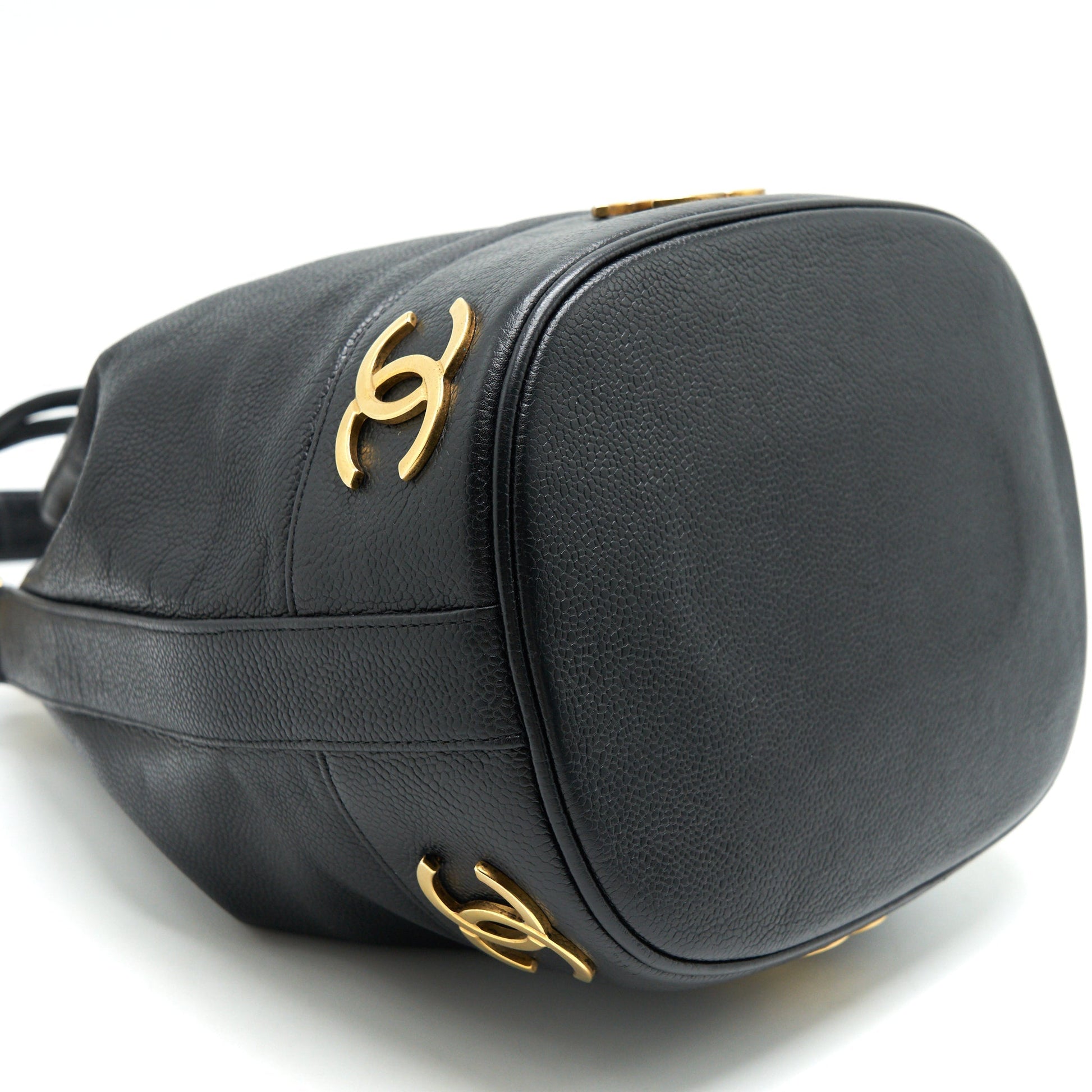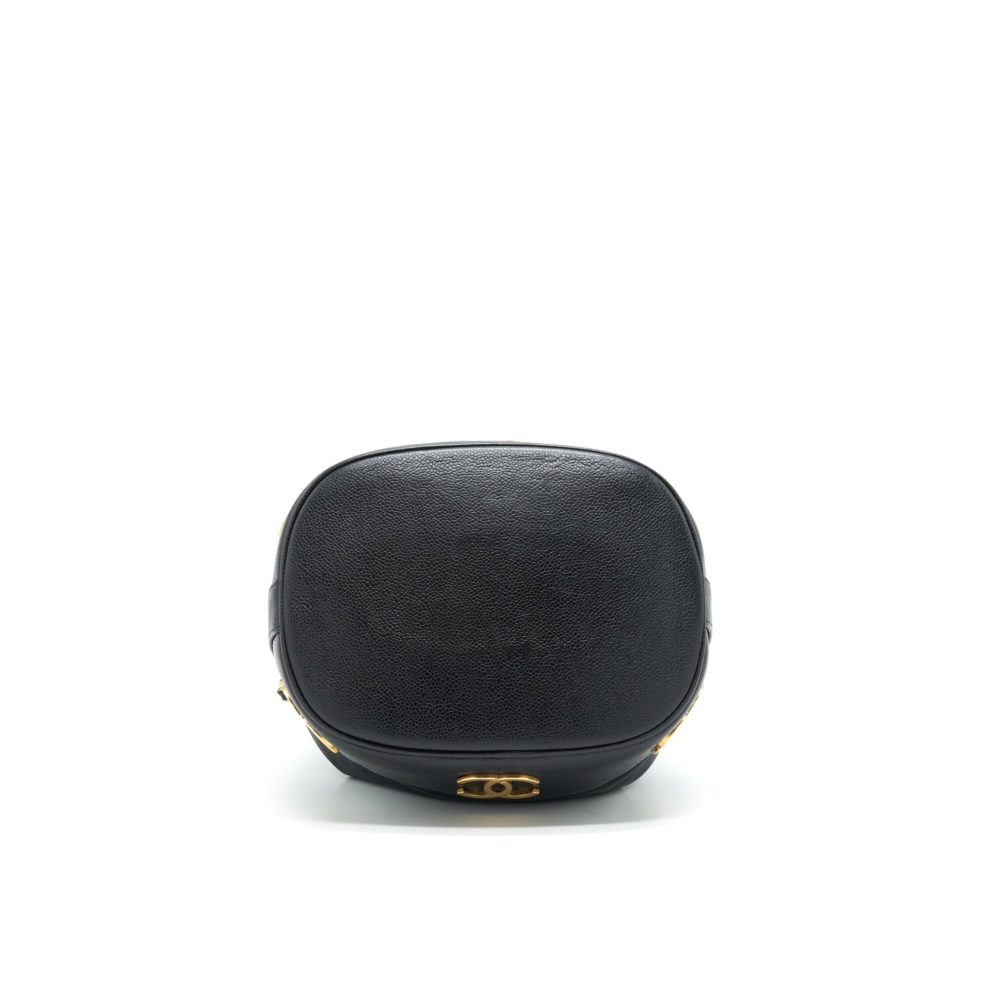 CHANEL Vintage CC Logo Pearl Crush Caviar Bucket Bag Black