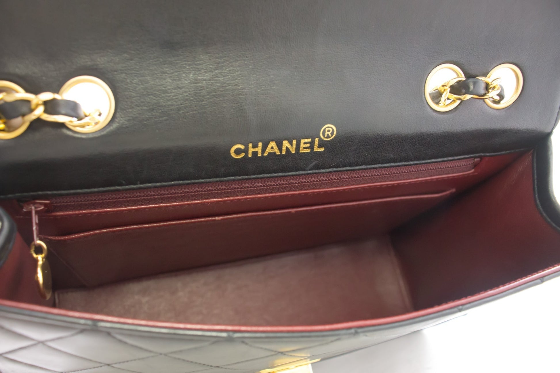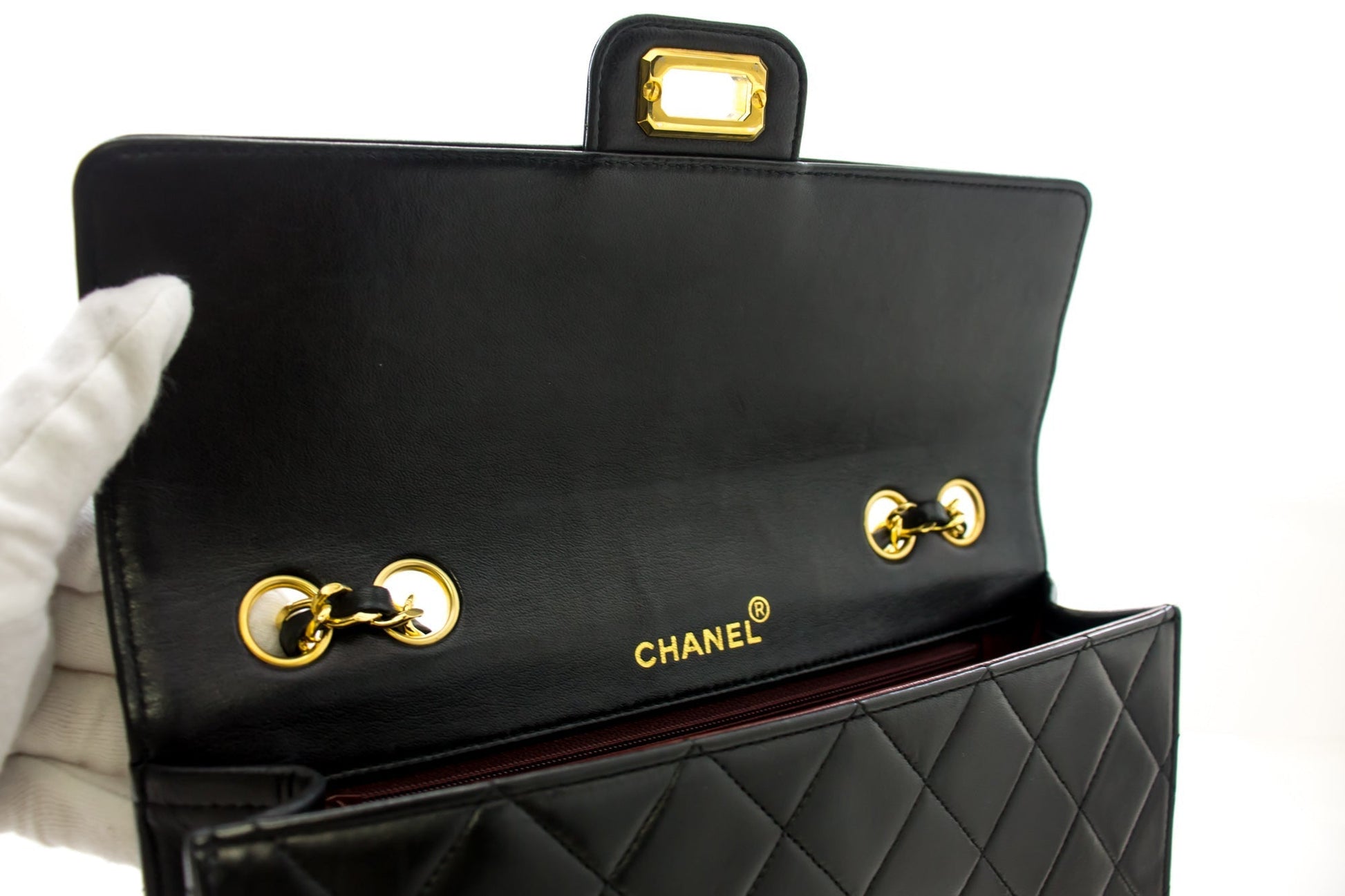 An authentic CHANEL Vintage Classic Chain Shoulder Bag Black Quilted Flap Lamb i93 This item is Vintage / Classic. The year of manufacture would be 1989-1991.