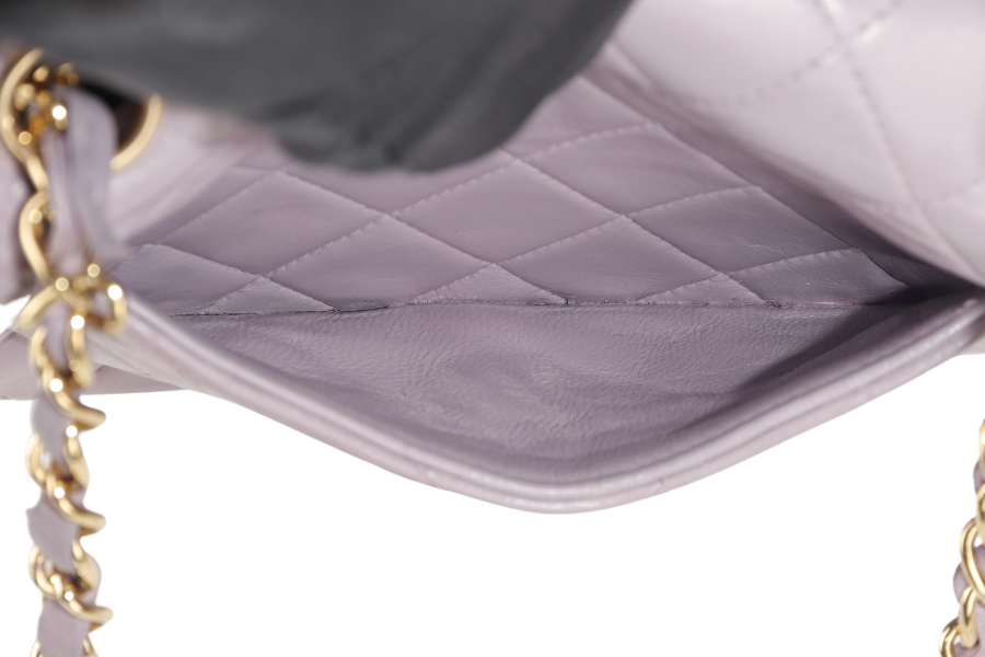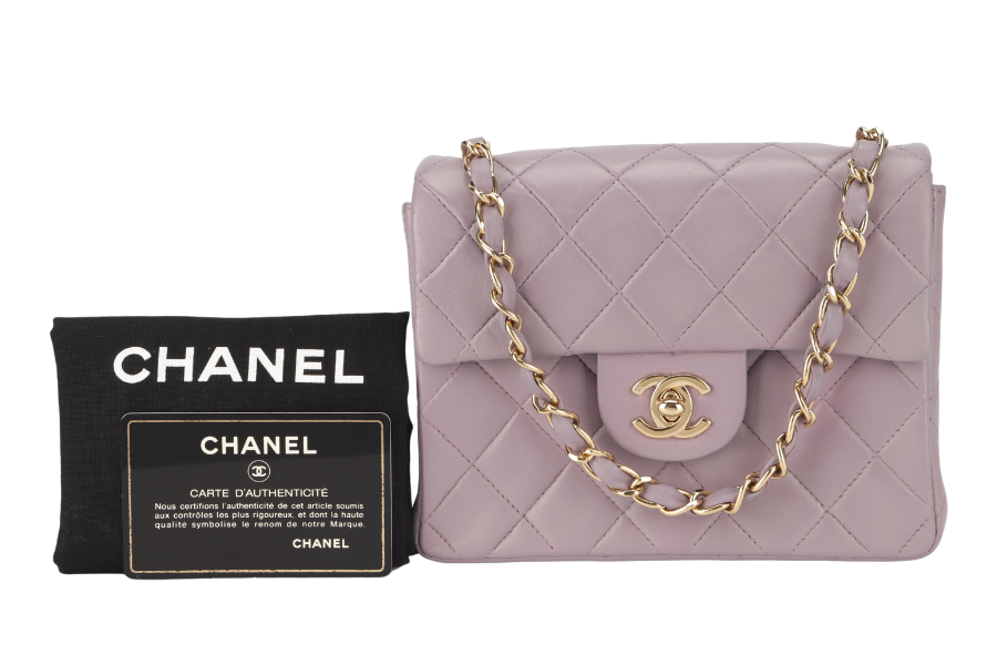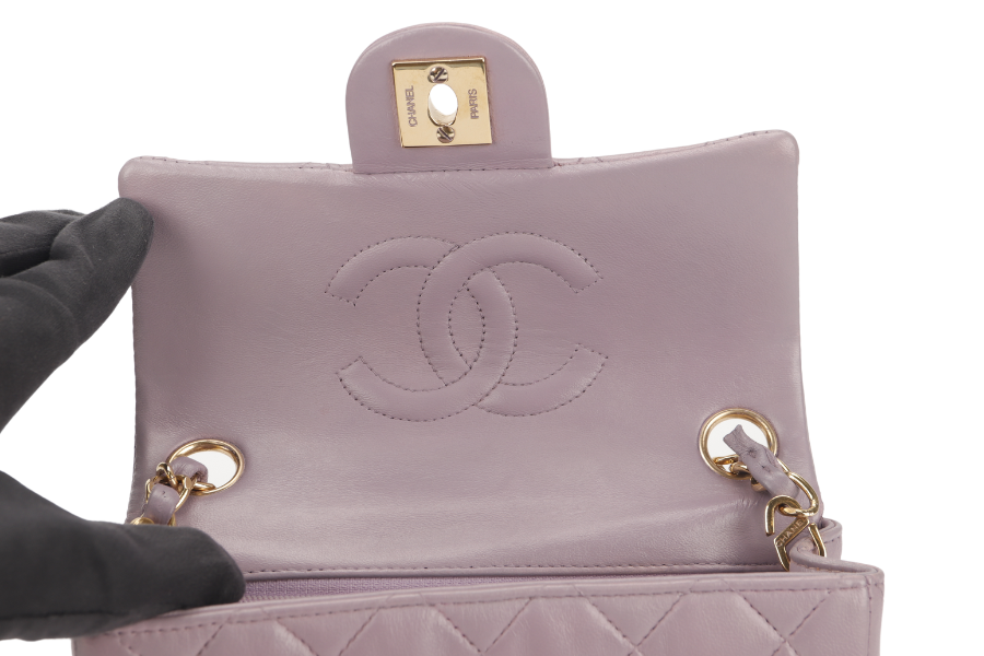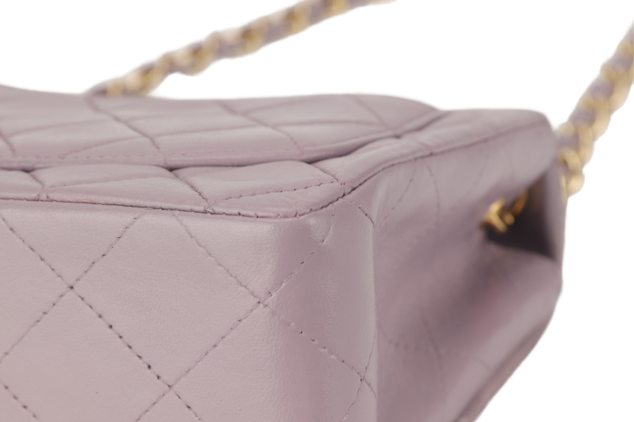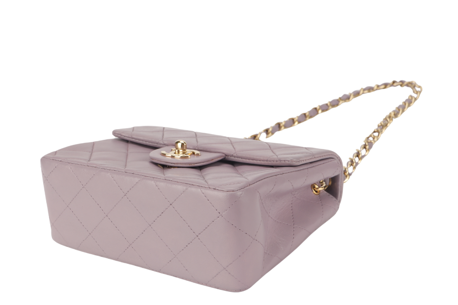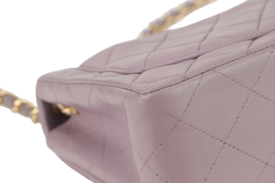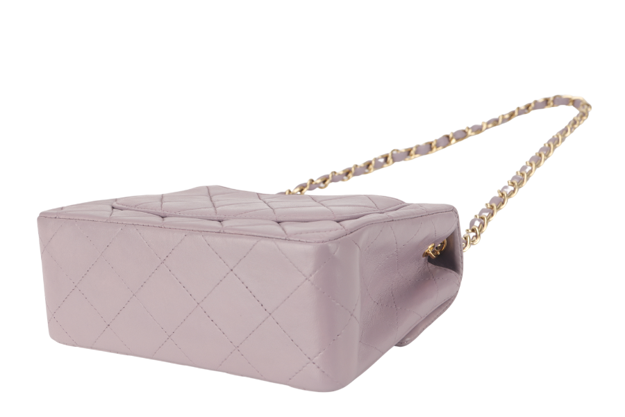 CHANEL VINTAGE CLASSIC FLAP MINI SQUARE (795xxxx) LILAC LAMBSKIN GOLD HARDWARE WITH AND DUST COVER