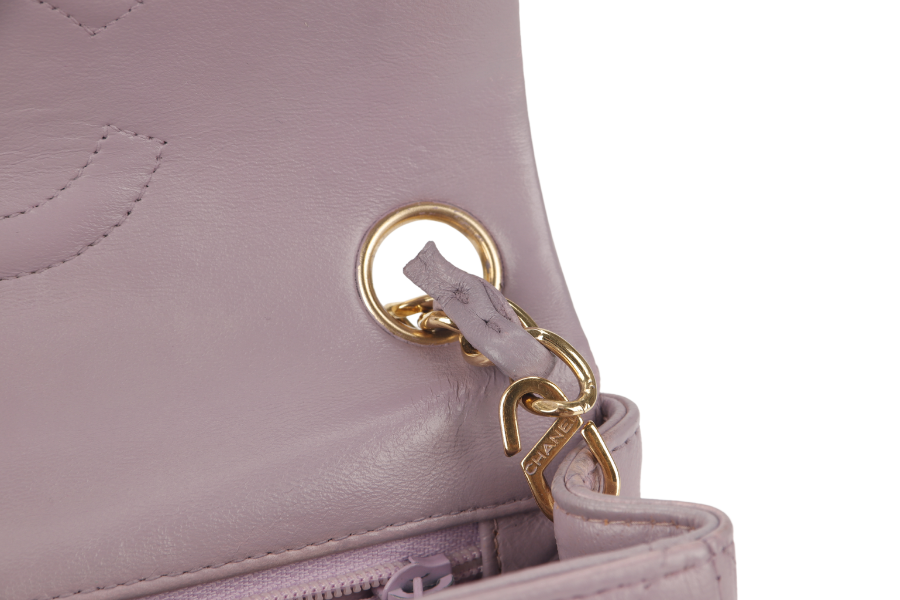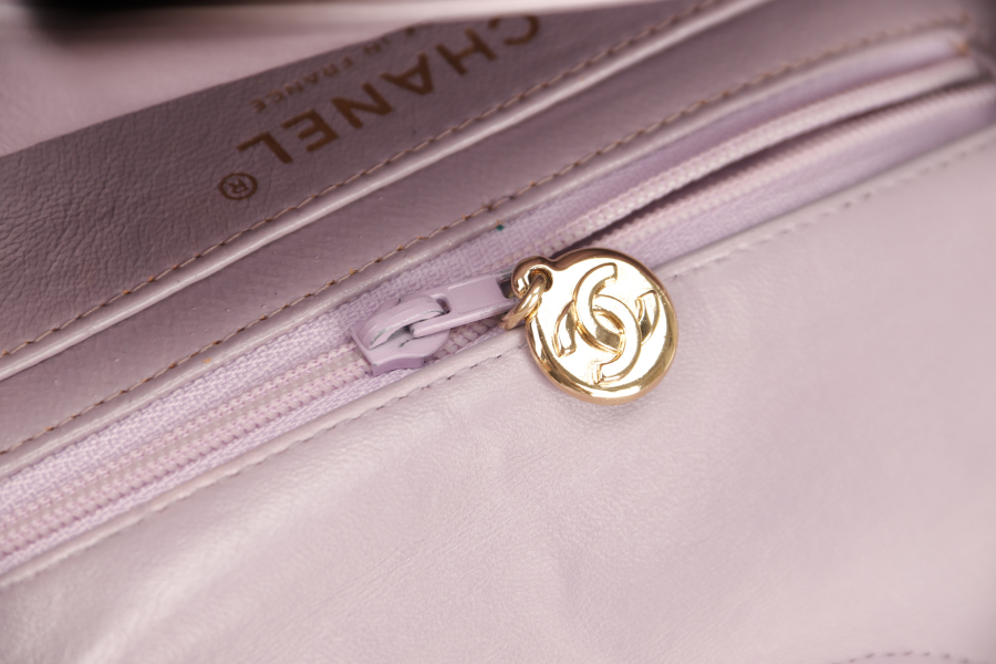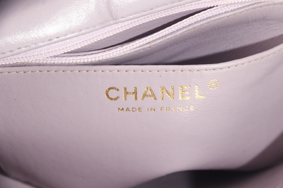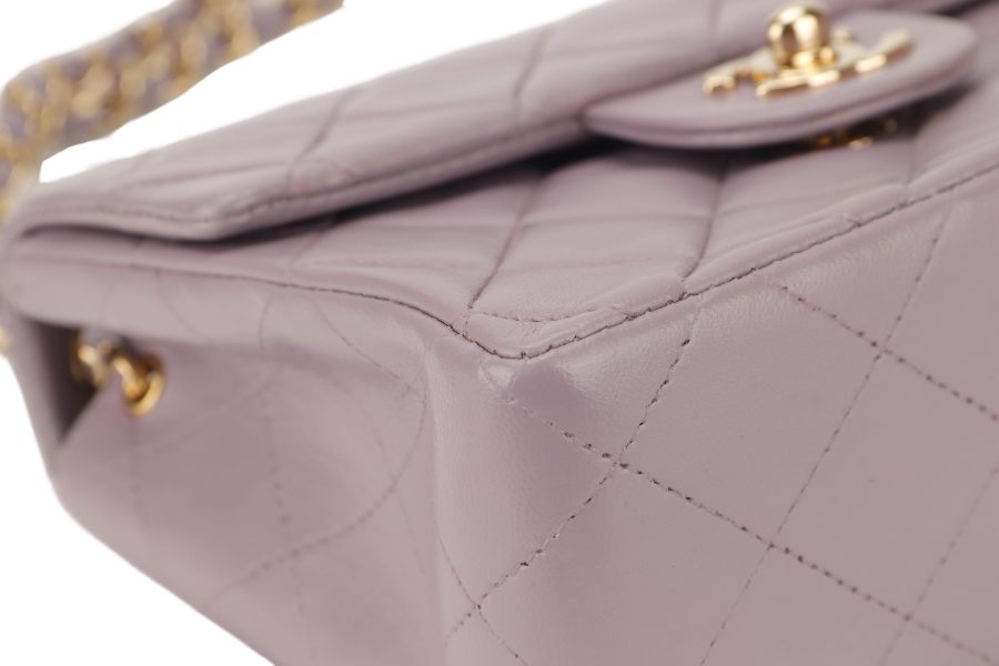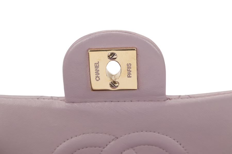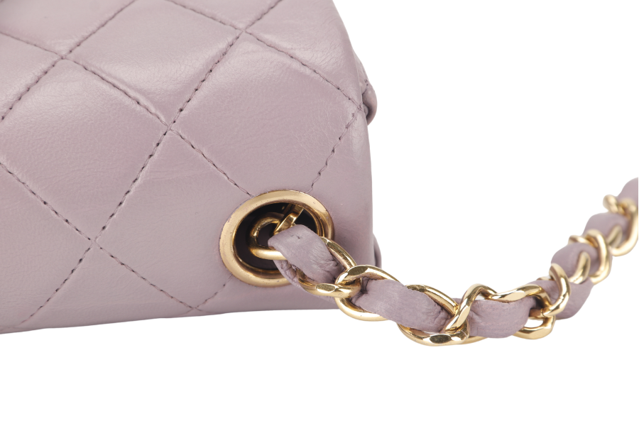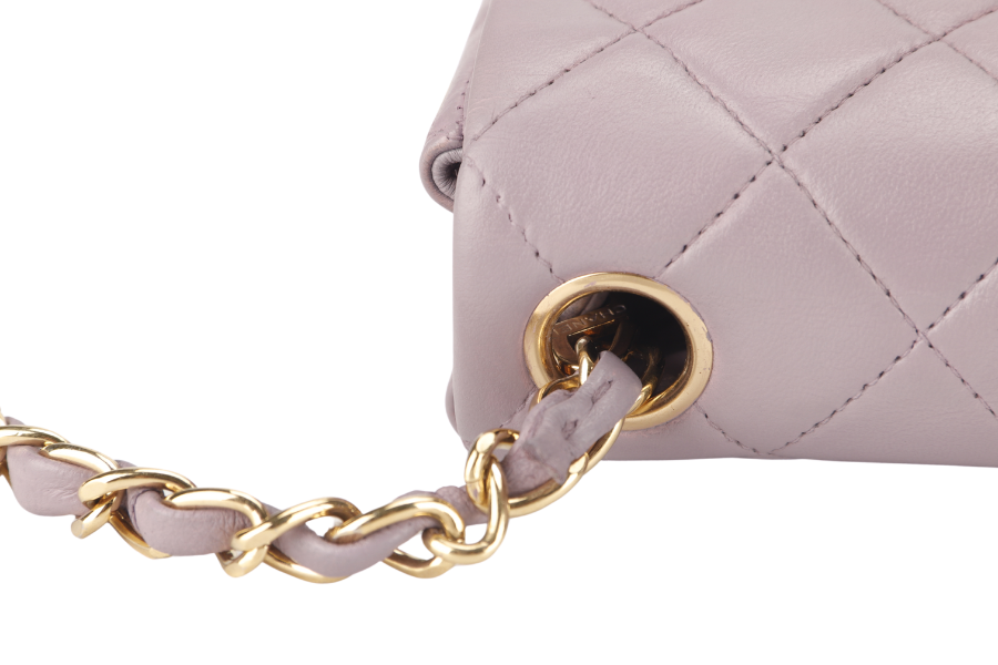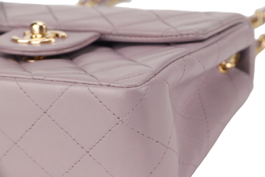 CHANEL VINTAGE CLASSIC FLAP MINI SQUARE (795xxxx) LILAC LAMBSKIN GOLD HARDWARE WITH AND DUST COVER
