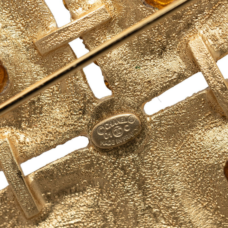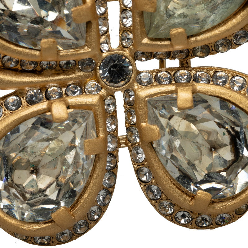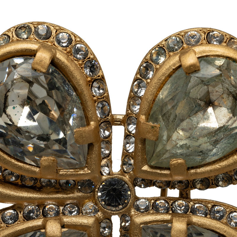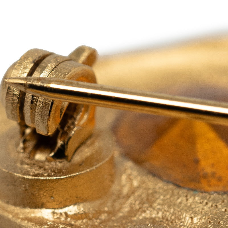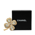 CHANEL Vintage Brooch Clover Rhinestone Gold Plating