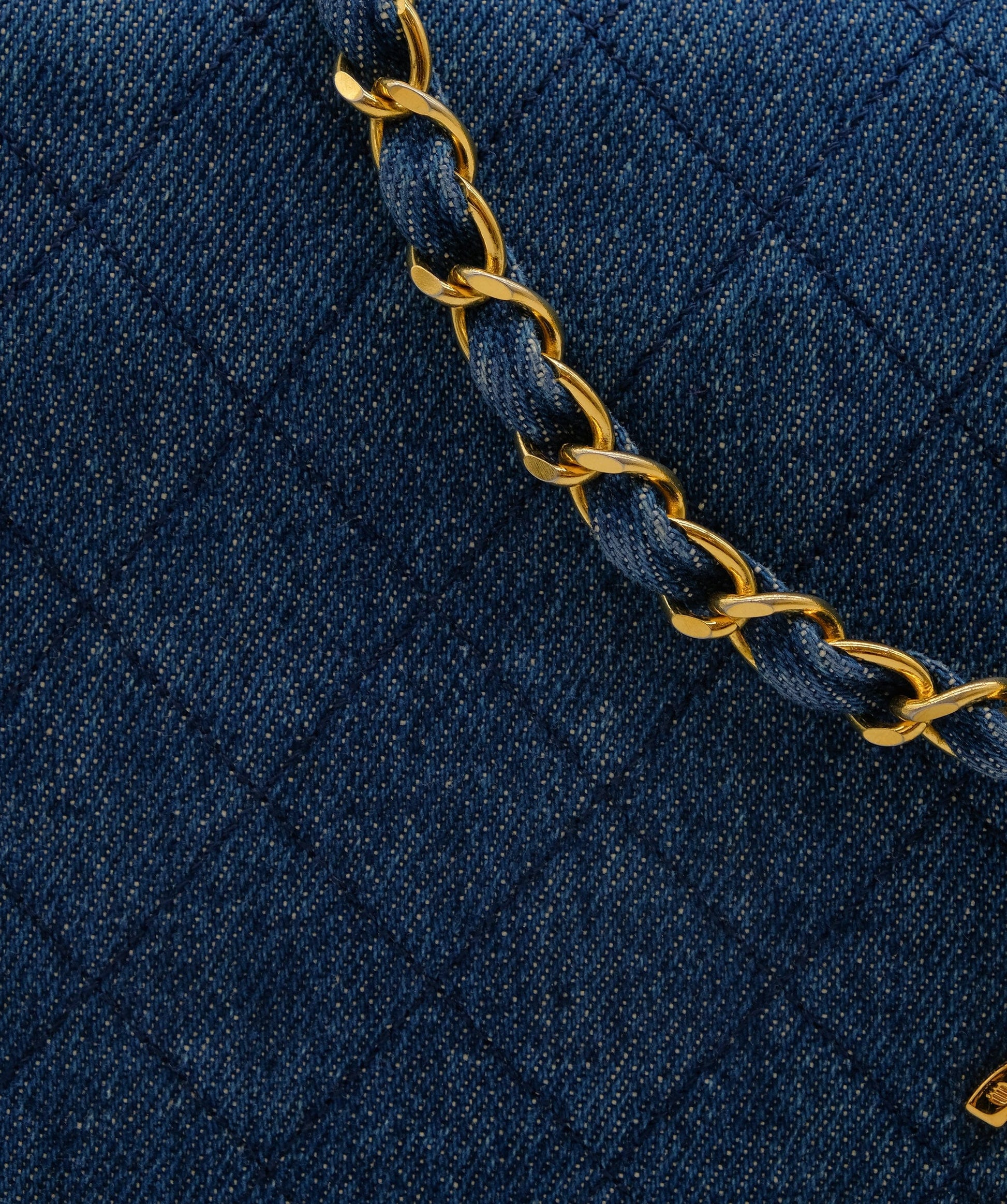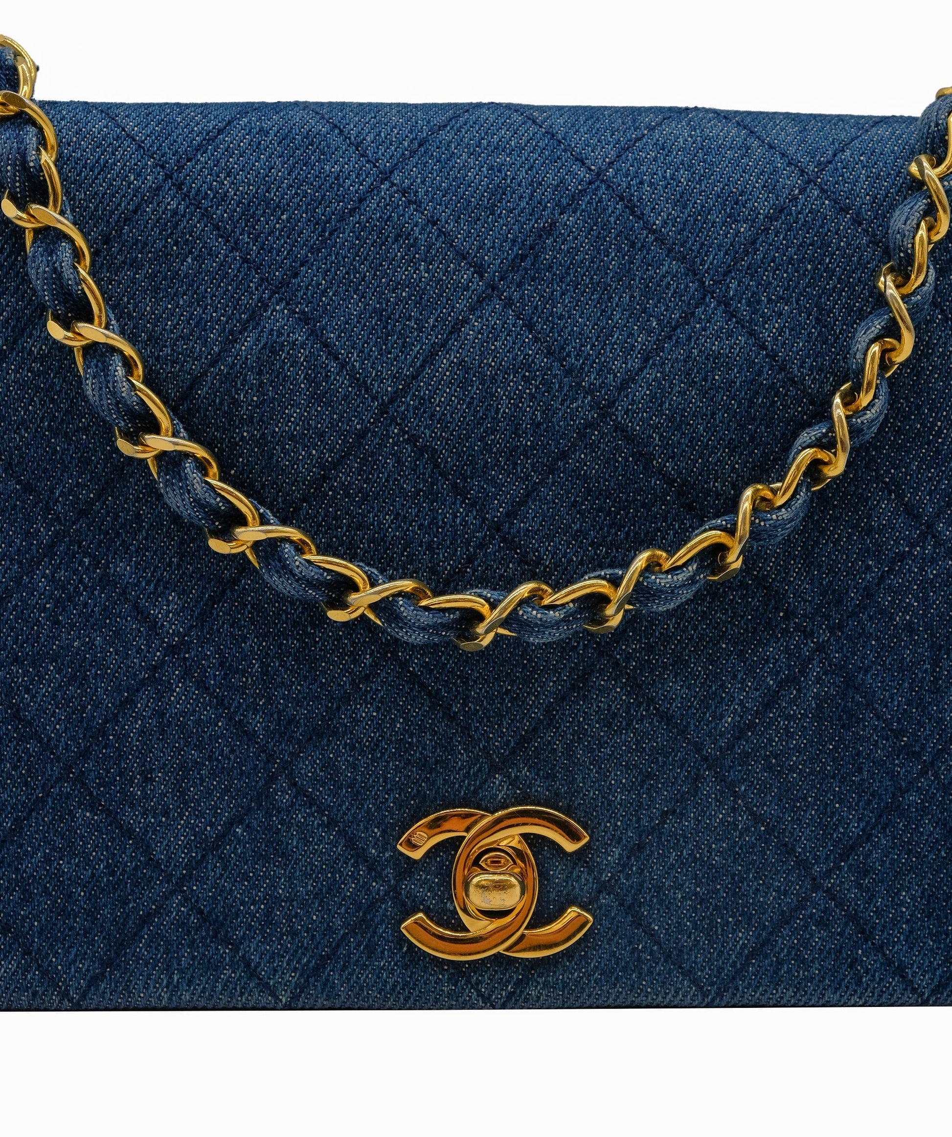 Shop this super rare Chanel Vintage Blue Denim Full Flap at Luxury Promise today. Crafted from blue denim canvas featuring the 24K gold gilded hardware. Overall in New condition with minimal signs of wear.