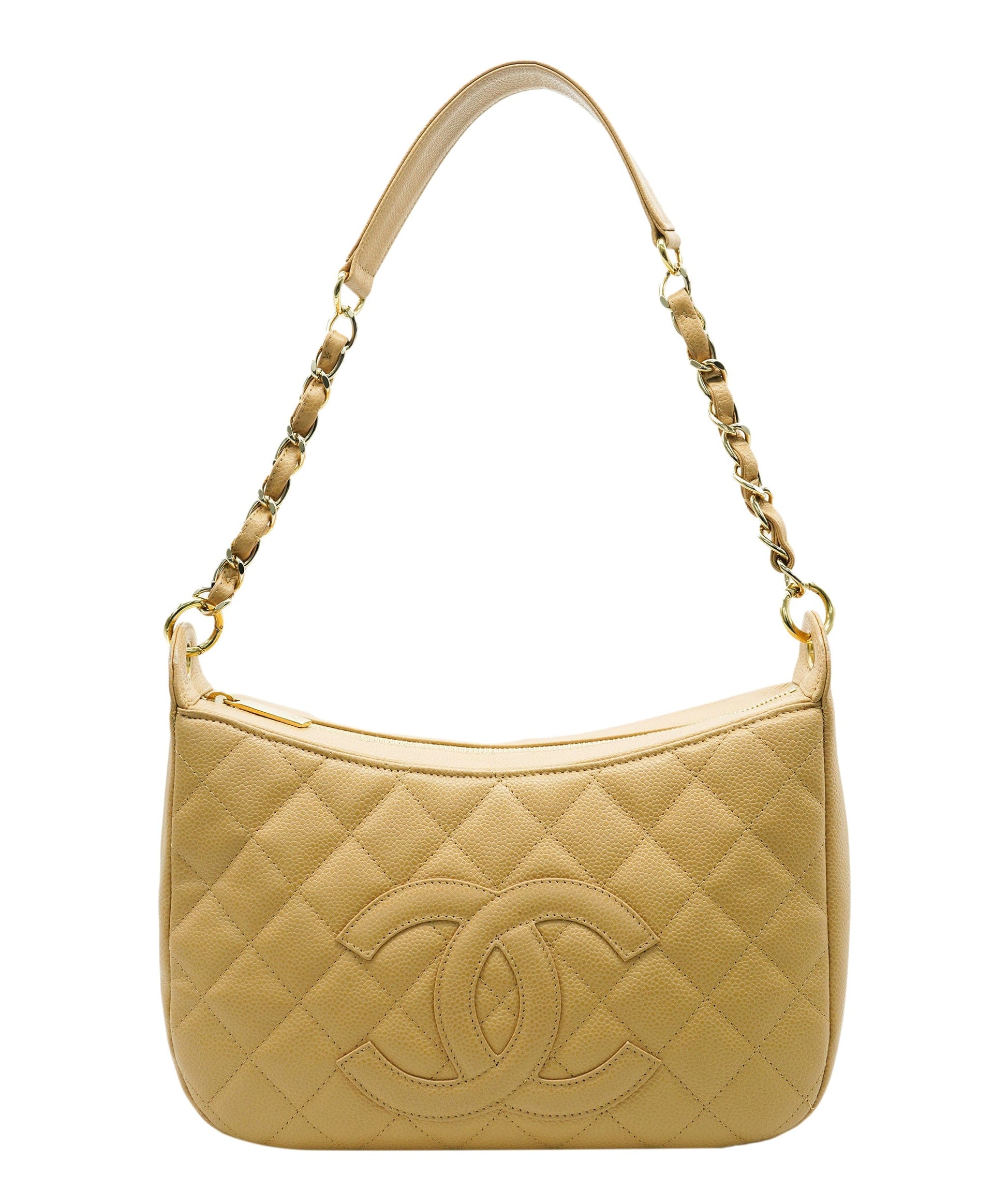Chanel Vintage Beige Caviar CC Half Moon Shoulder Bag