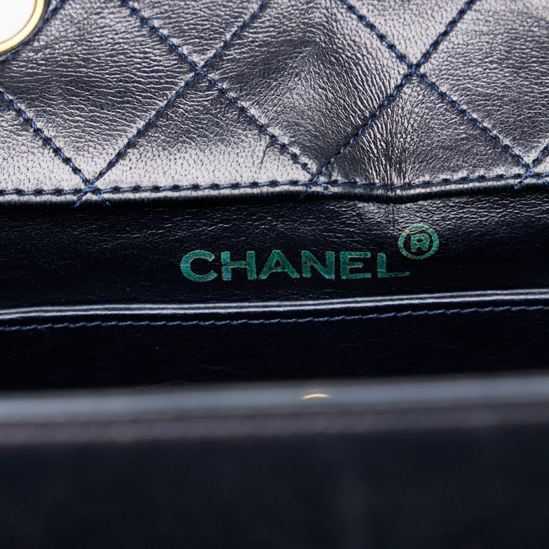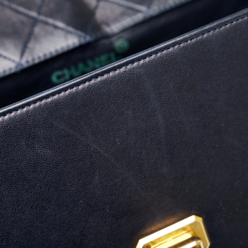 Chanel Vintage Mattress Wicker Gold Chain houlder Bag Navi White Lady Chanel