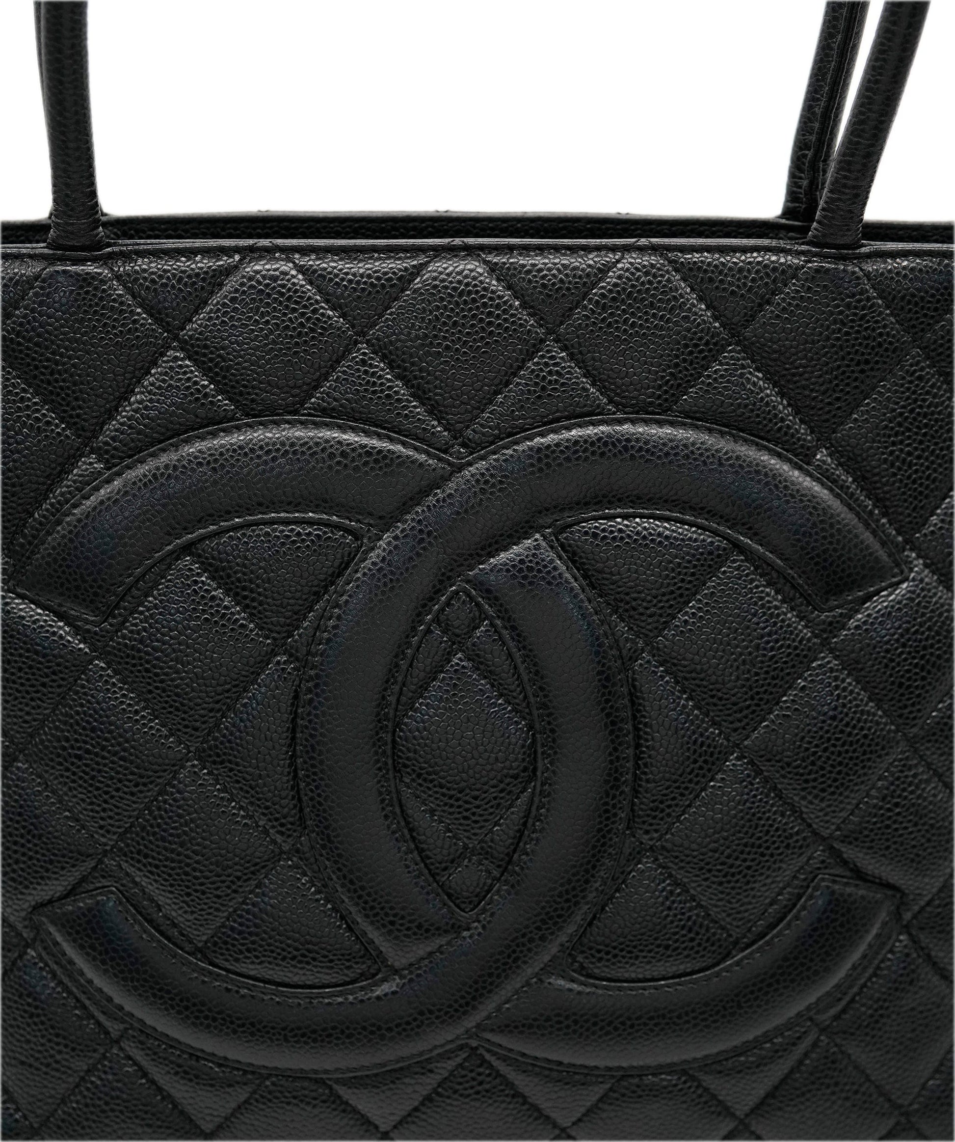 CHANEL VINTAGE MEDALLION TOTE BAG BLACK CAVIAR SKIN