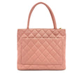 Shop this beautiful discontinued Chanel medallion tote crafted from pink caviar leather.