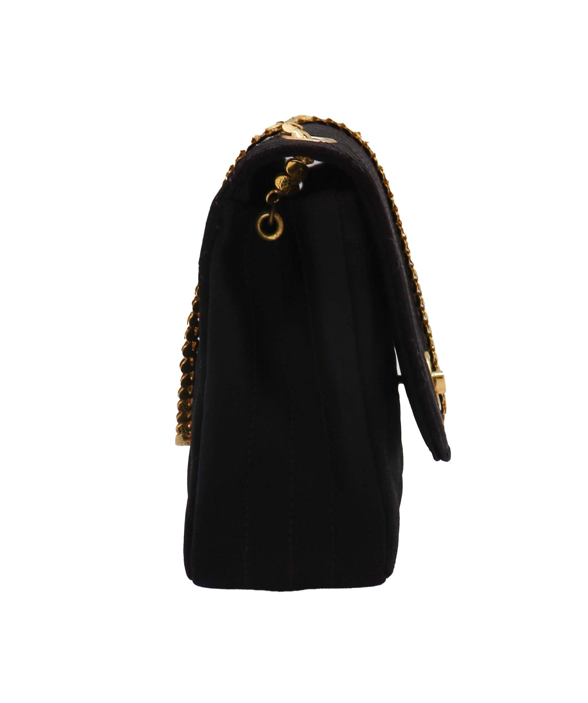 CHANEL VINTAGE METAL CHAIN SHOULDER BAG BLACK SATIN 90231954 90231954