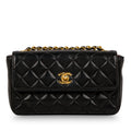 Ideal from day-to-night usage, the Chanel Vintage Mini Flap Bag is for perfect accessory to hold all your small essentials. An easy, efficient bag you don't have to think about, this vintage treasure is the perfect compliment to absolutely anything in your wardrobe. Crafted from smooth, black lambskin leather, this little vintage baby is a prime example of how Chanel never ceases to lose its value. A classic piece that will never go out of style, it's no wonder why Chanel will always remain at the top of the luxury food chain. A true must-have for any woman with a love for luxury and a soft spot for vintage pieces, this stunning little gem is a well-worthy addition to any handbag collection.