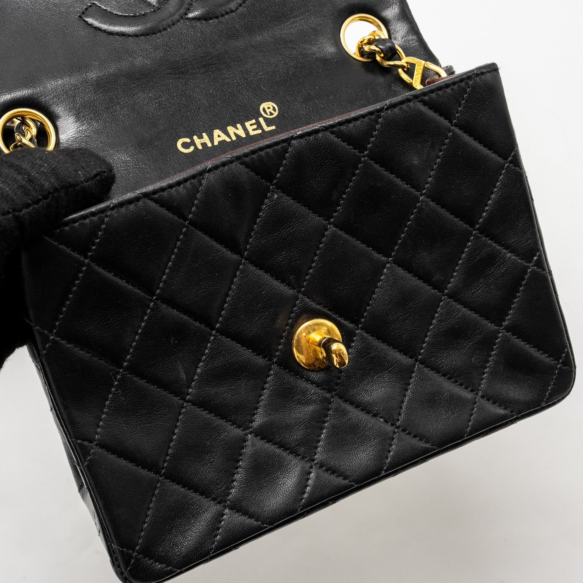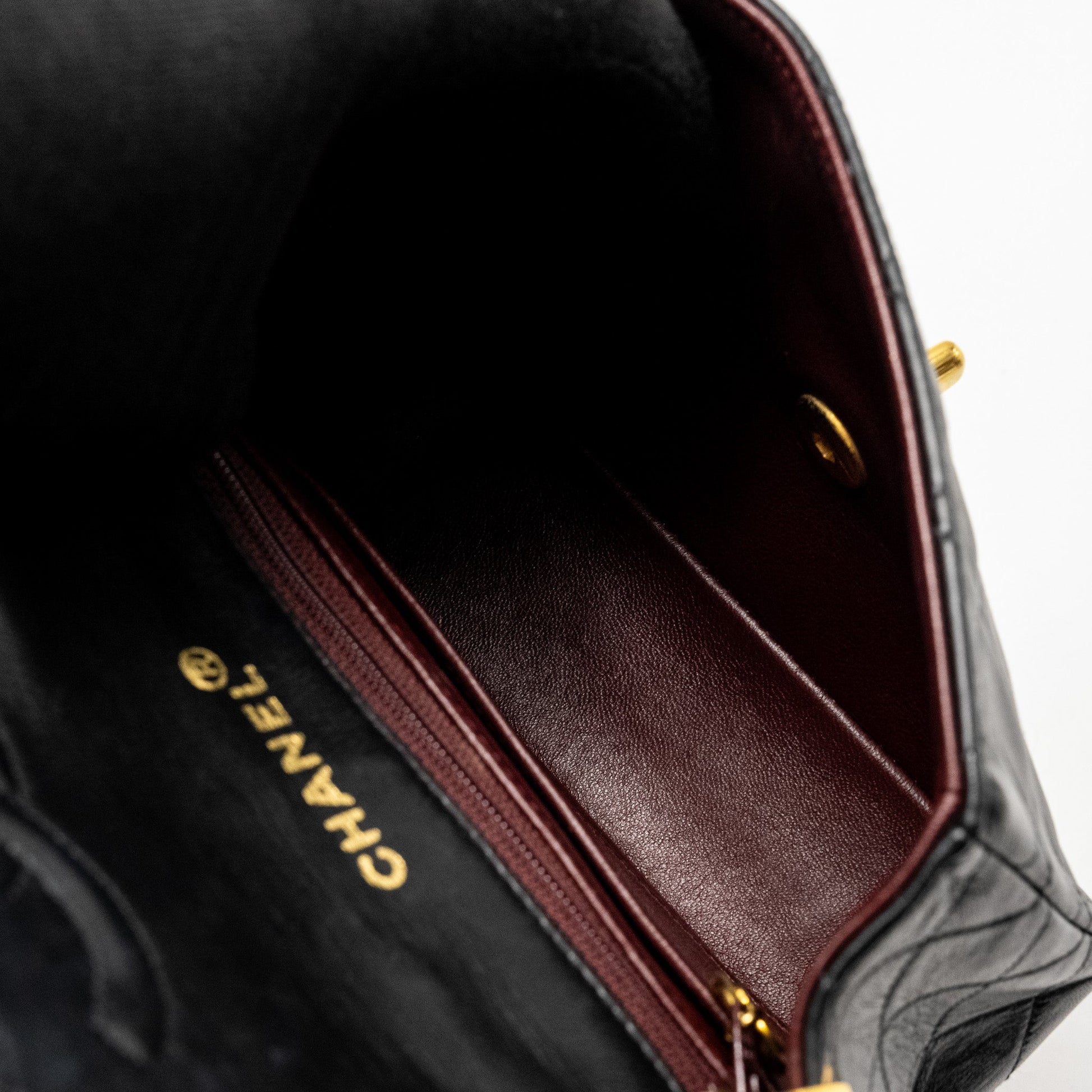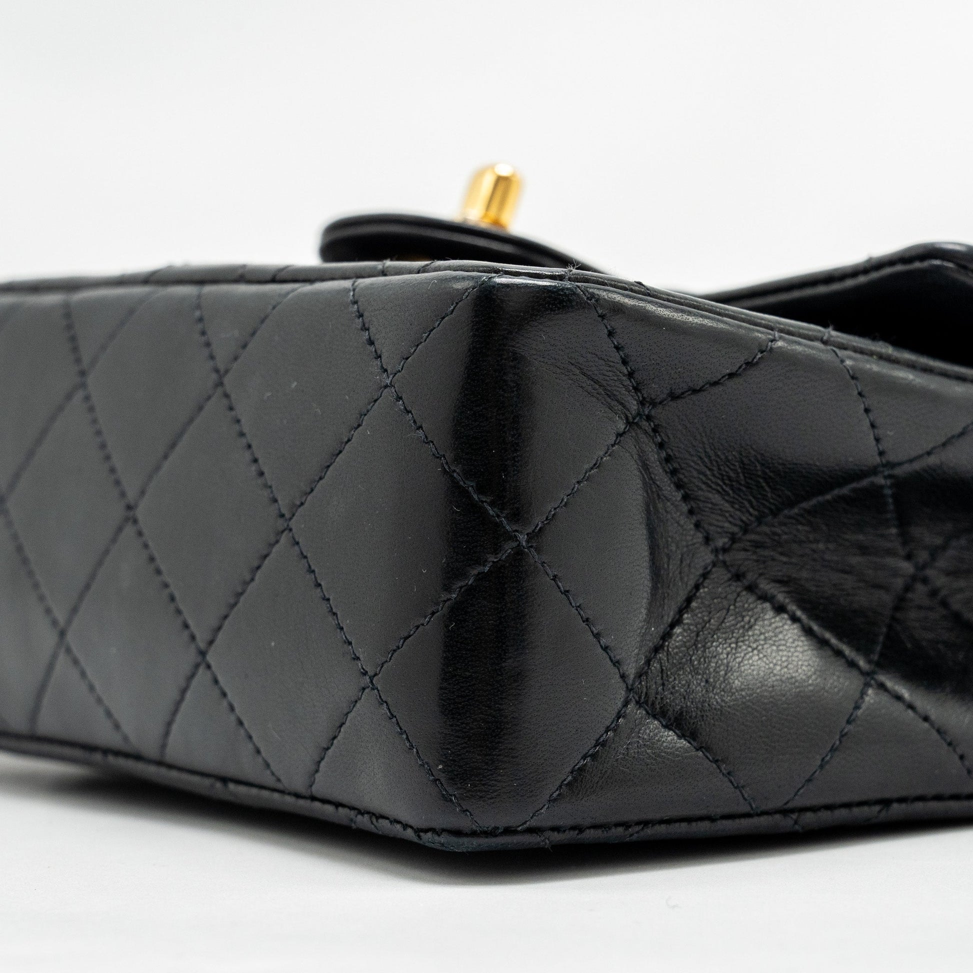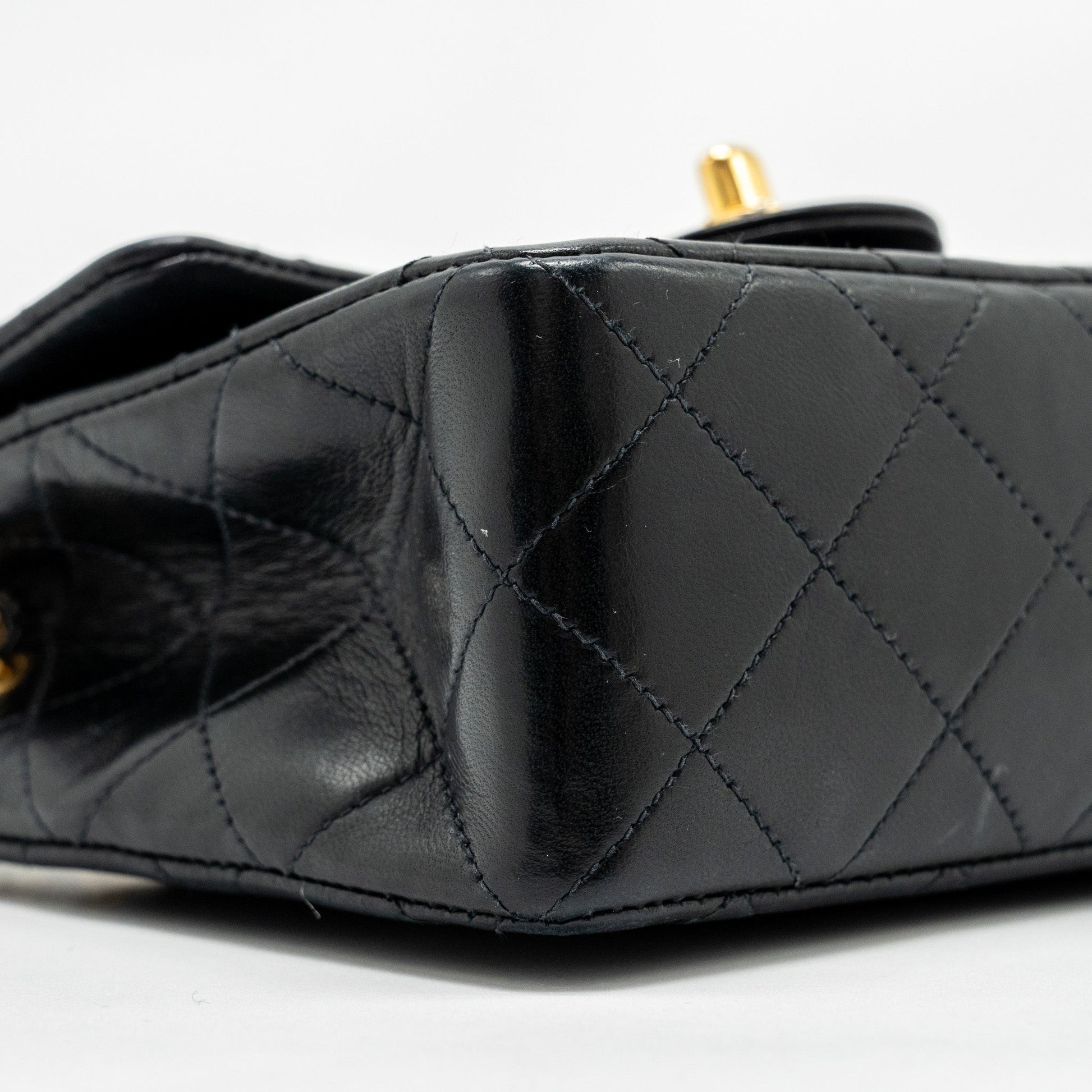 Chanel Vintage Mini Square Flap Bag Lambskin Black GHW