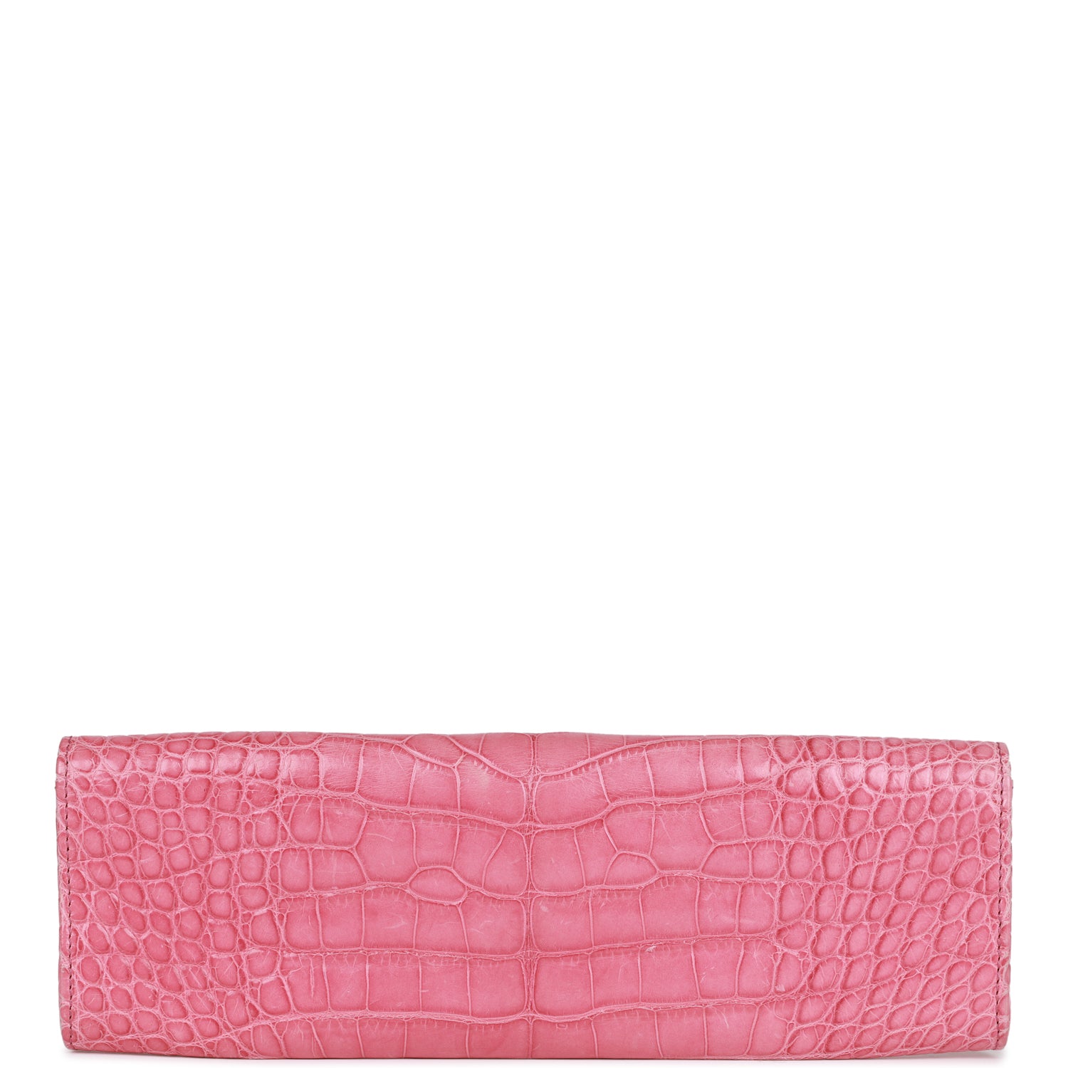 Vintage Chanel Chain Envelope Evening Clutch Bag Pink Crocodile Gold Hardware