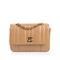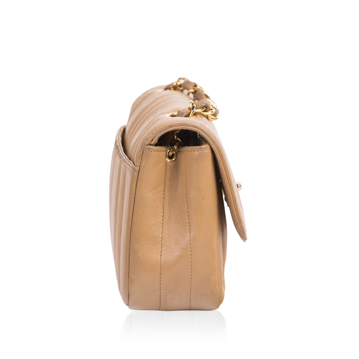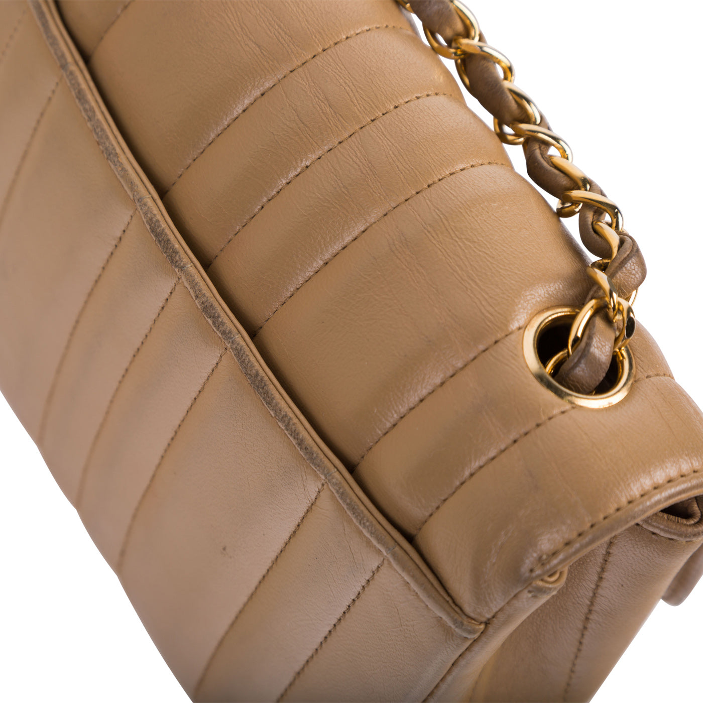 The perfect option for a woman with a love for luxury and an appreciation for rare, vintage pieces. The Chanel Vintage Classic bag is a mini gem, crafted in tan leather and gold-tone hardware, that carries your small necessities in style. With unique, vertical stitching, this bag remains timeless but original, allowing you to stand out in whatever crowd you may enter. Wear this bag dressed up with a blouse and heels, or dressed down with jeans and a jumper, but regardless of what you wear with it, you'll be sure to carry a little bit of glamour and history with you.
