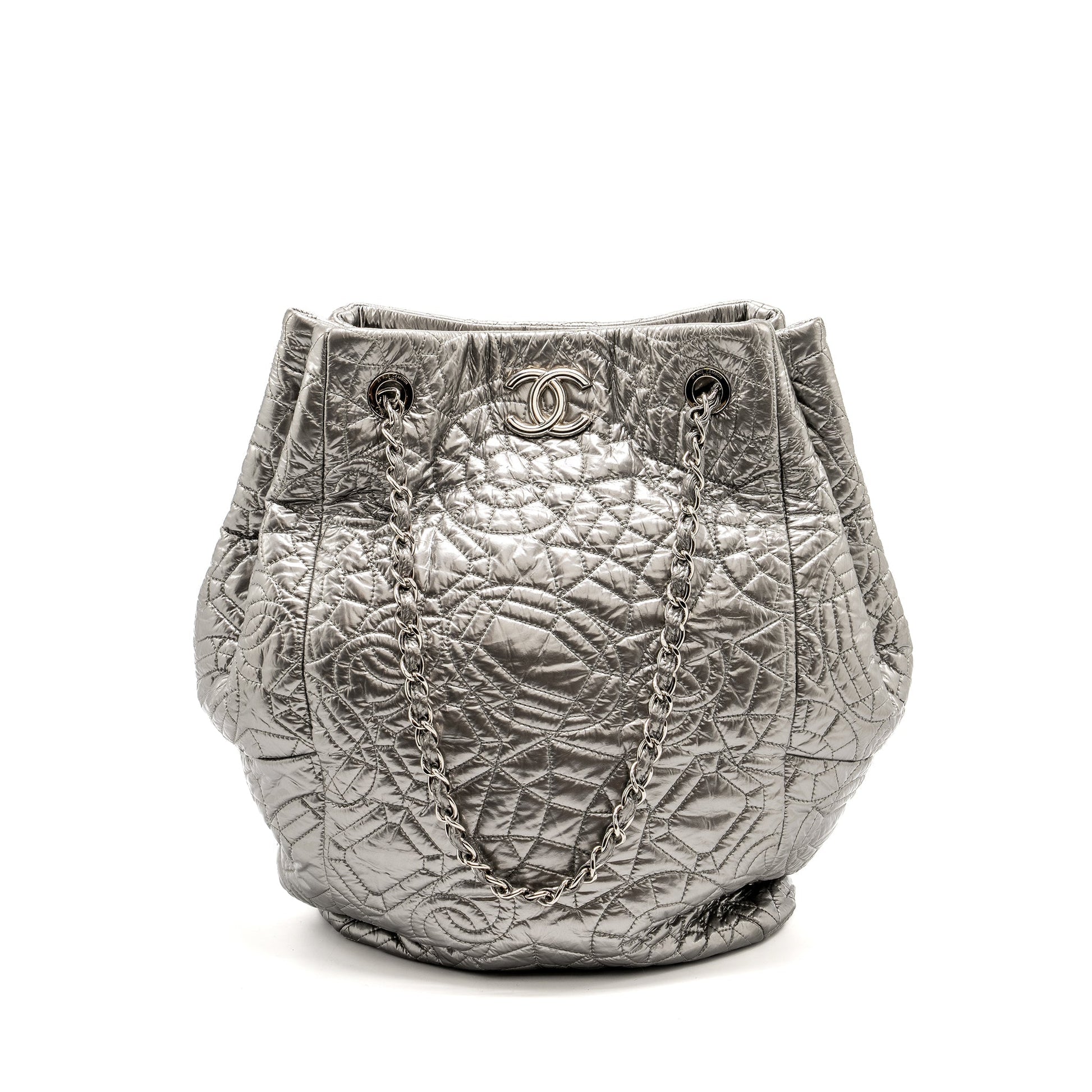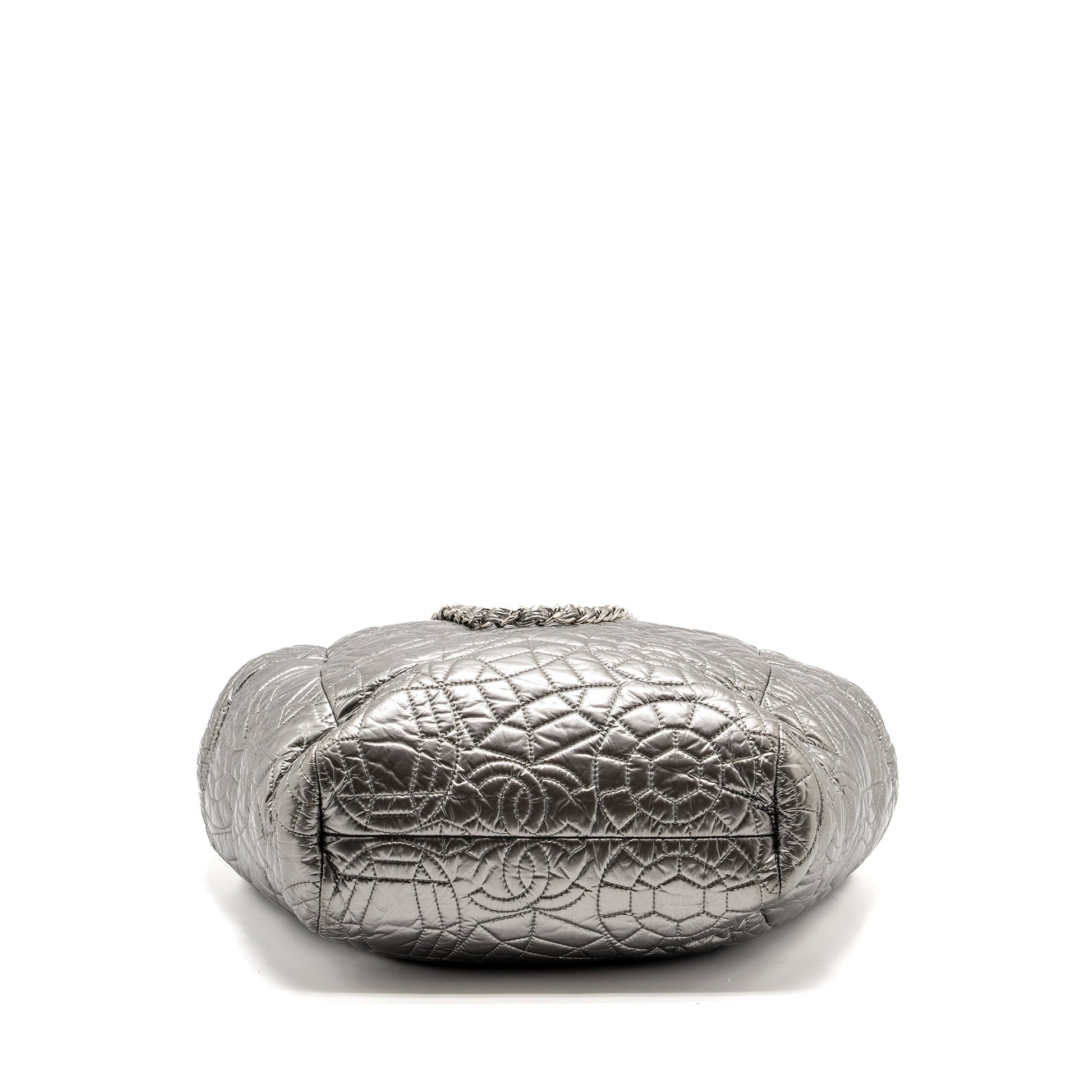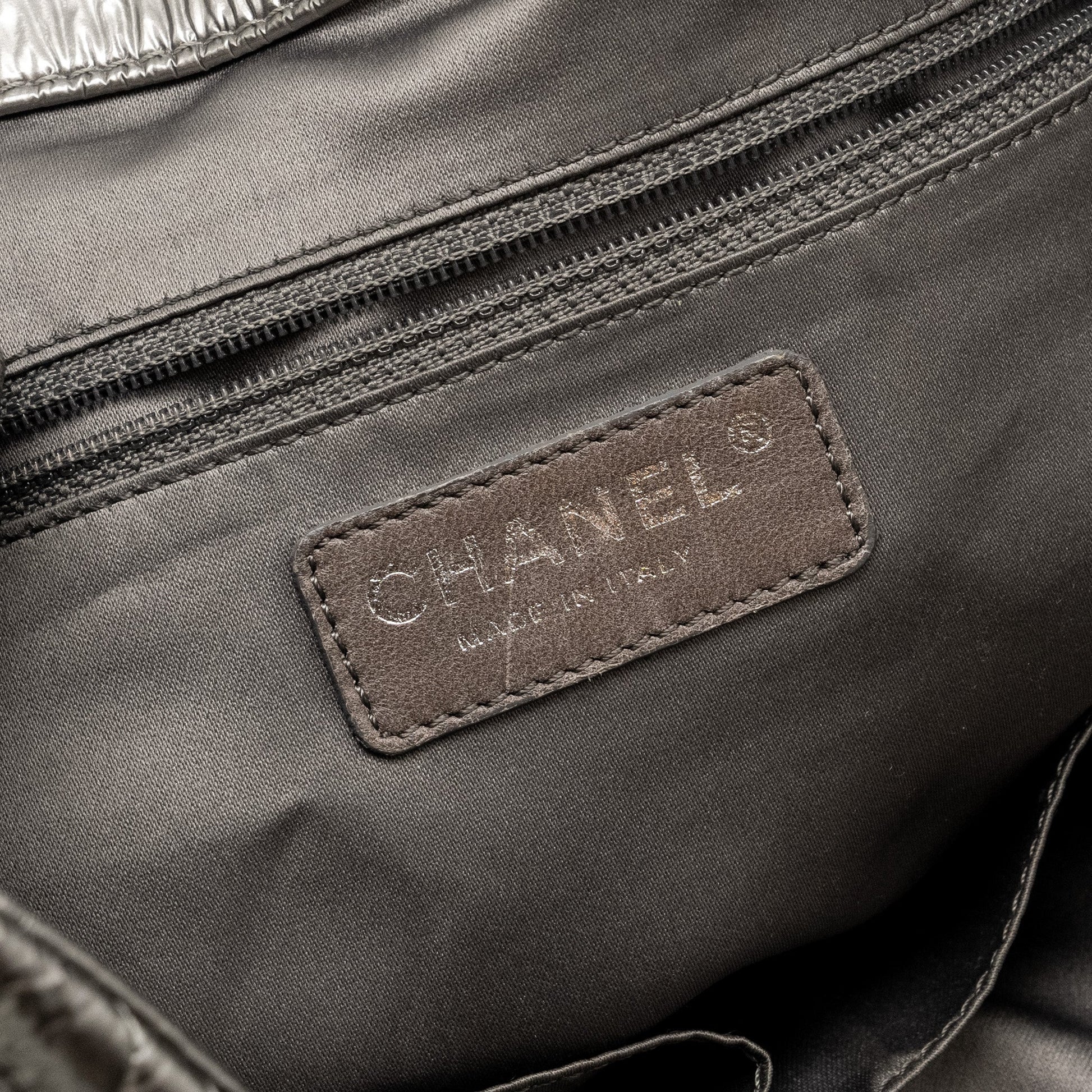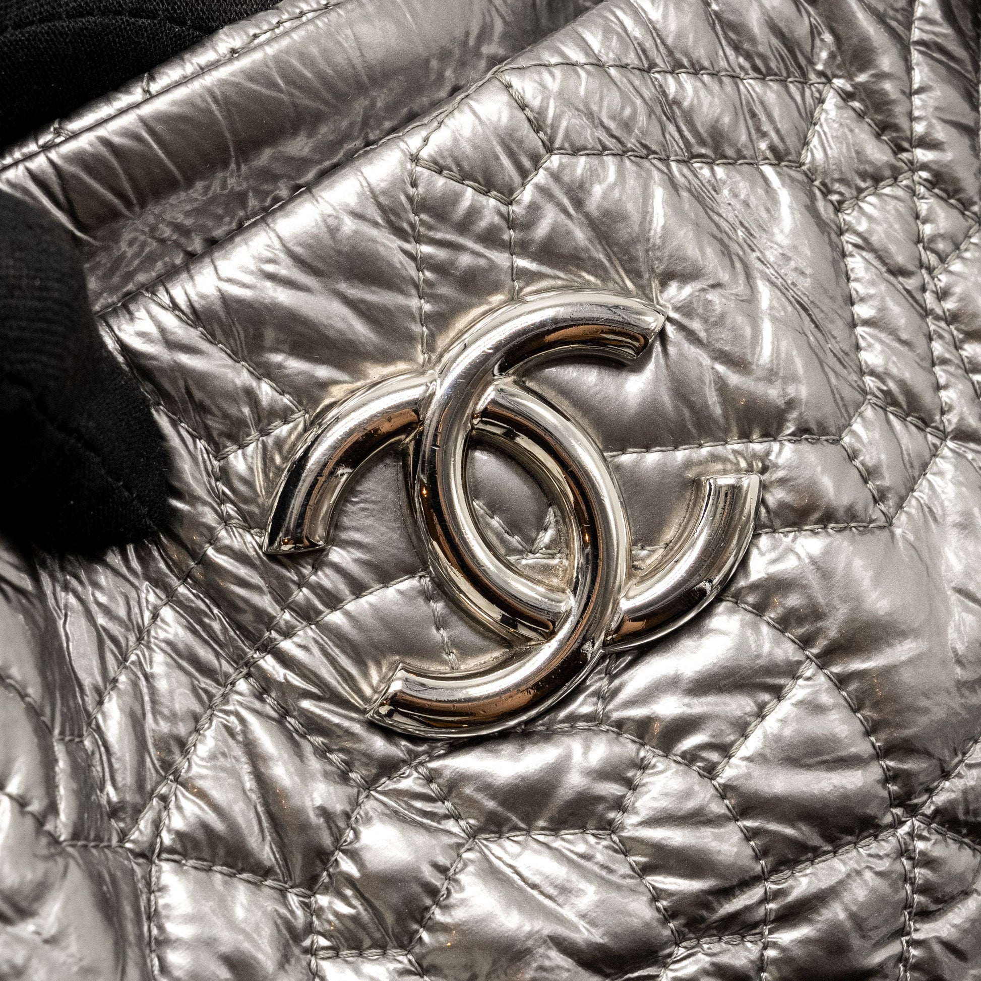 Chanel Vinyl Graphic Edge Tote Patent Silver SHW