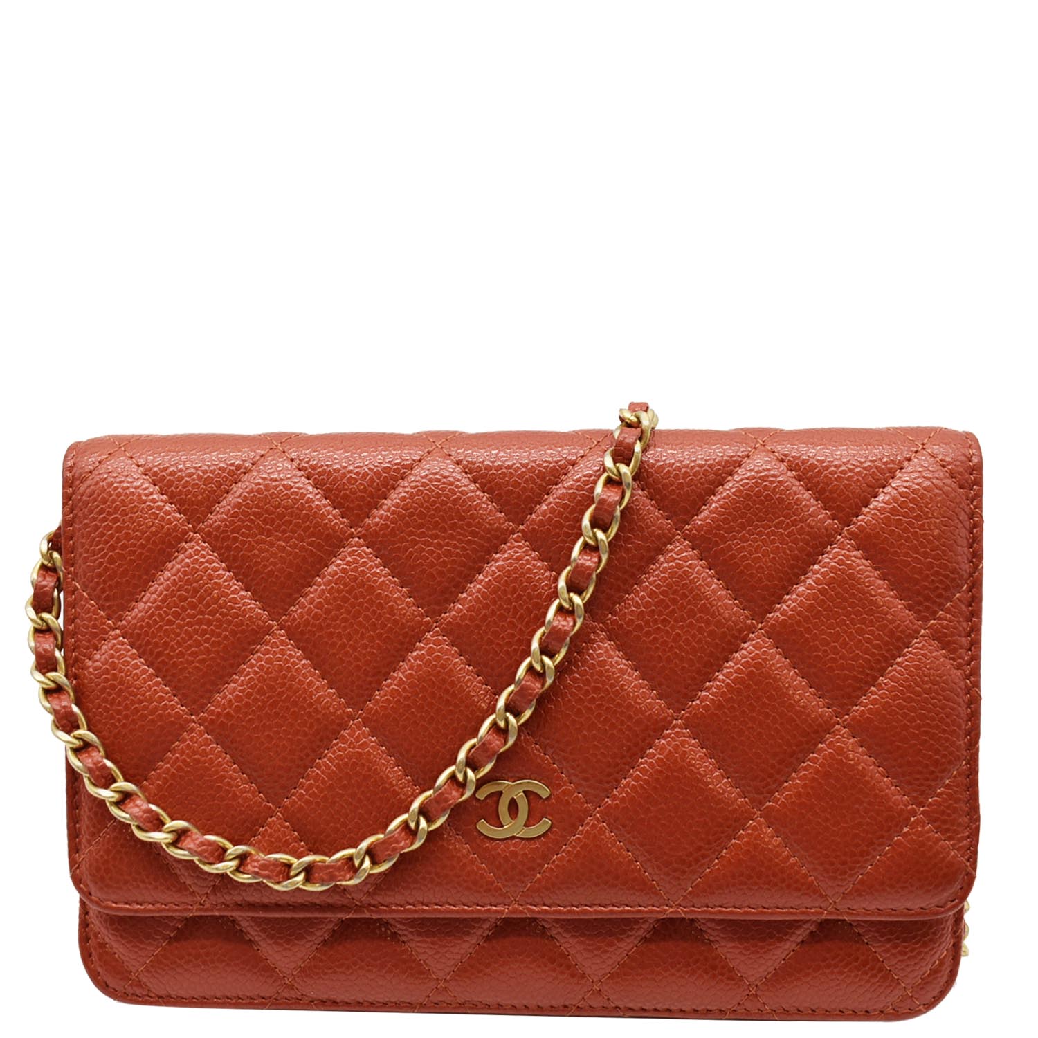CHANEL WOC Quilted Caviar Leather Crossbody Wallet Dark Orange