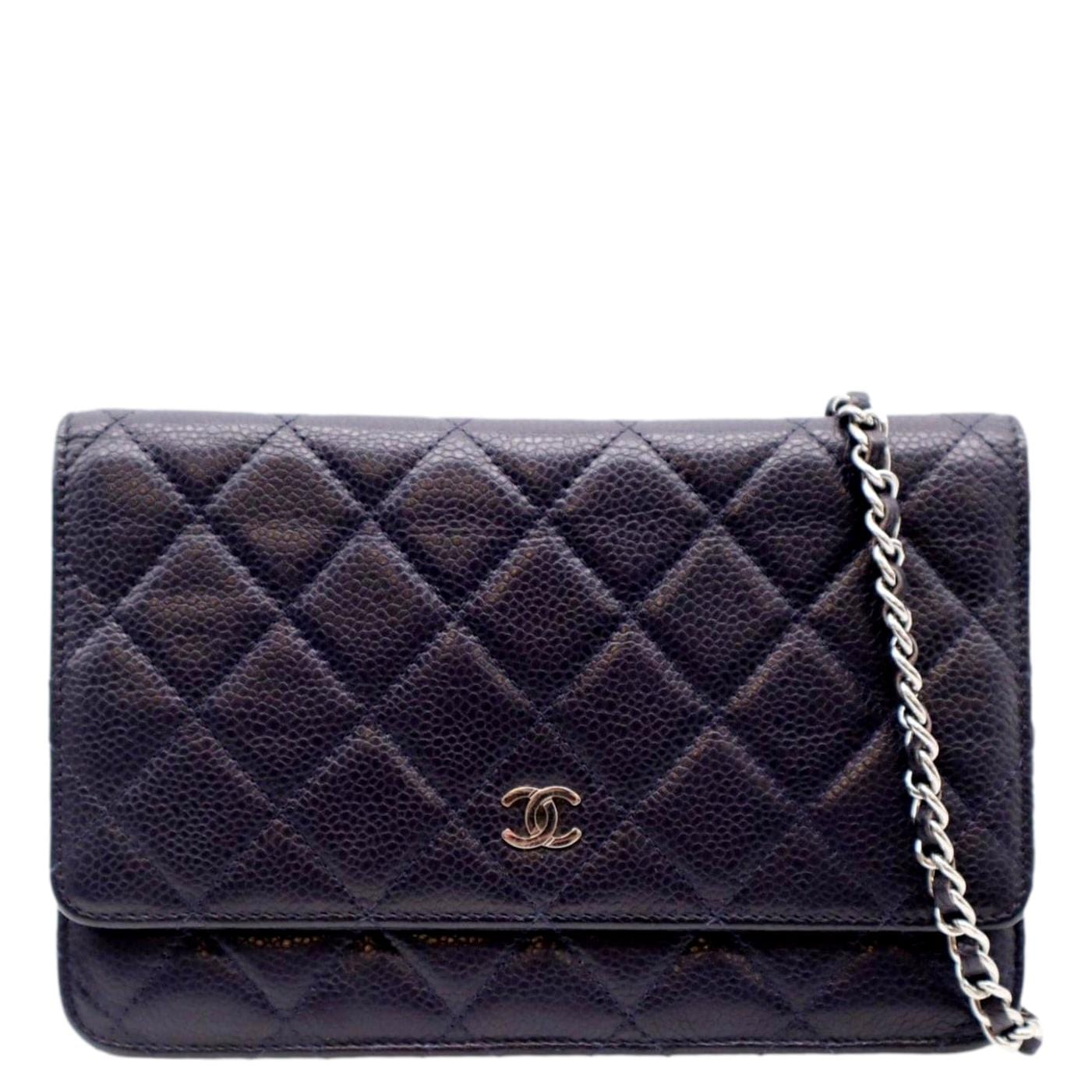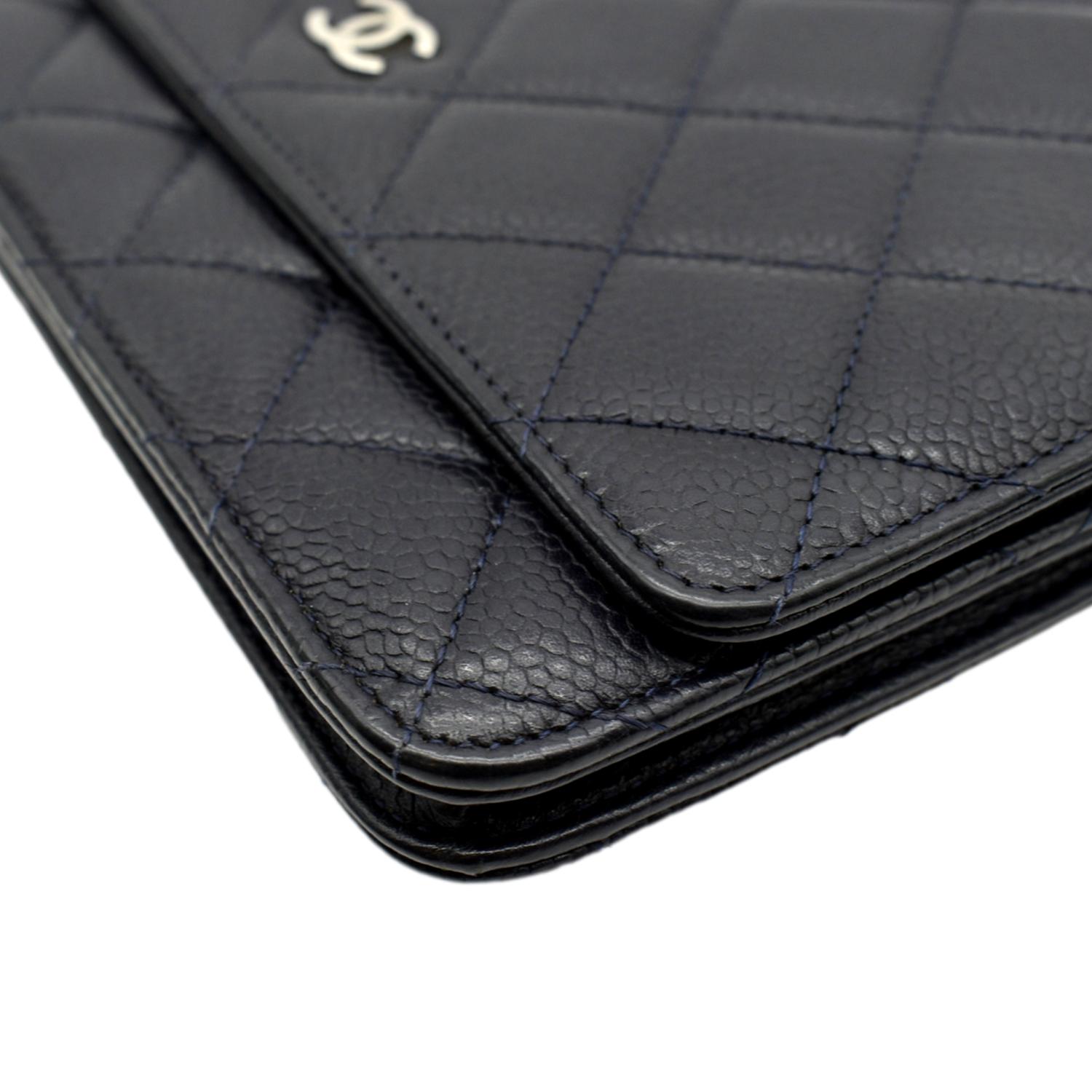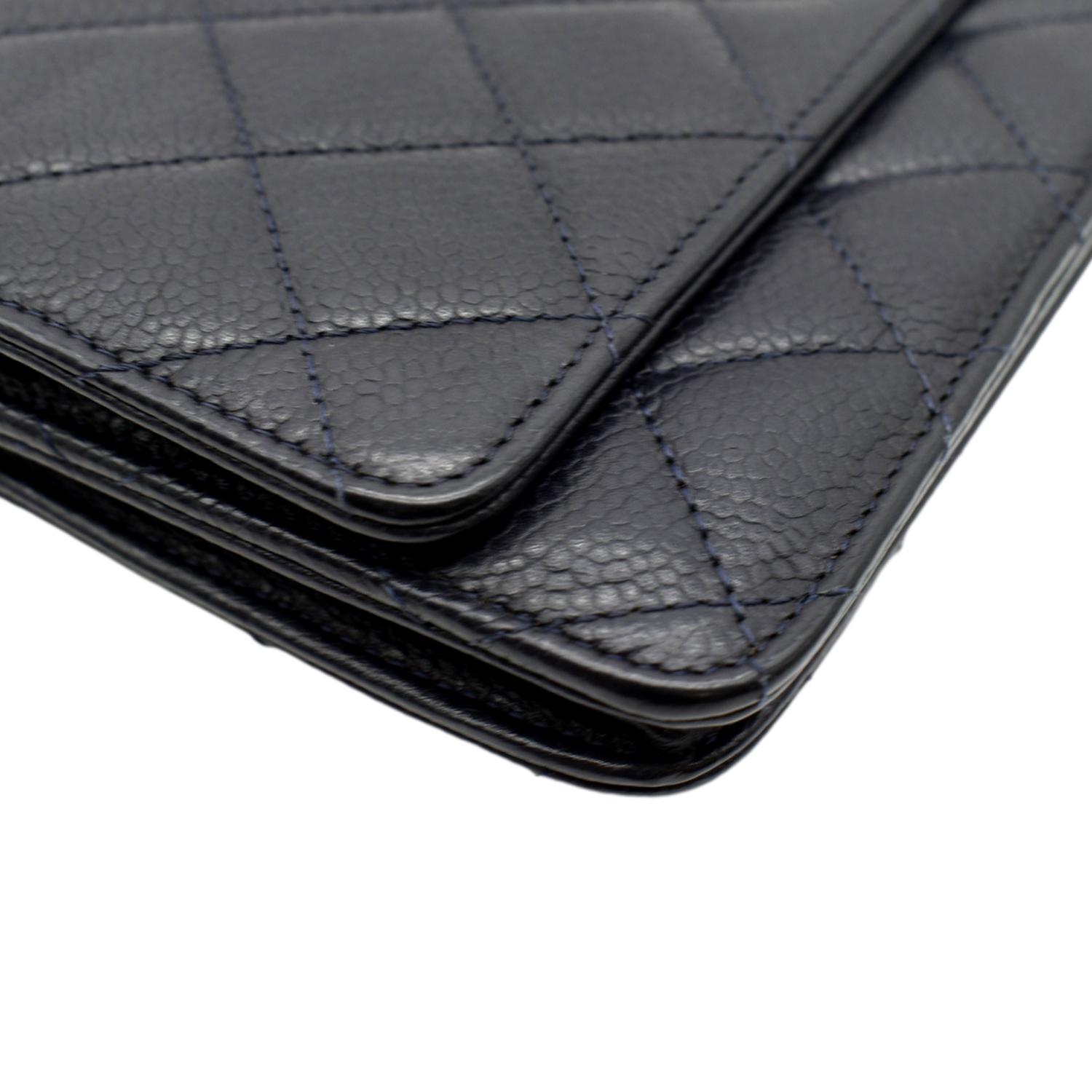 CHANEL WOC Quilted Caviar Leather Crossbody Wallet Navy Blue