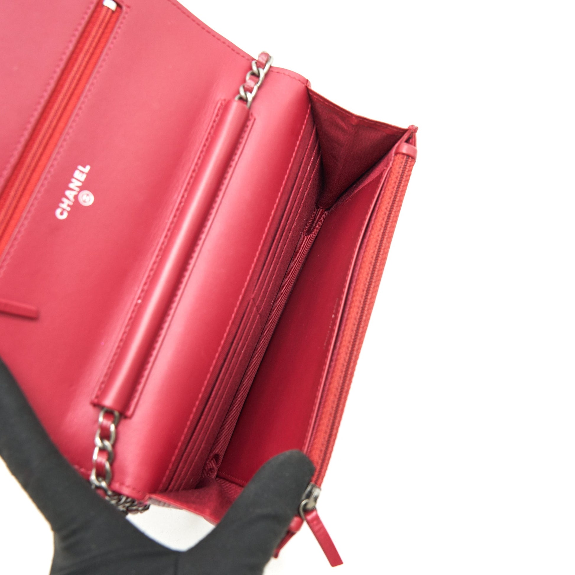 CHANEL WALLET ON CHAIN PATENT LEATHER RED SHW