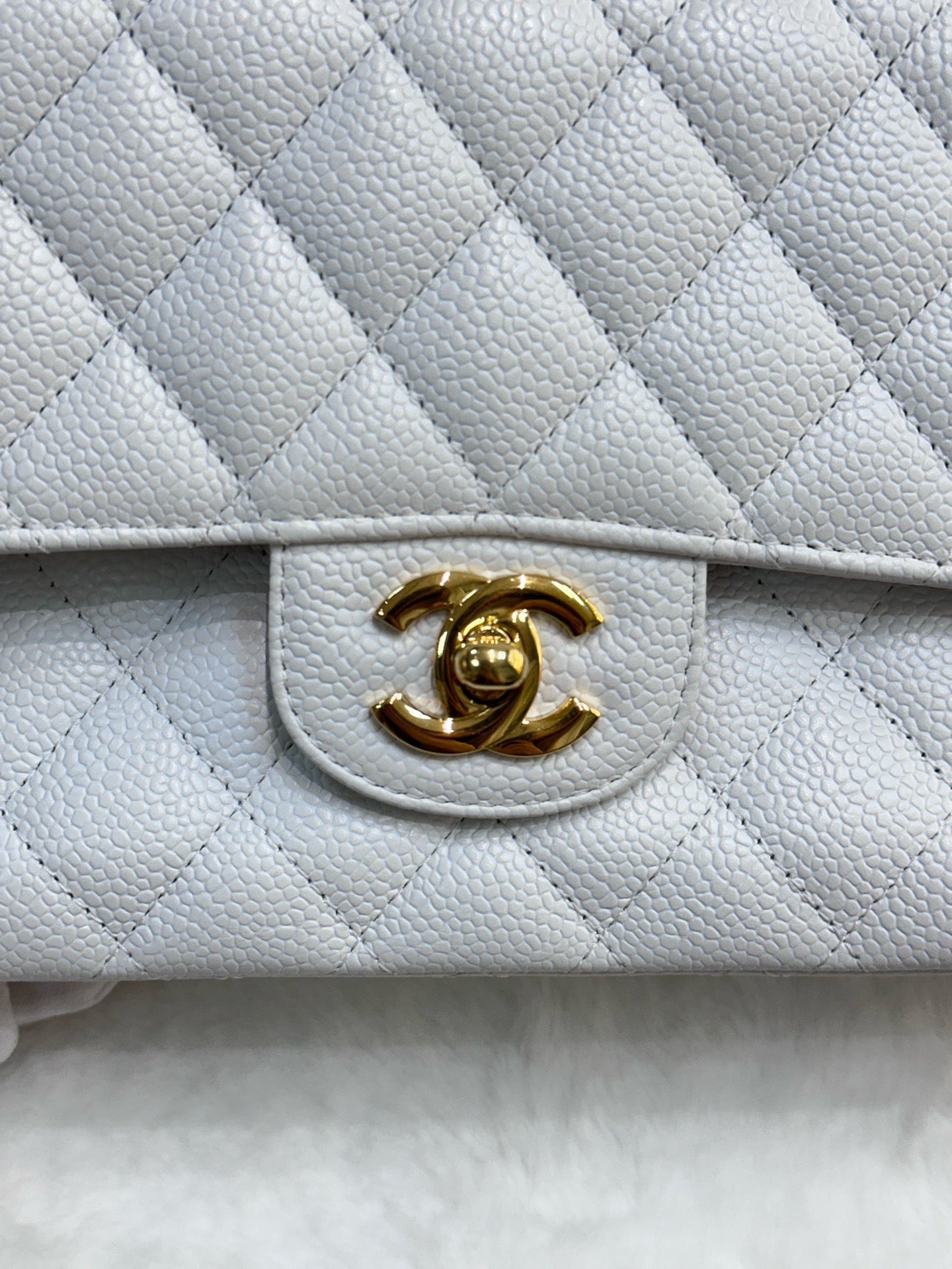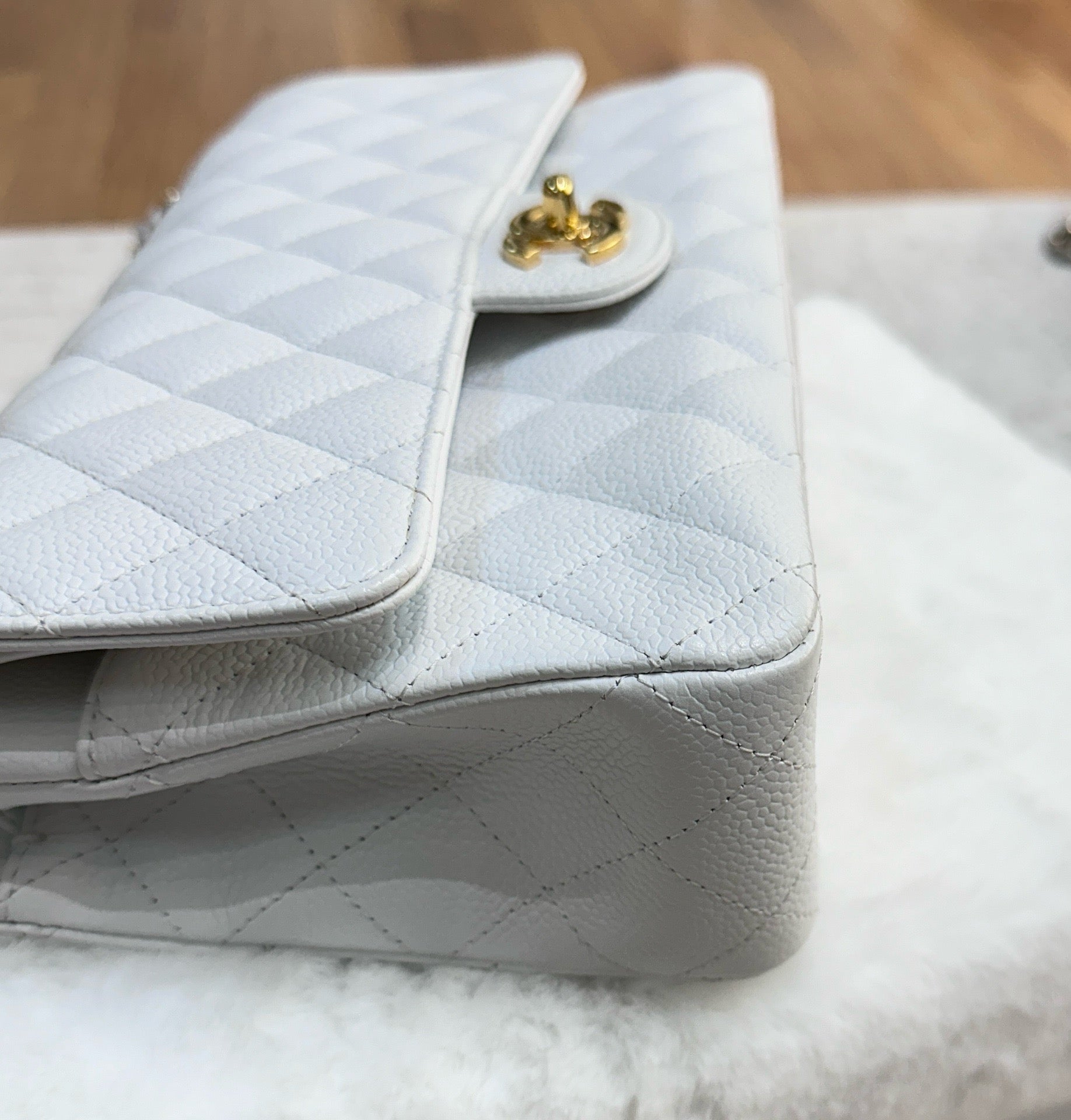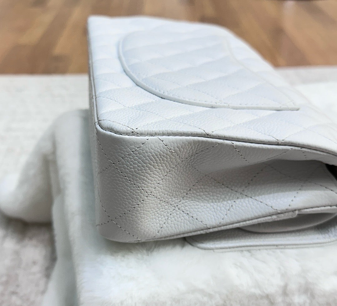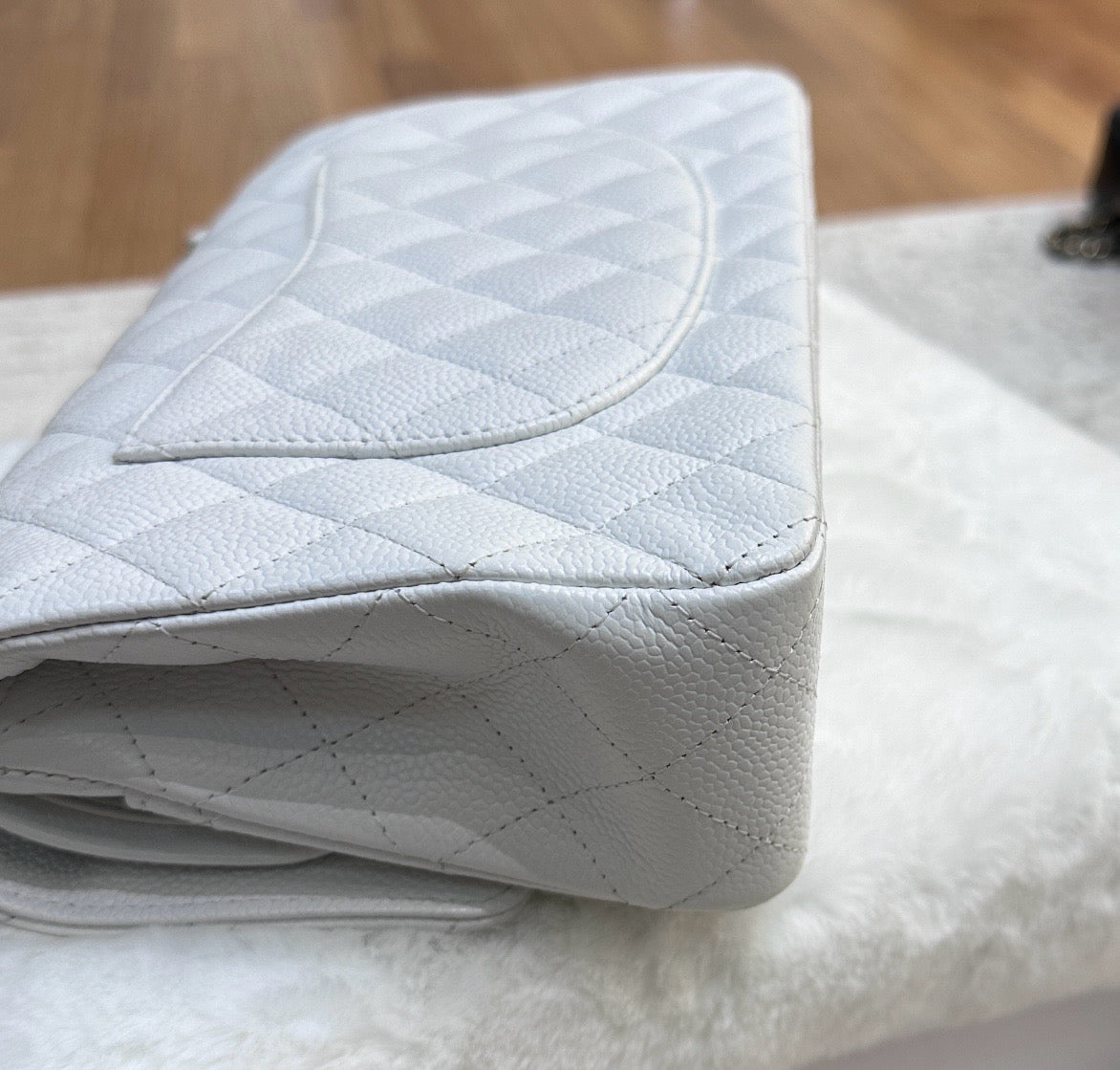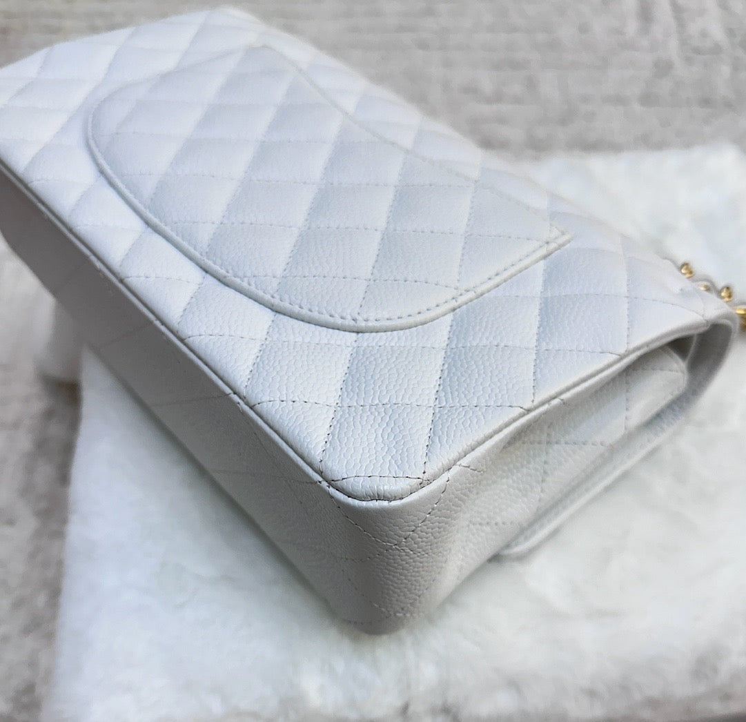 Chanel White Caviar Medium Classic 2.55 Double Flap Bag