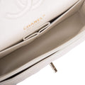 Chanel White Iridescent Quilted Lambskin Medium Classic Double Flap Bag Light Gold Hardware