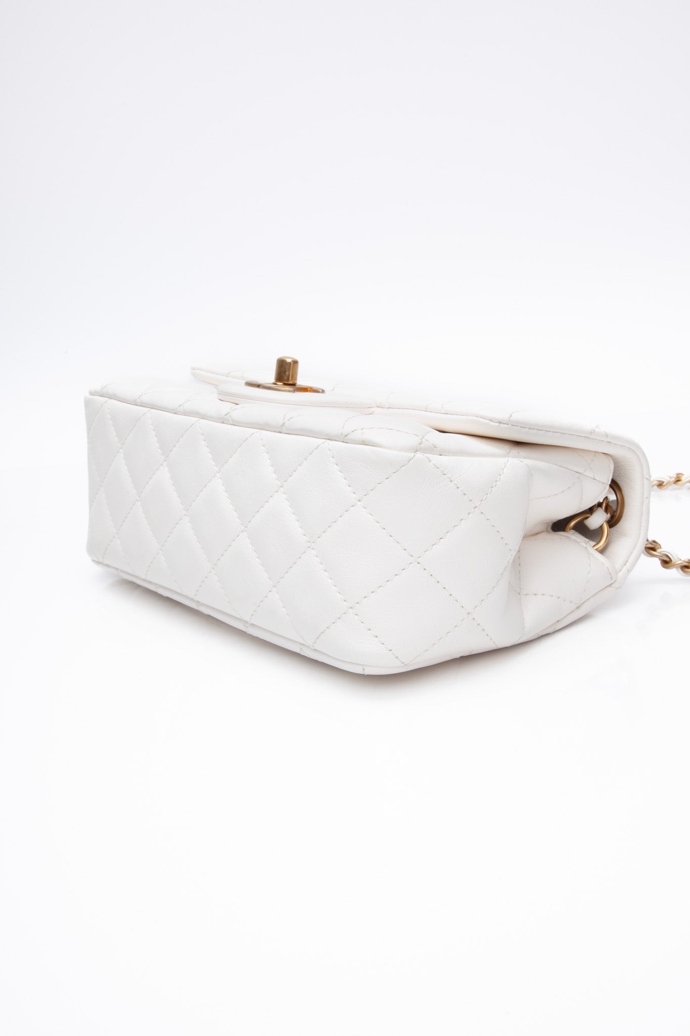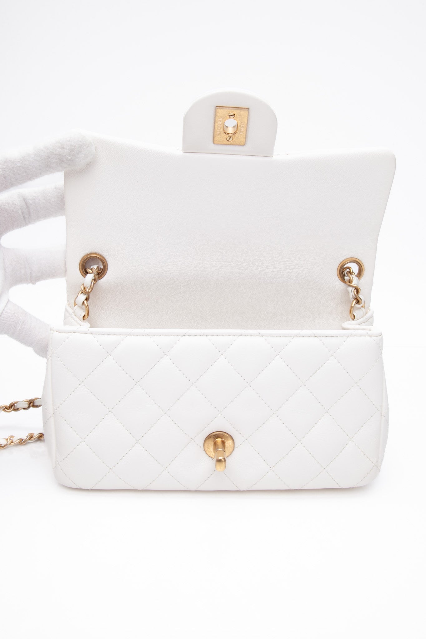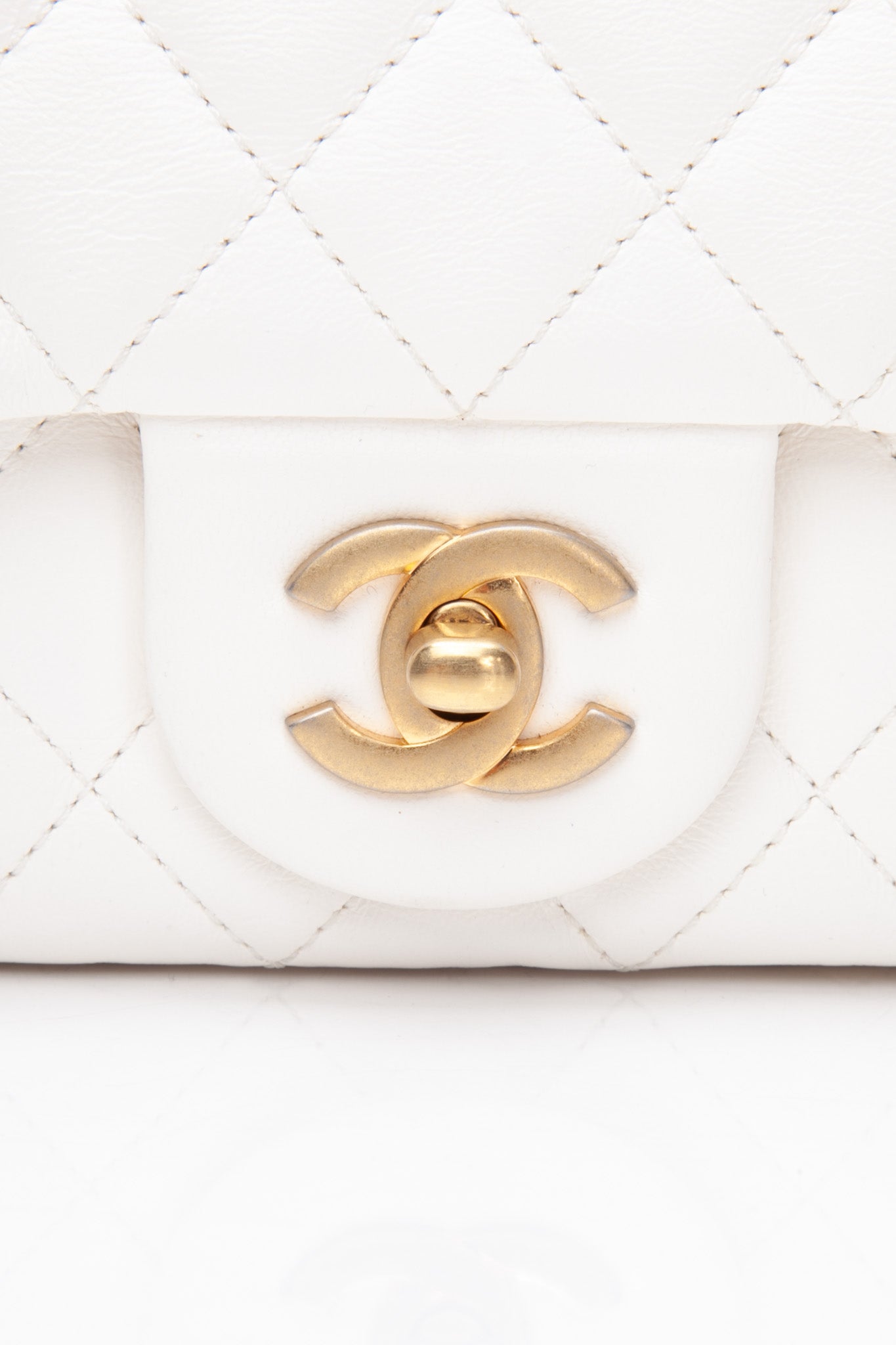 CHANEL Calfskin Quilted Mini Romance Rectangular Flap White