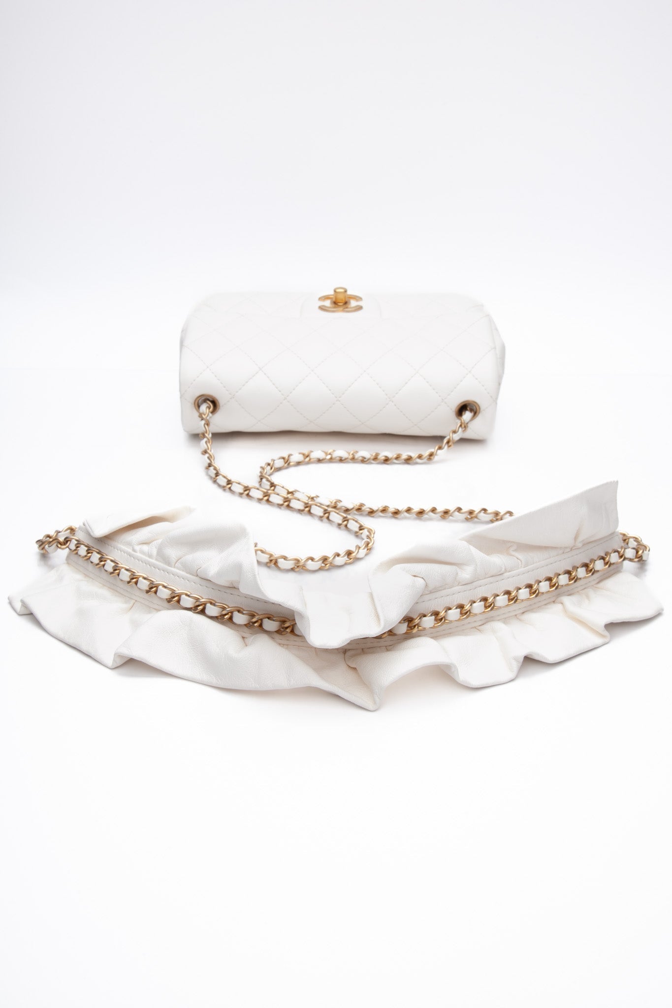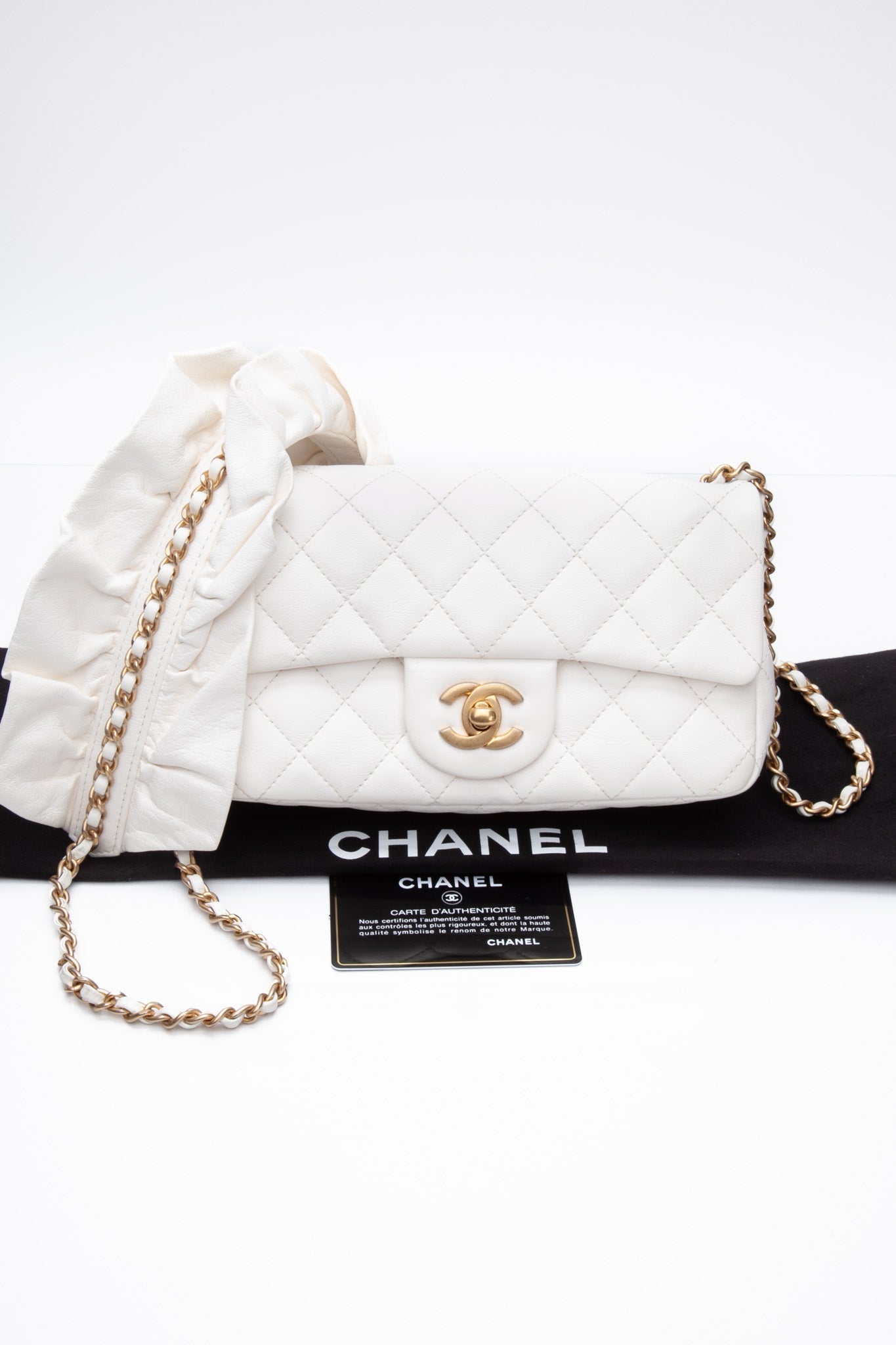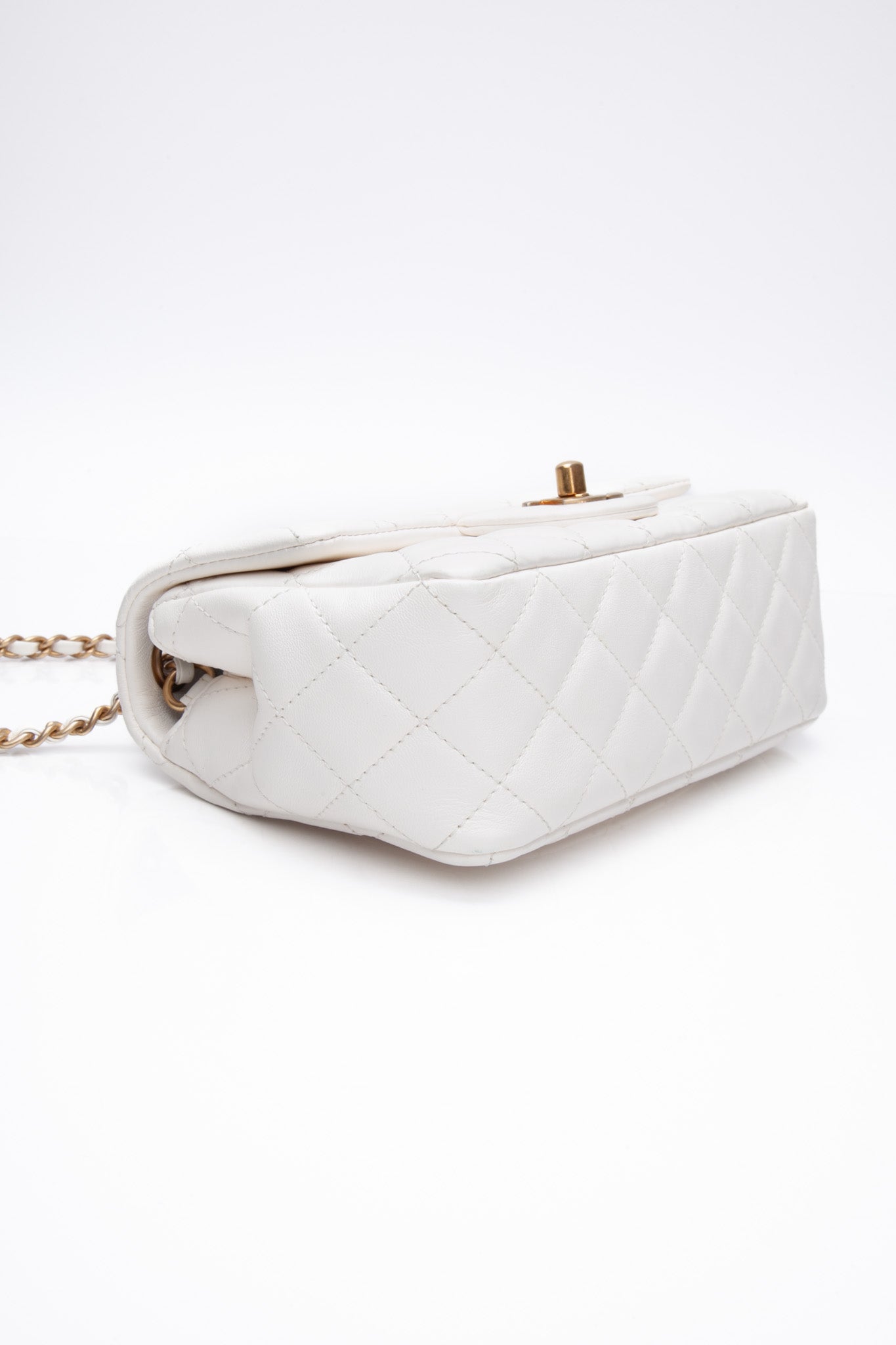 CHANEL Calfskin Quilted Mini Romance Rectangular Flap White