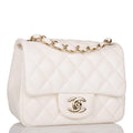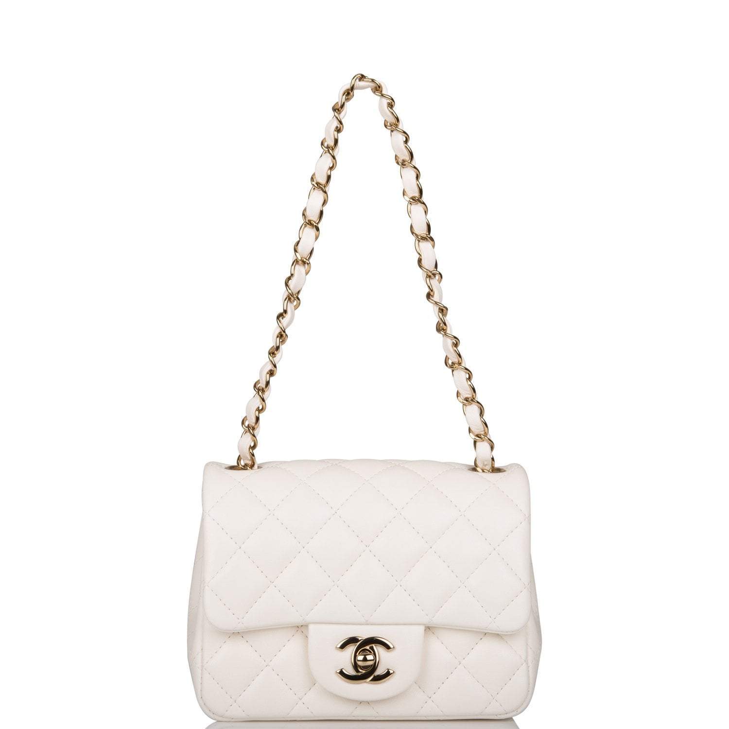 Chanel White Quilted Lambskin Square Mini Classic Flap Bag Light Gold Hardware