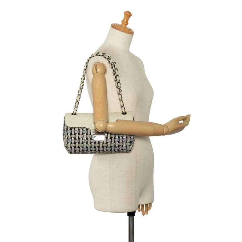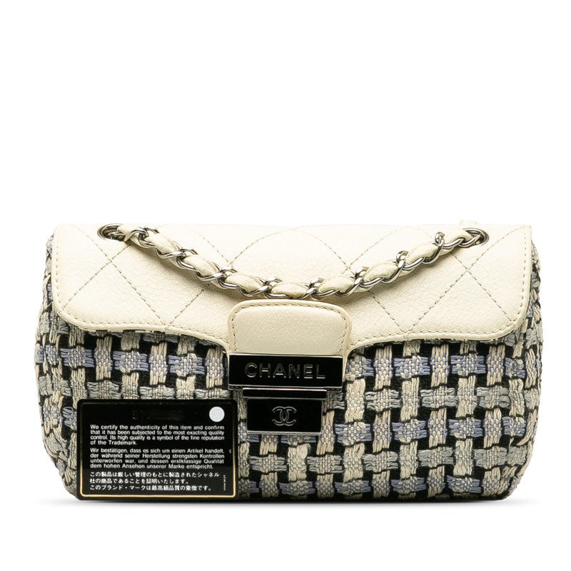 CHANEL Wild Stitch Flap Bag in Tweed Wool White Blue