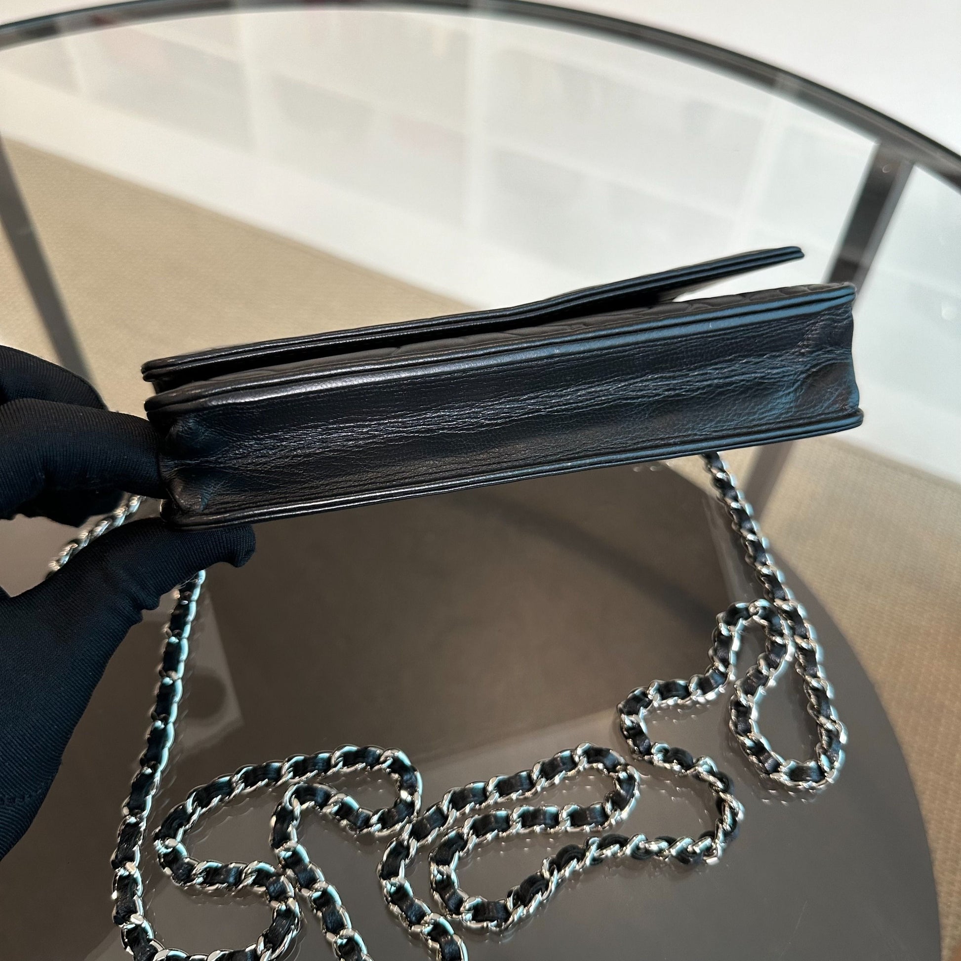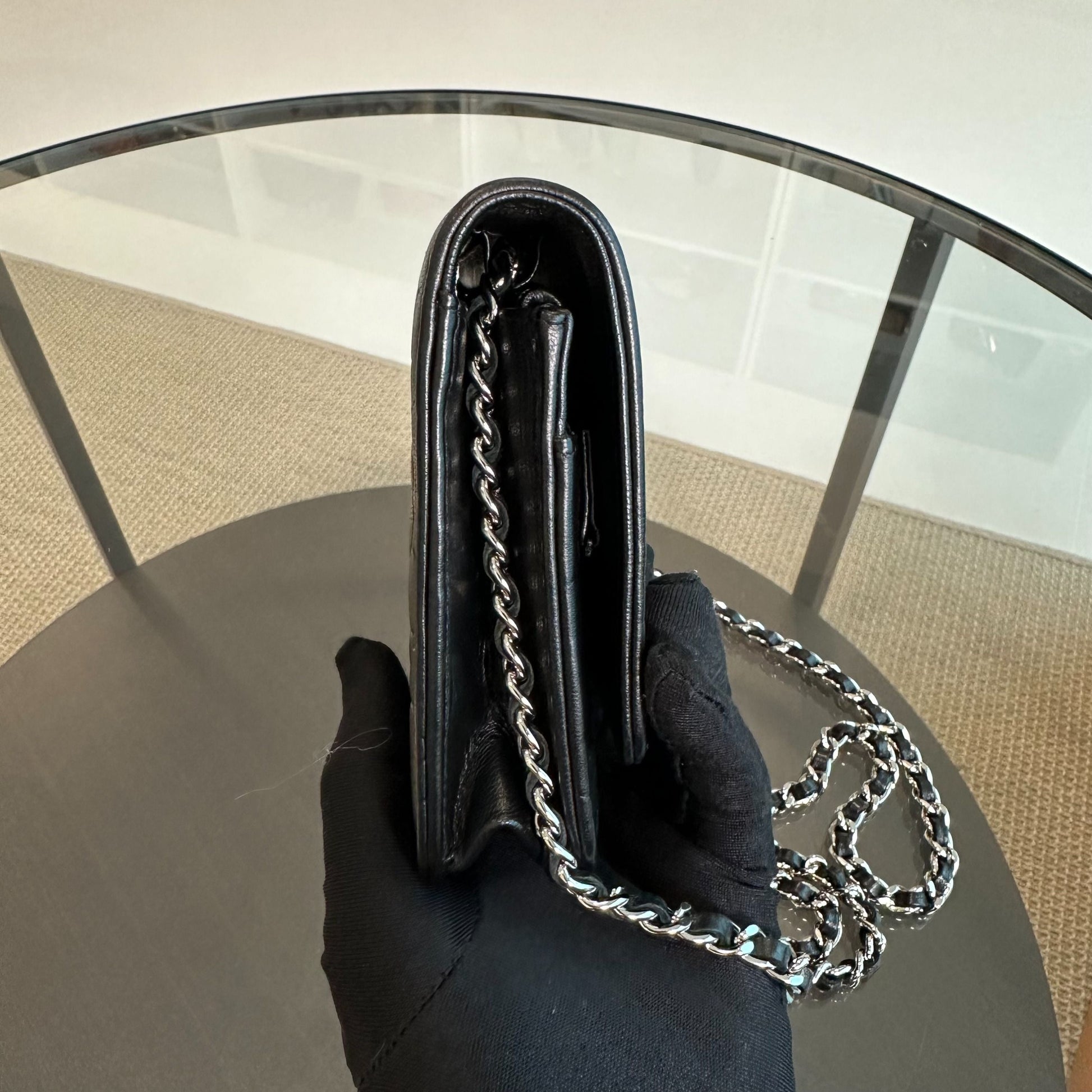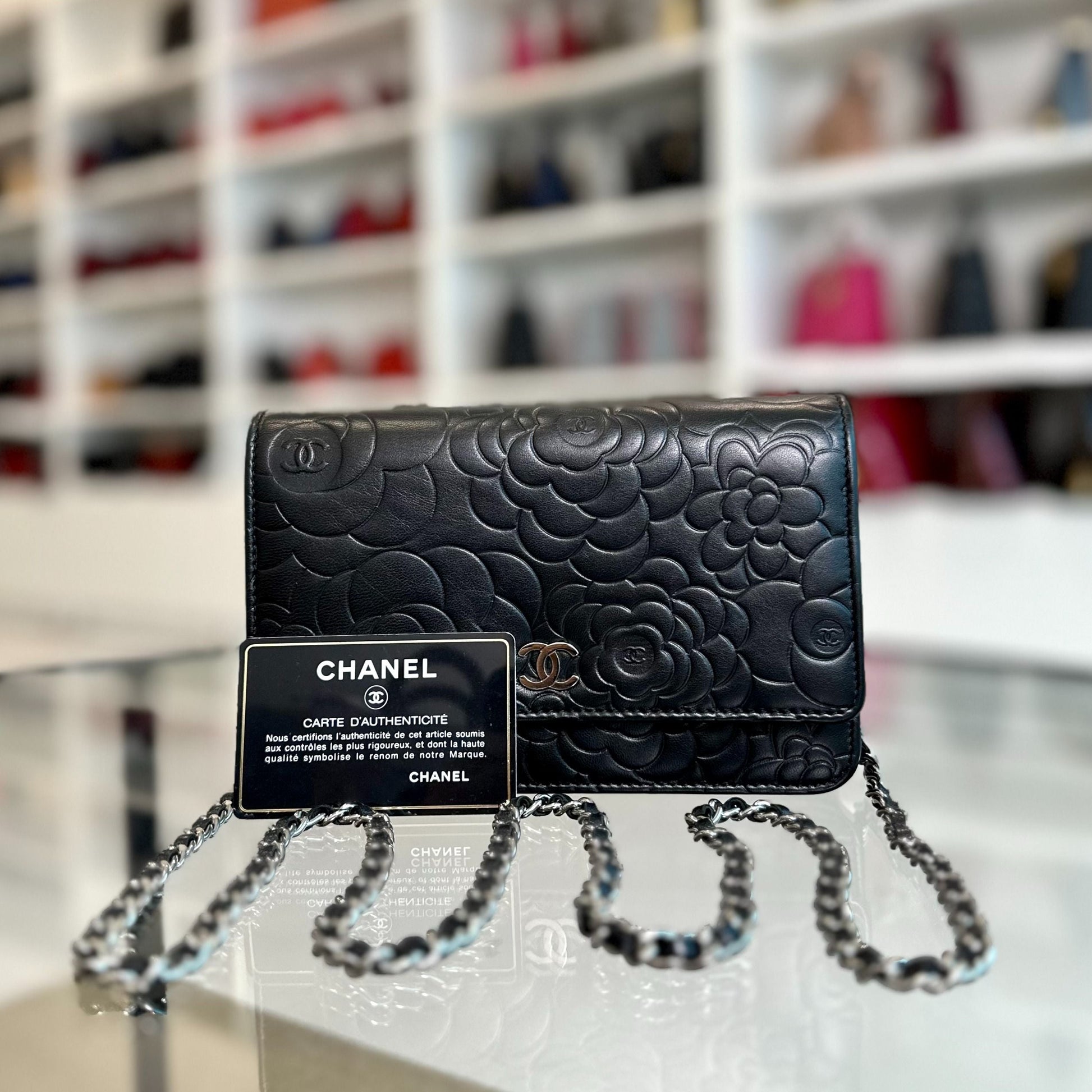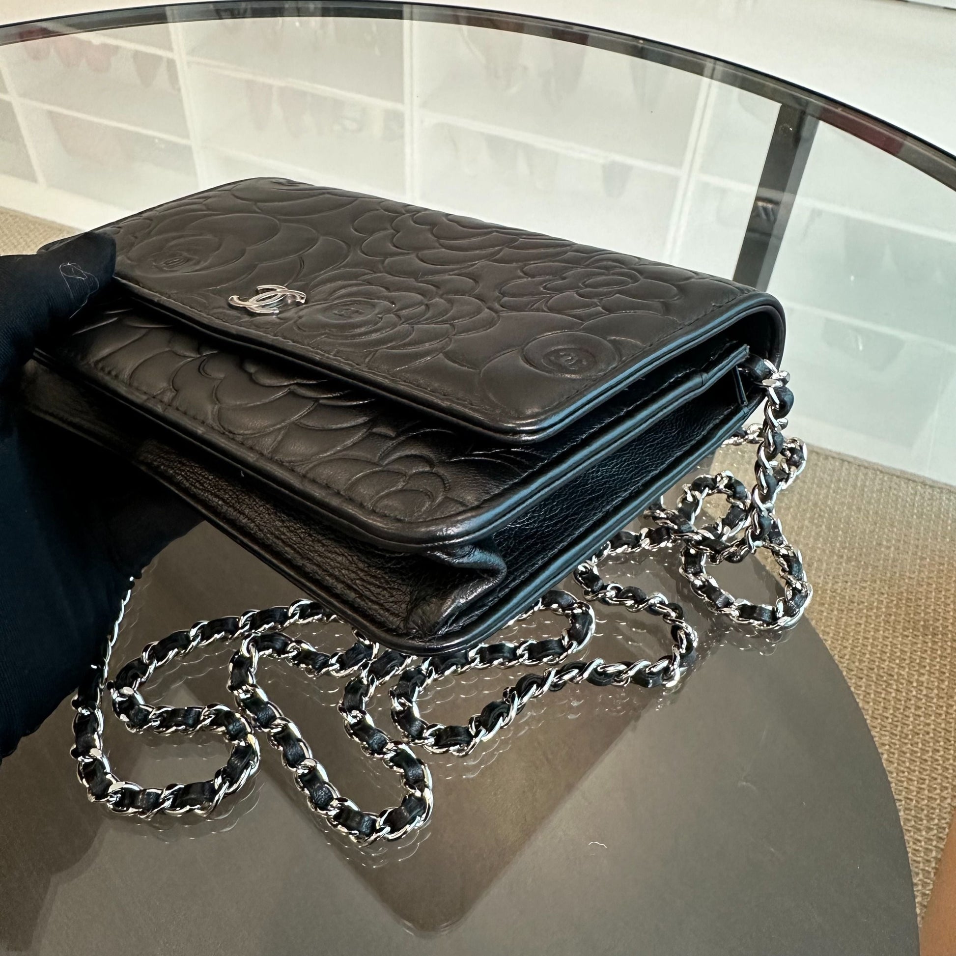 WOC Camellia Wallet On Chain Lambskin Black SHW No 20