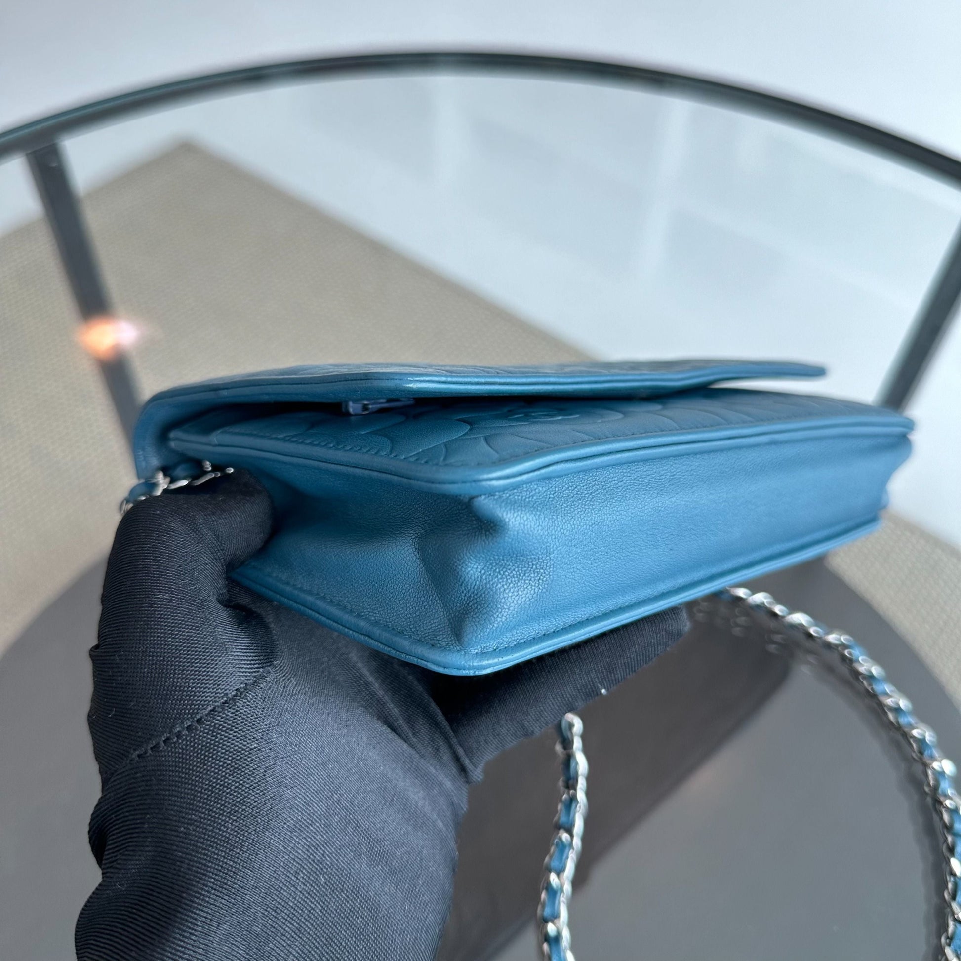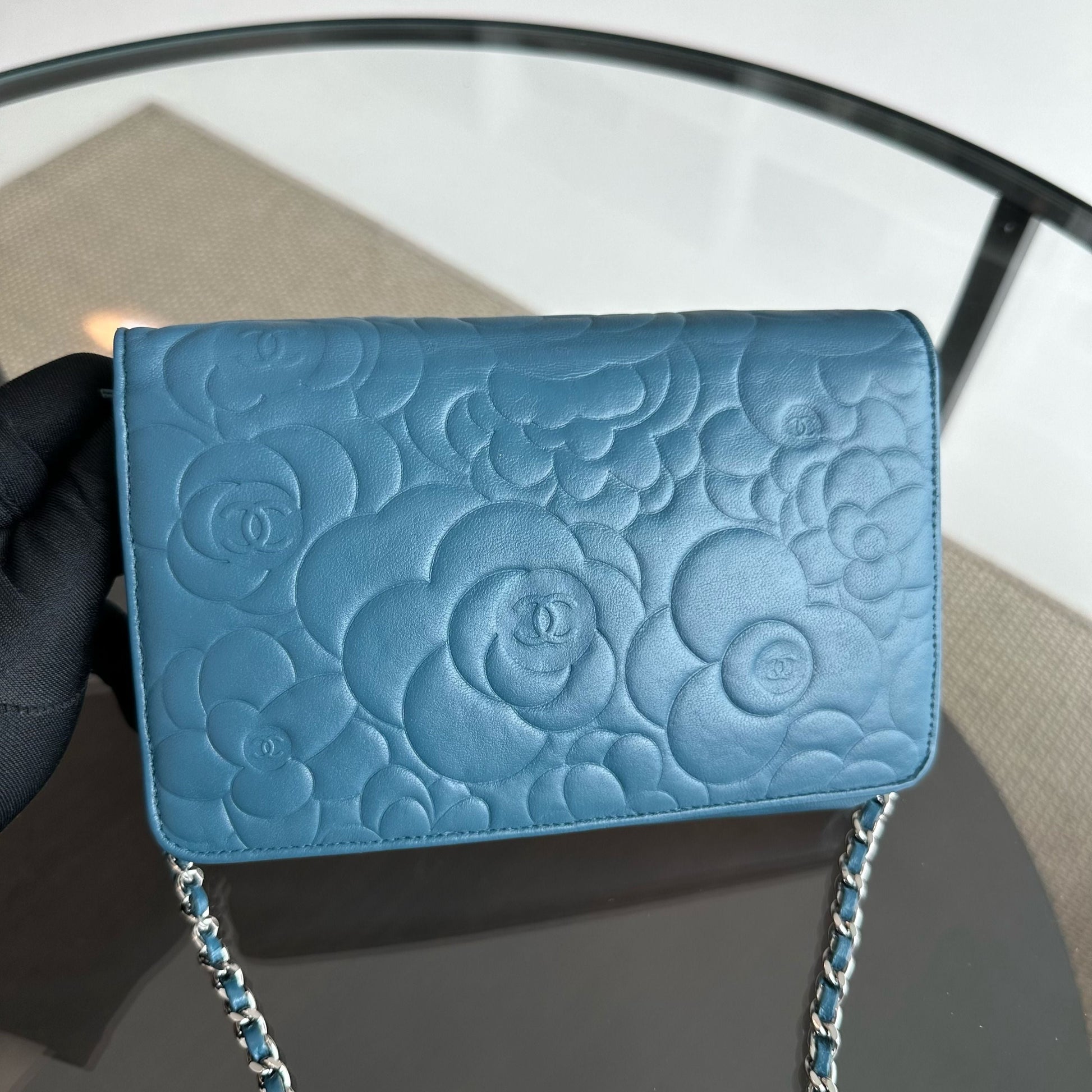 WOC Camellia Wallet On Chain Lambskin Blue SHW No 17