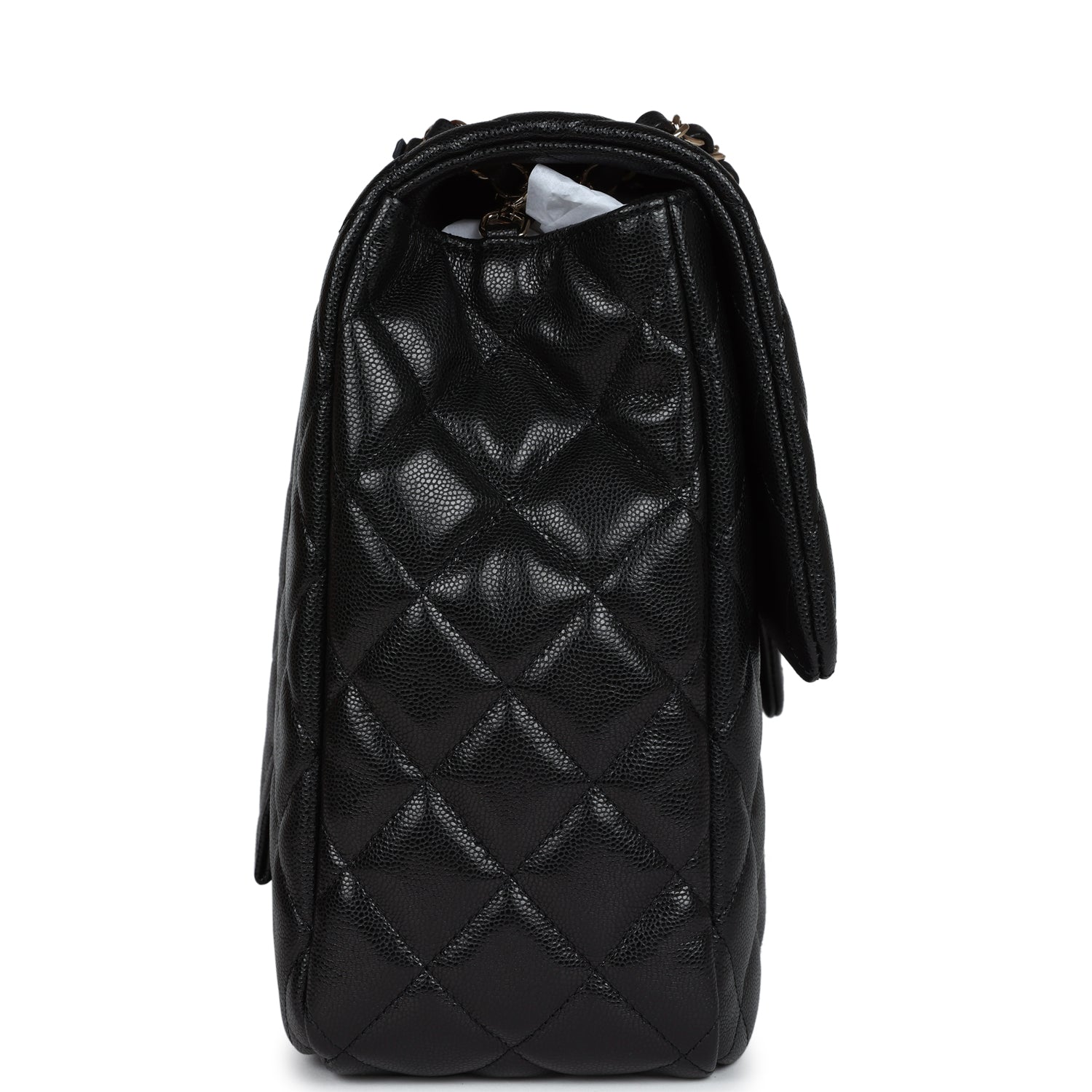 Chanel XXL Flap Bag Black Shiny Caviar Light Gold Hardware