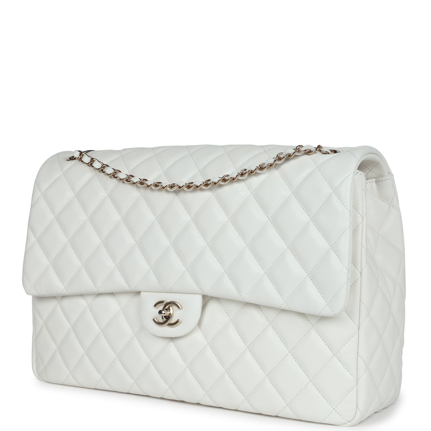 Chanel XXL Flap Bag White Shiny Caviar Light Gold Hardware