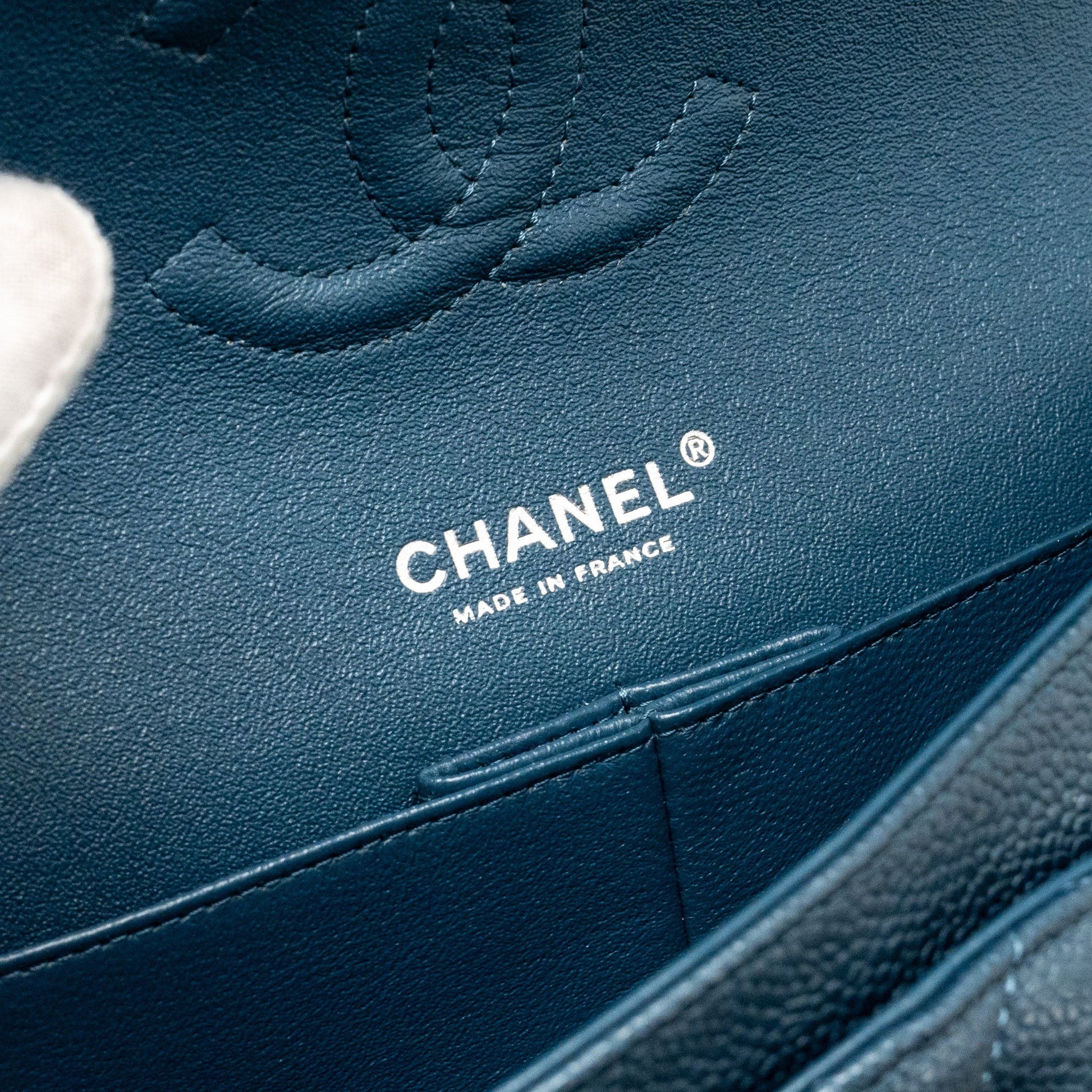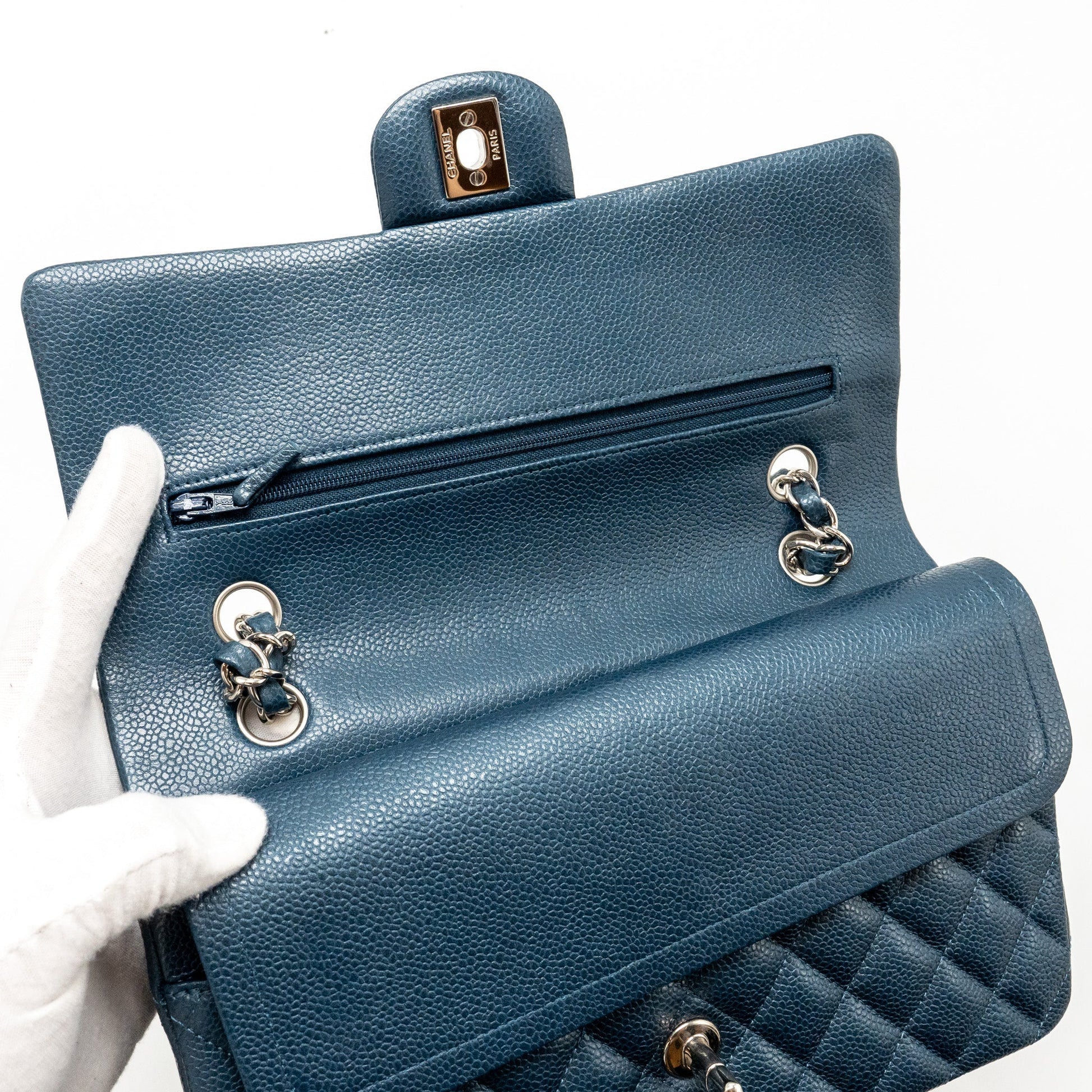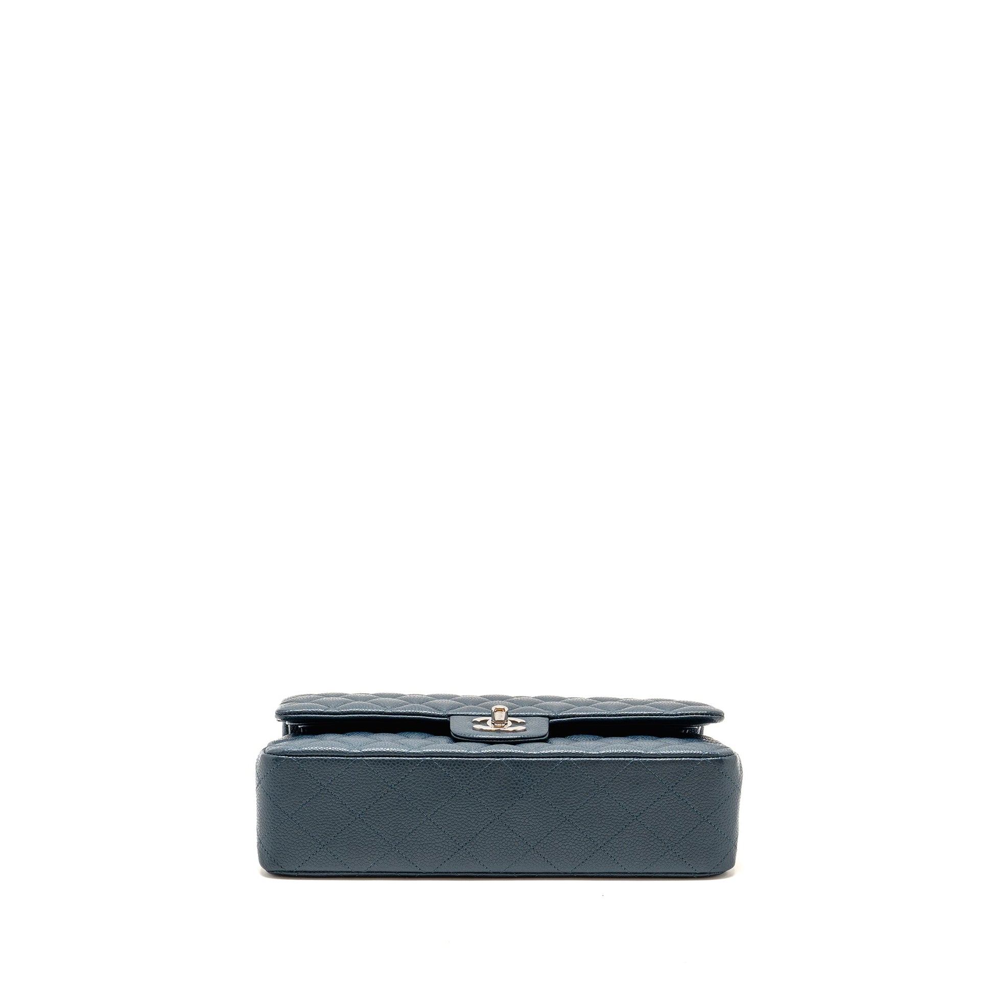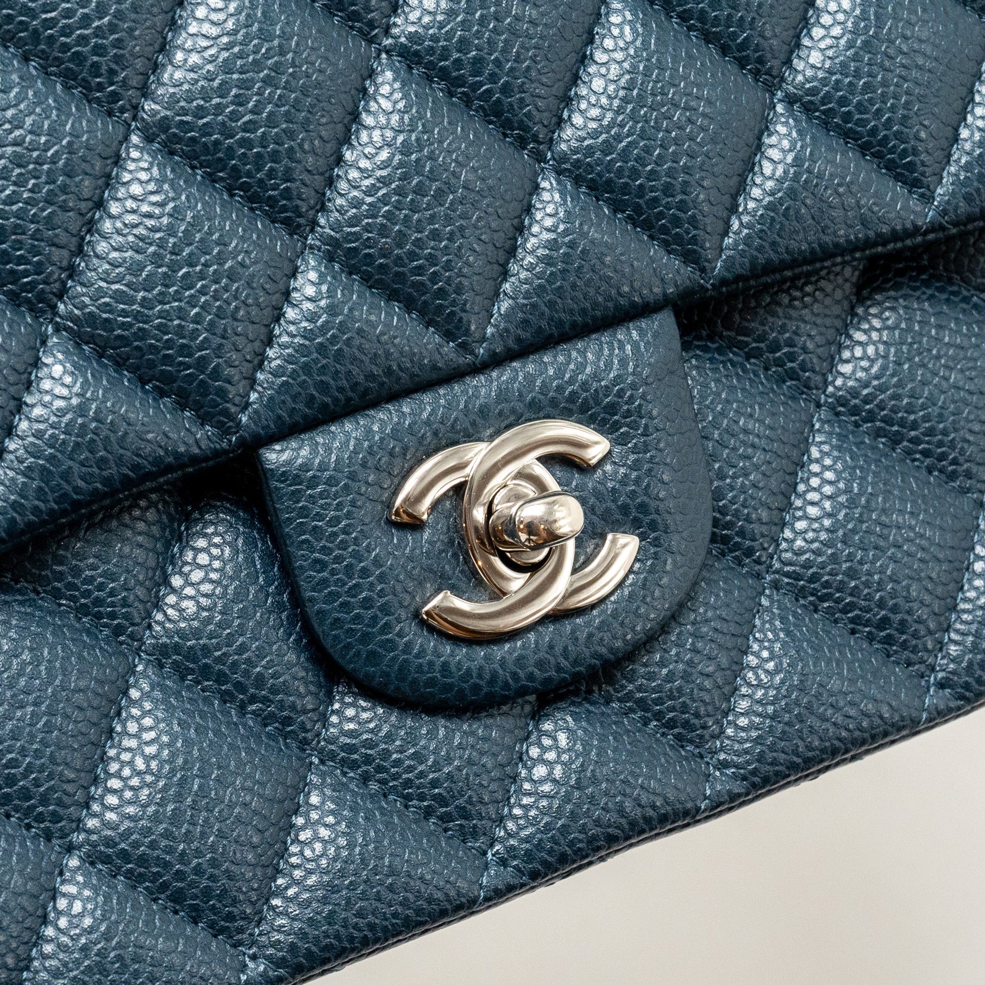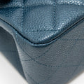 Channel Medium Classic Double Flap Bag Caviar Metallic Dark Blue SHW