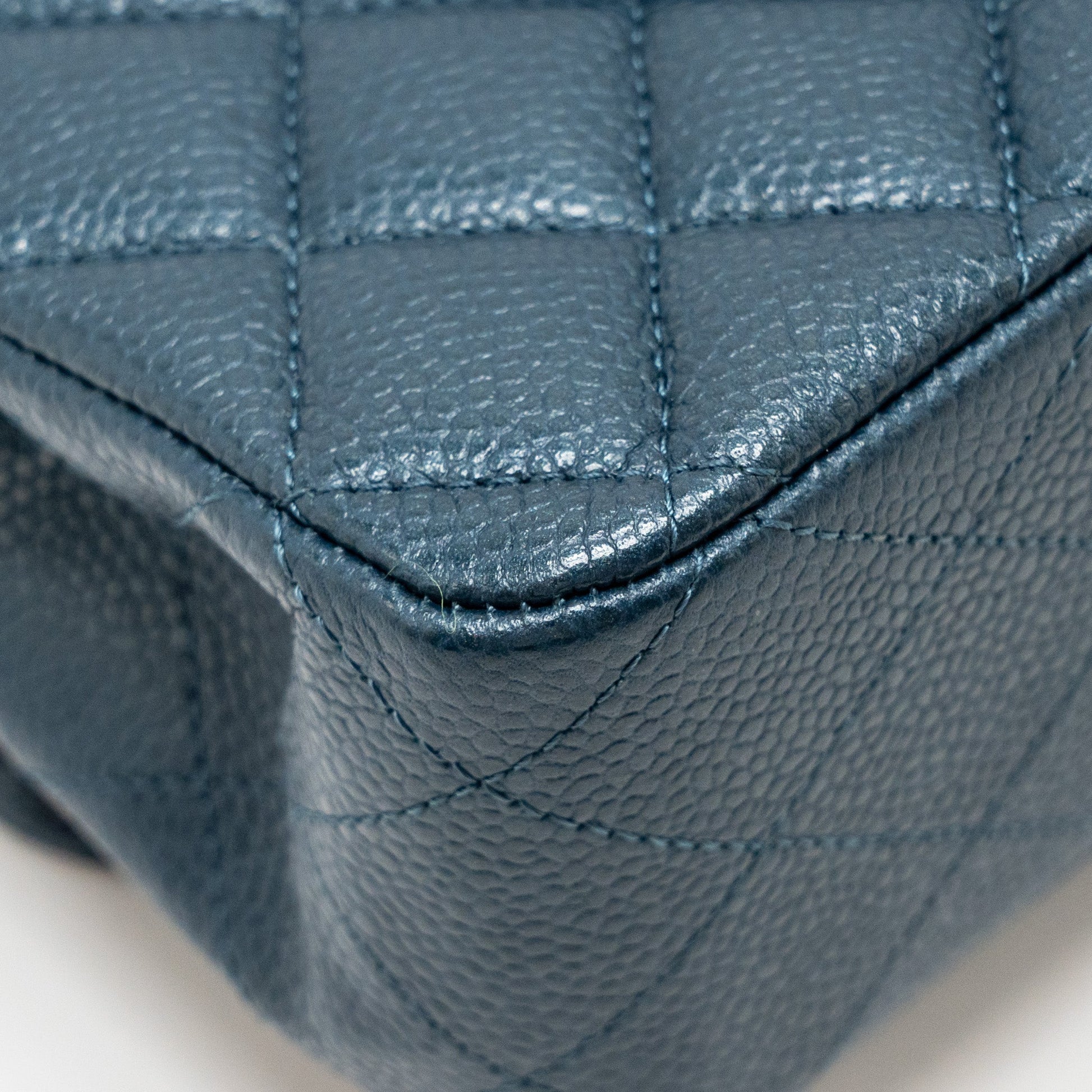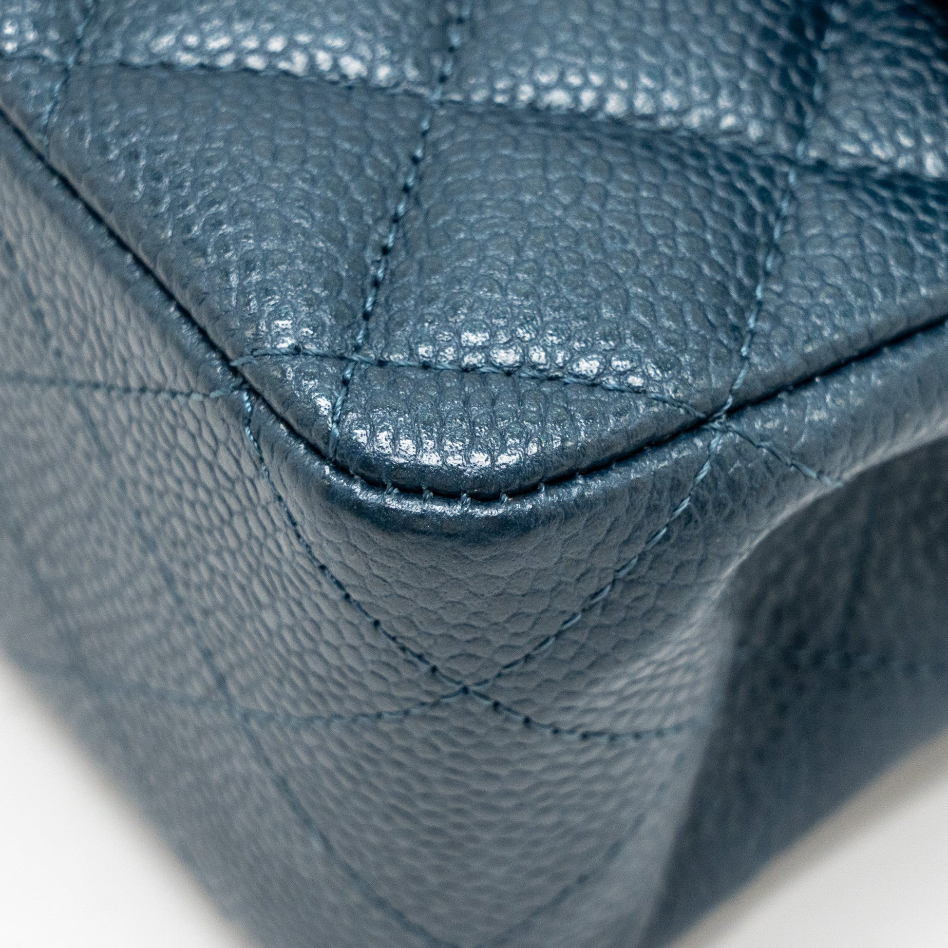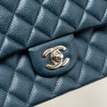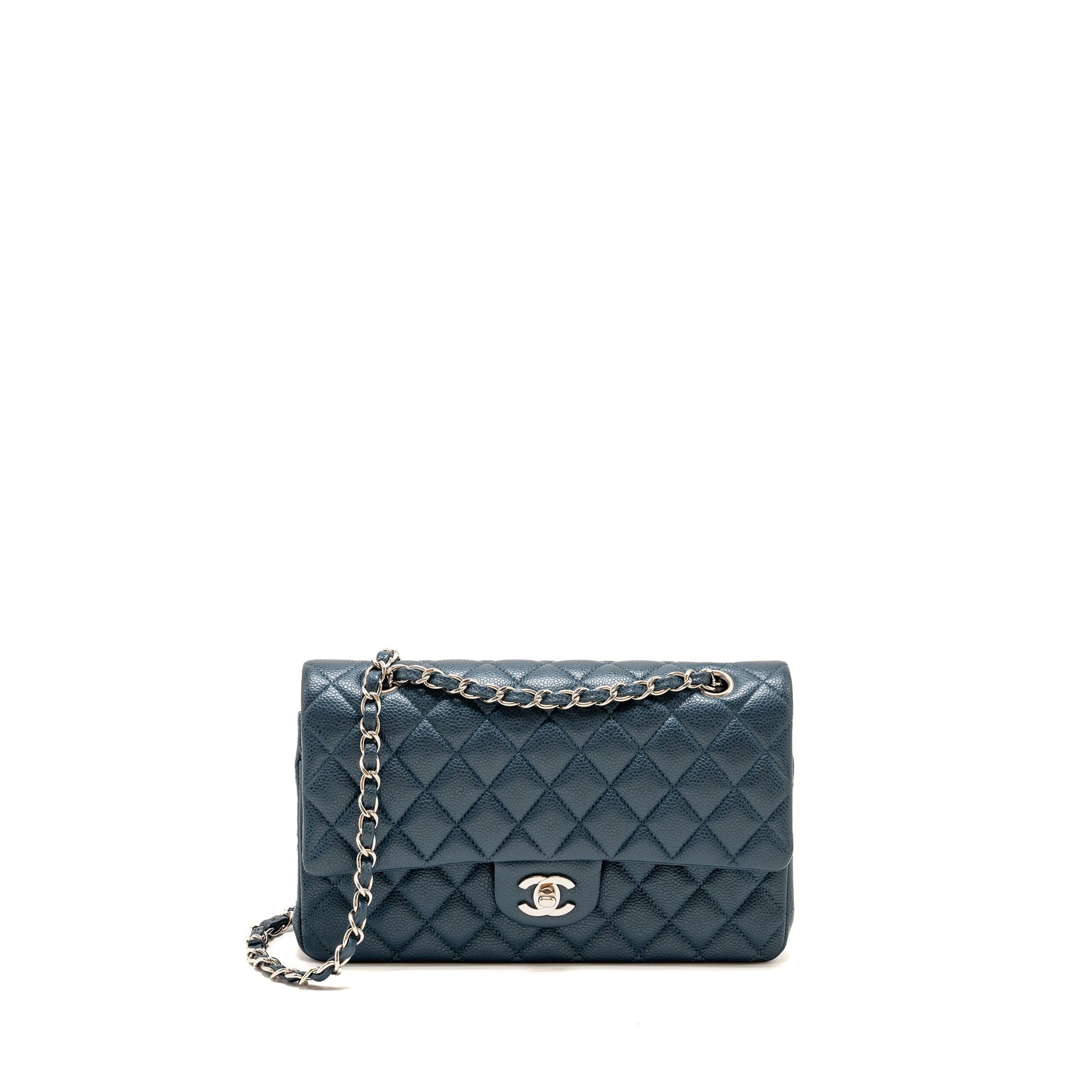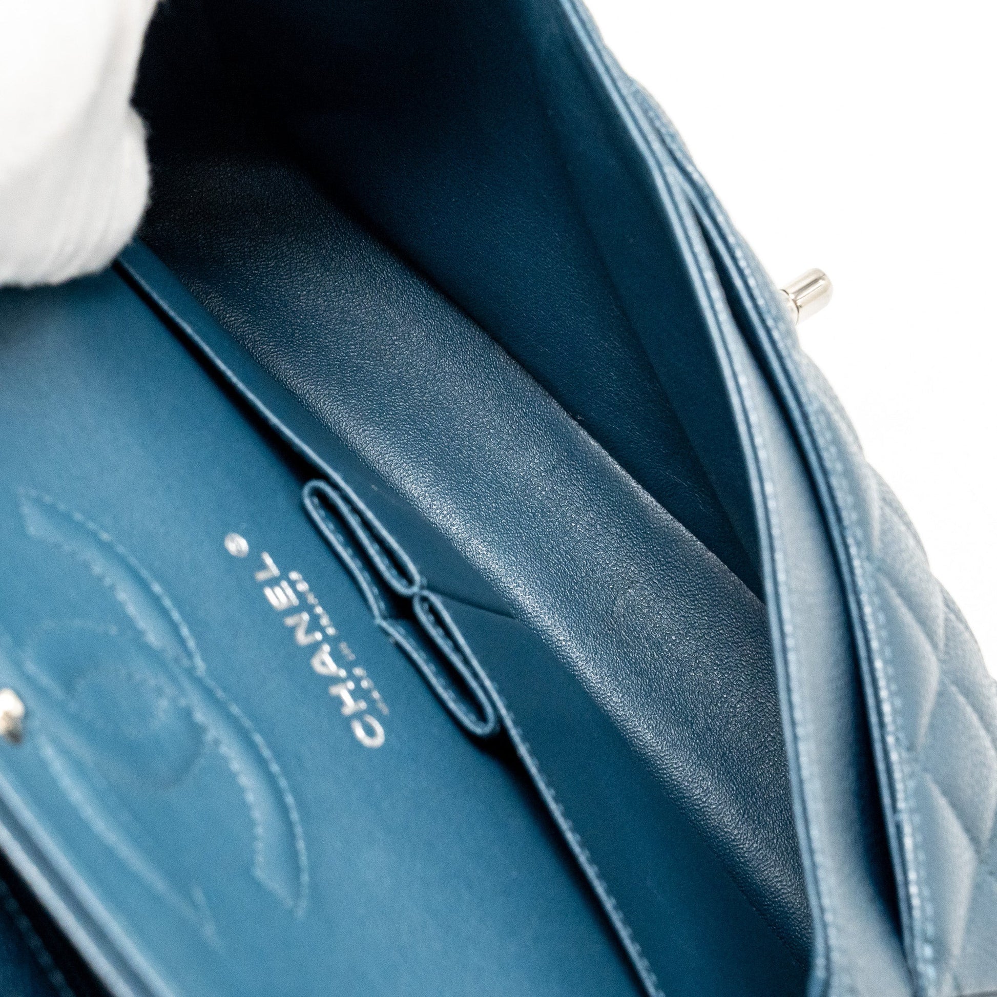 Channel Medium Classic Double Flap Bag Caviar Metallic Dark Blue SHW