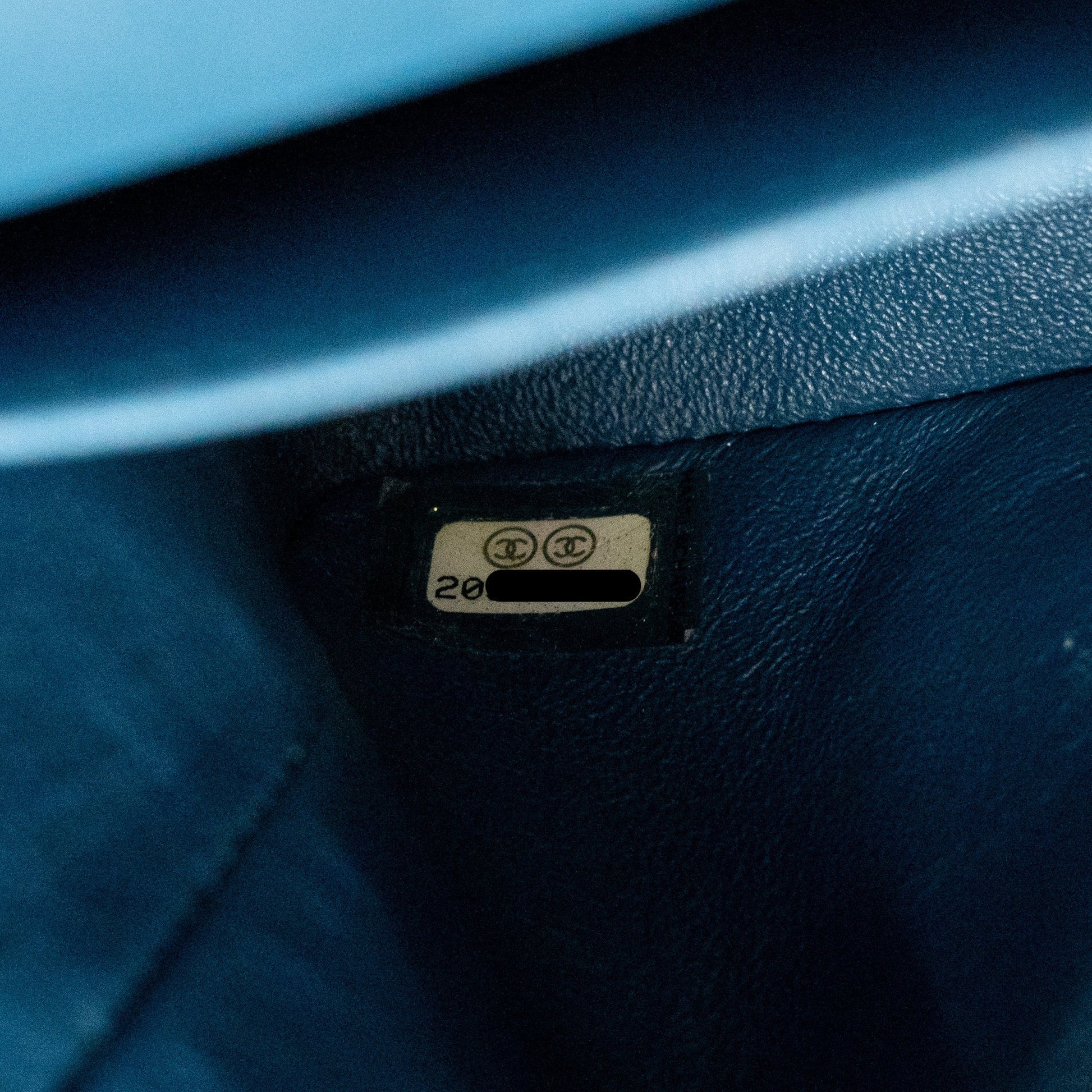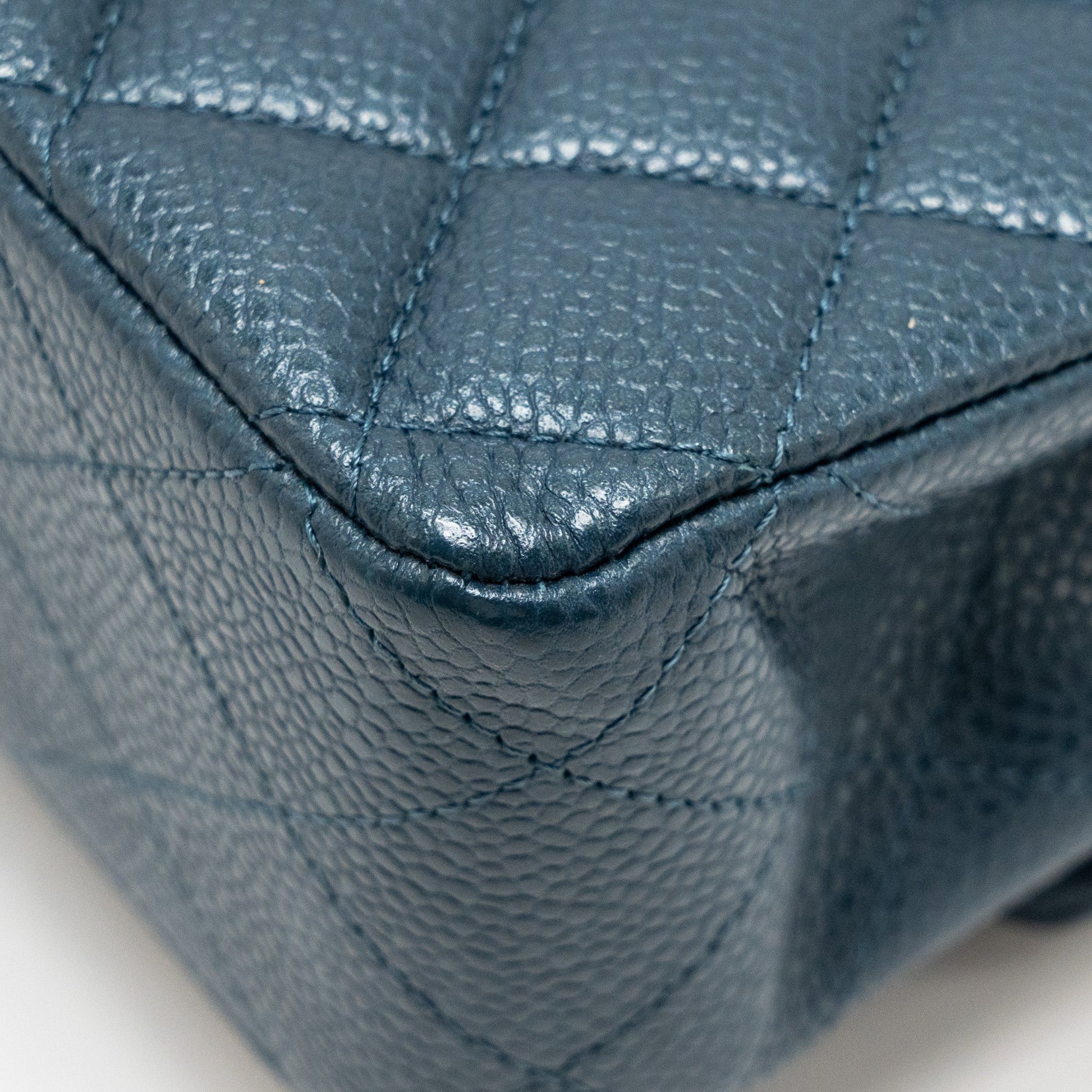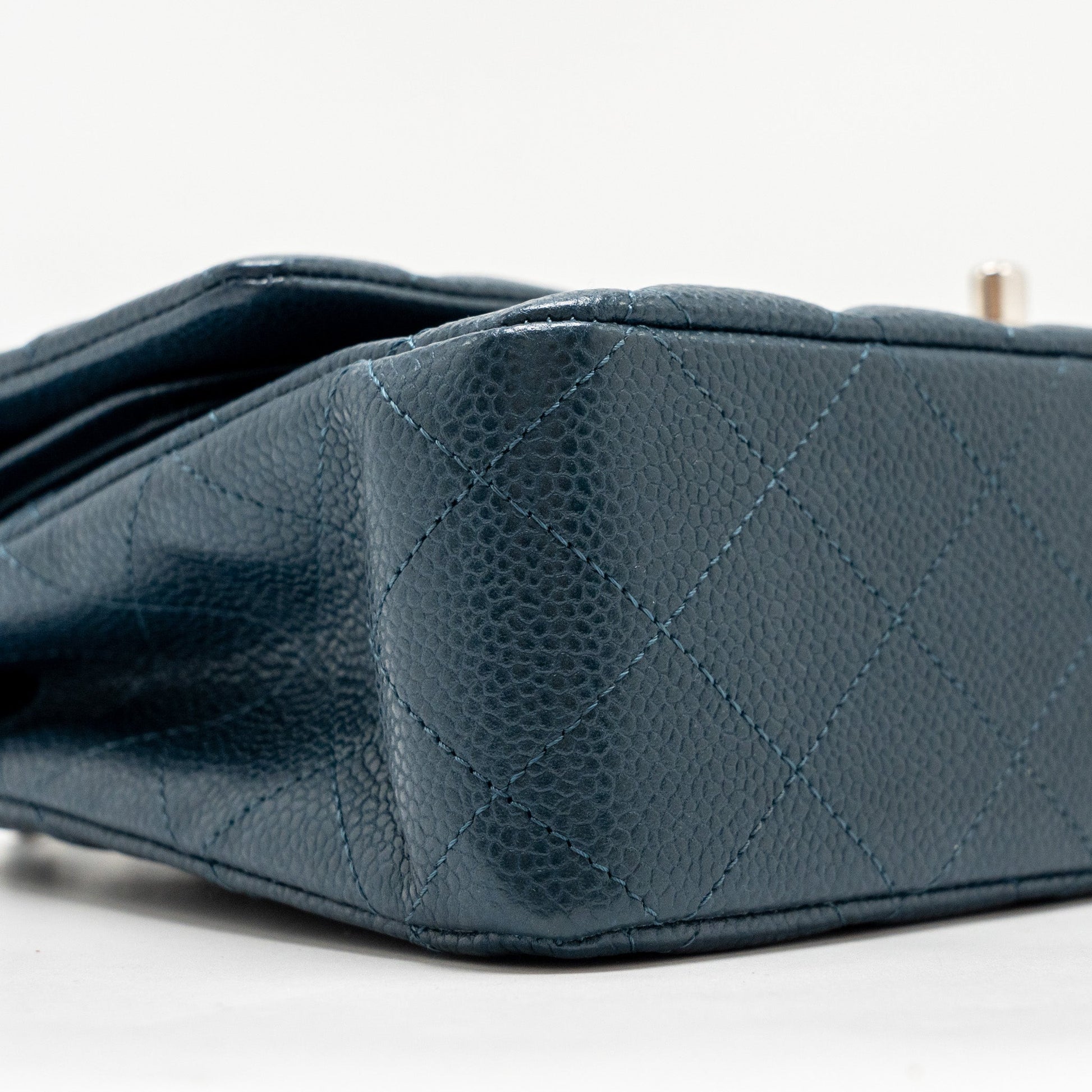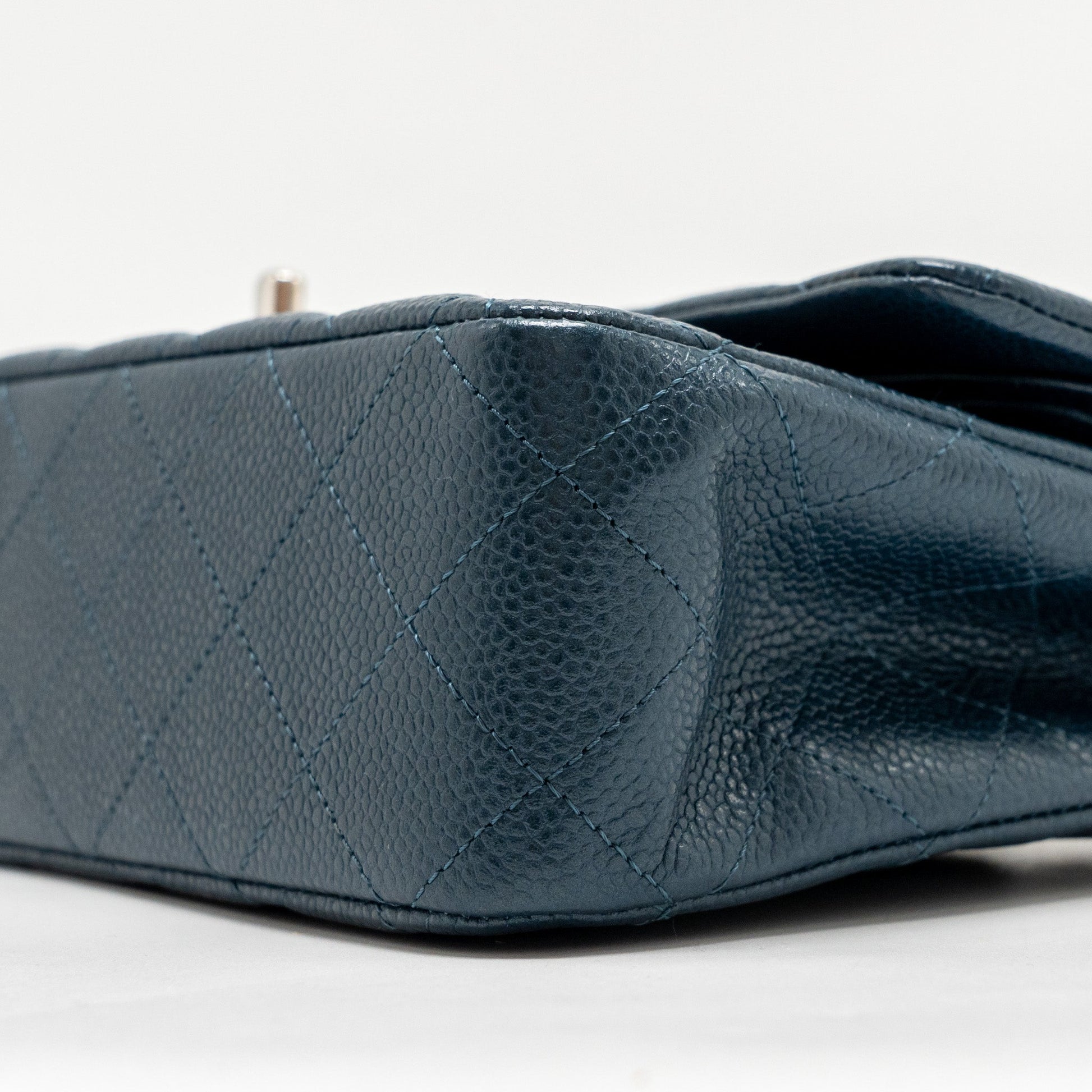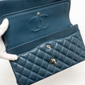 Channel Medium Classic Double Flap Bag Caviar Metallic Dark Blue SHW