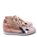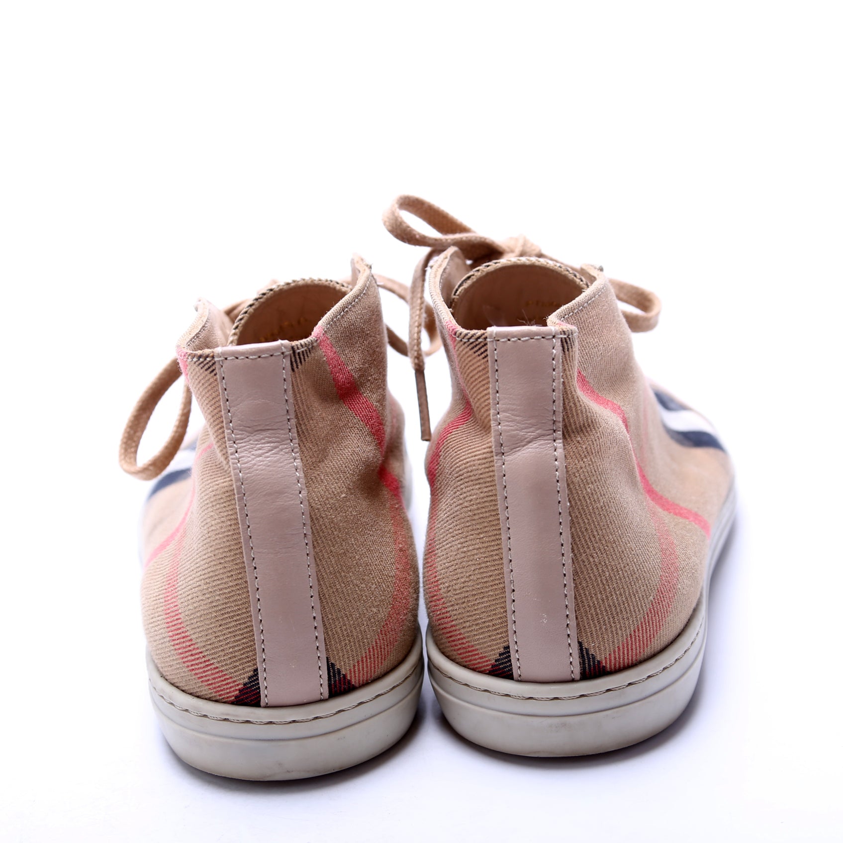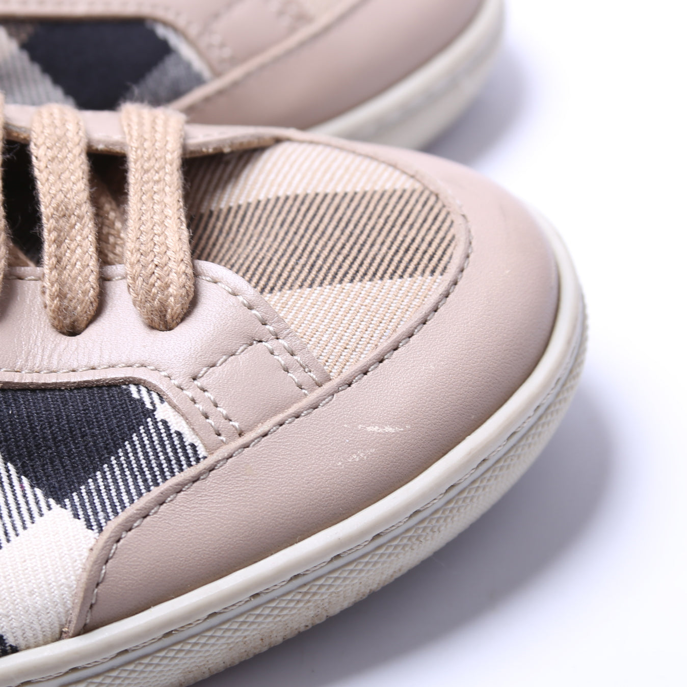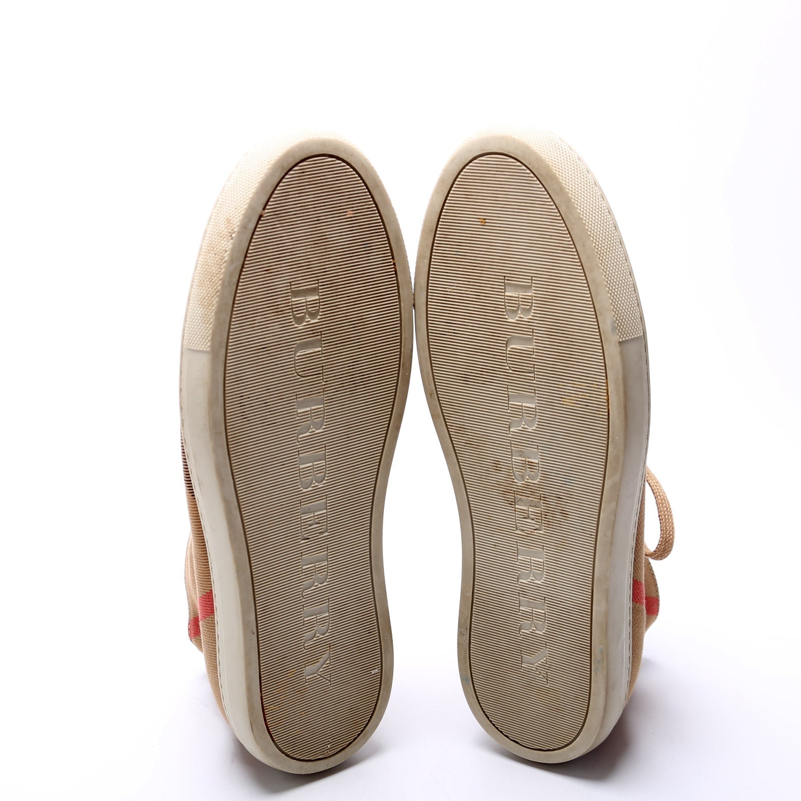 Exterior: The exterior check canvas is free from wear. The leather has light scuffs.