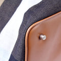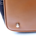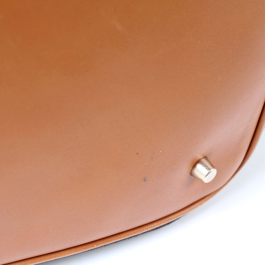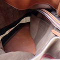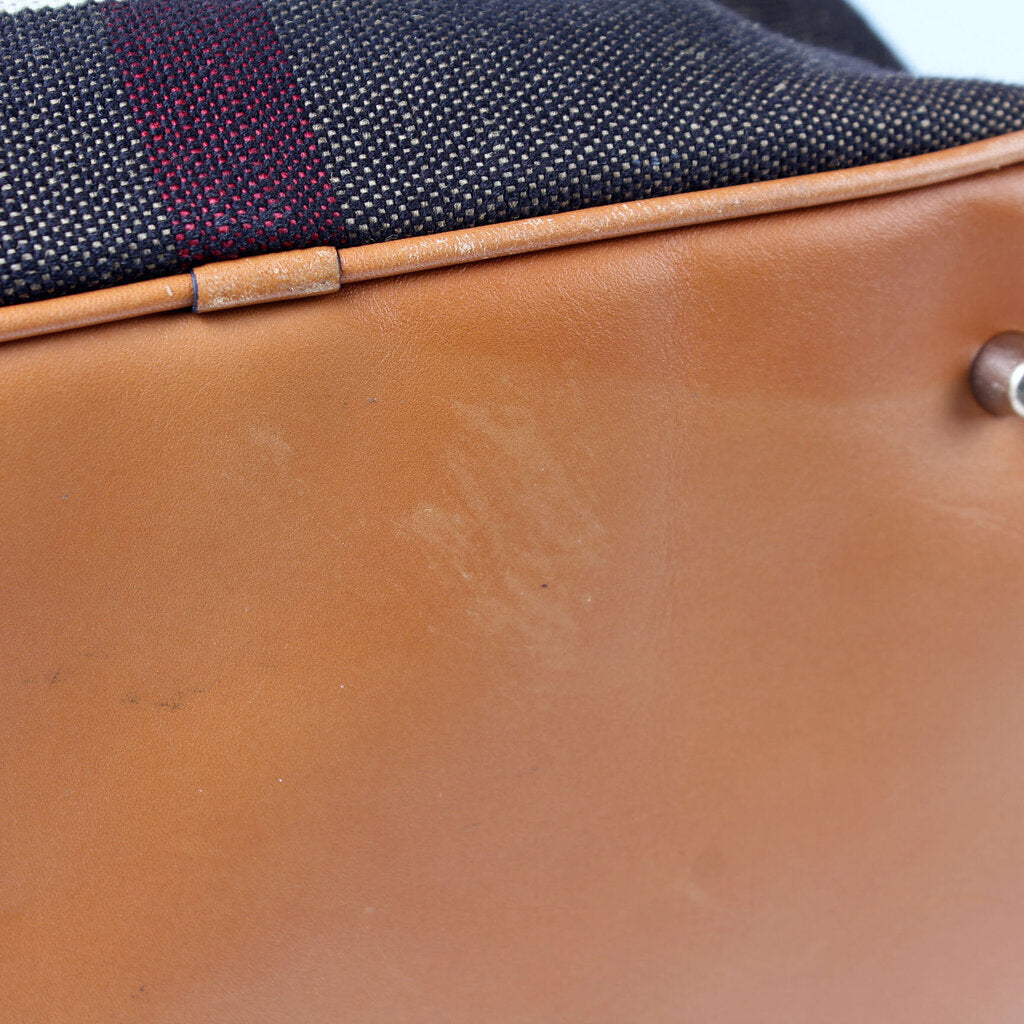 Interior: The interior is shows some minor staining and scuffing in the leather base. The interior features one snap removable zipper pouch with two exterior pockets.