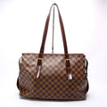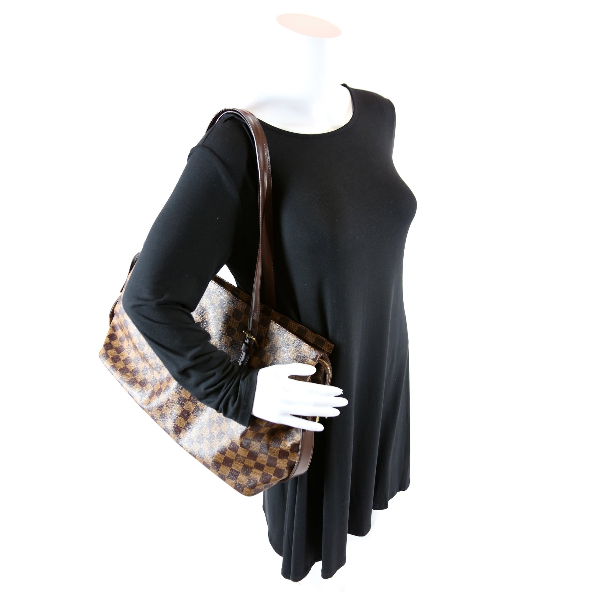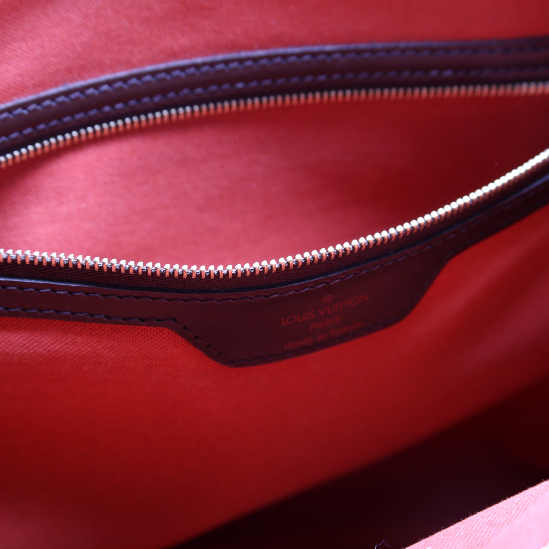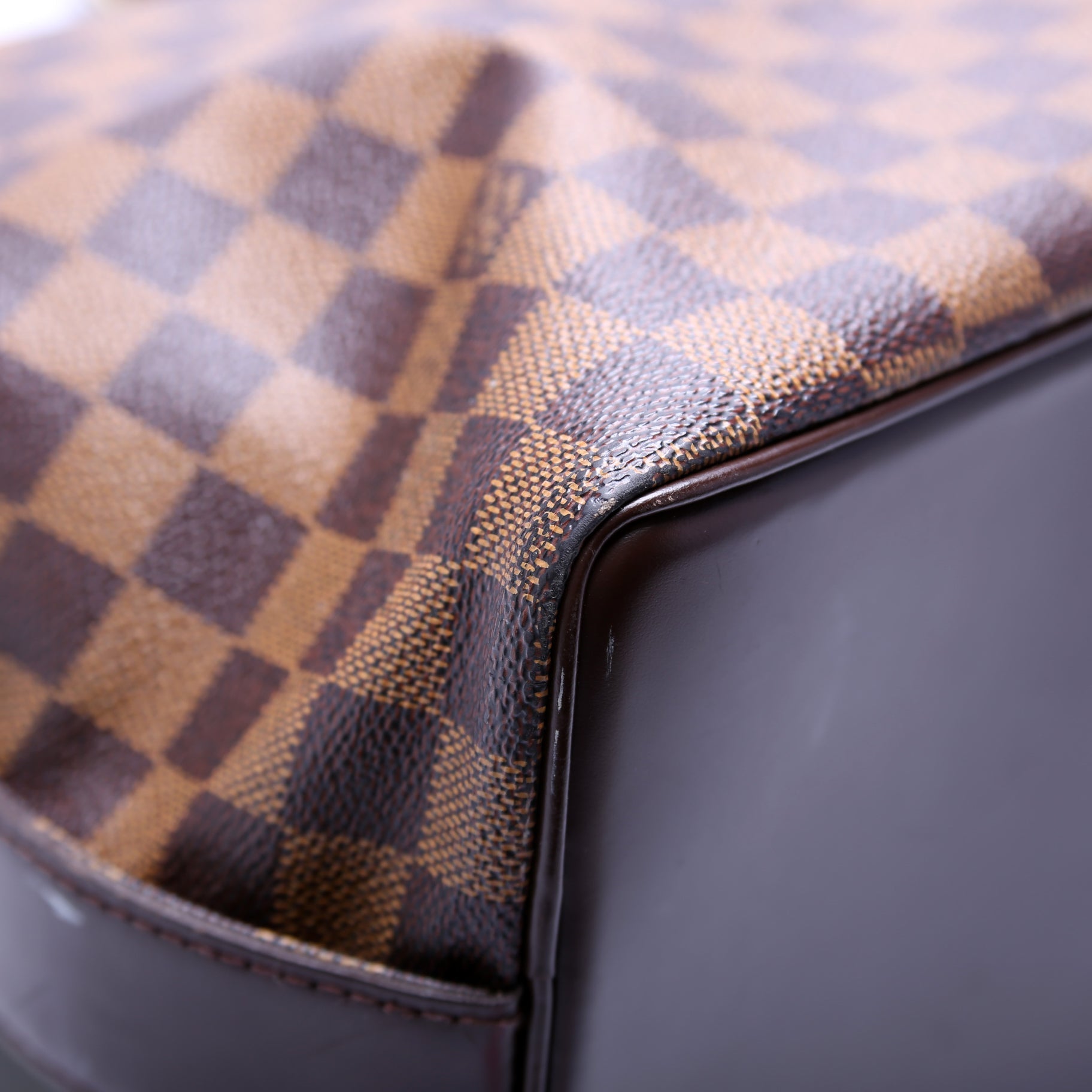 This Louis Vuitton Chelseais eye catching bag. The exterior is in the classic Louis Vuitton Damier Ebene coated canvas.