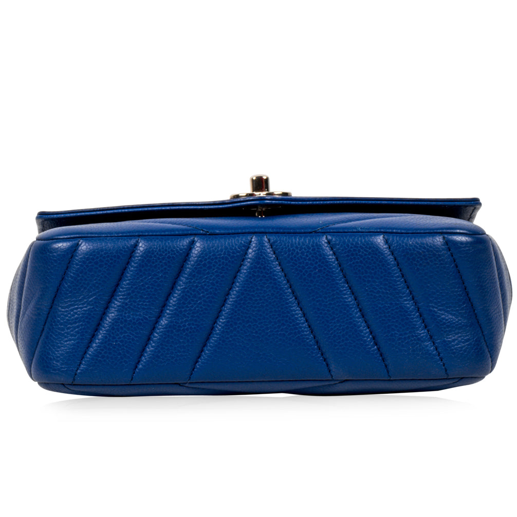 Carefully crafted from blue chevron leather, Chanel presents their stunning Single Envelope Flap bag. A timeless piece that will remain elegant and stylish forever, this bag is a well-worthy addition to any luxury handbag collection. Dress this bag up or down with a cocktail dress and a pair of heels, or casual trousers and a blouse - regardless of what you wear it with, this little gem compliments pretty much anything in your wardrobe. Featuring a single, spacious compartment, you can carry all your day-to-day and evening essentials in style. A truly beautiful piece that embodies elegance and femininity to a T, this bag is the ideal accessory for any woman with a love for luxury and a soft spot for Chanel.