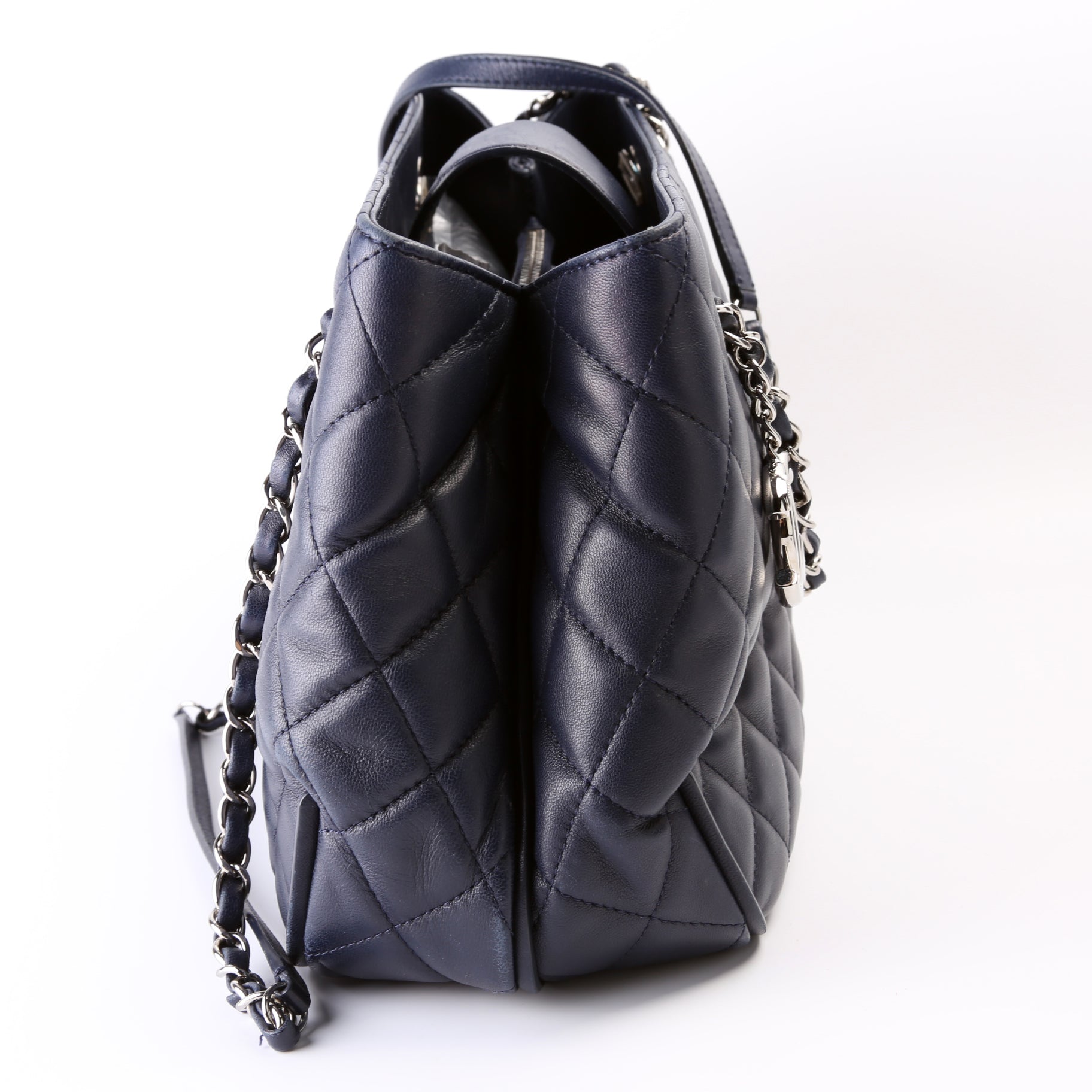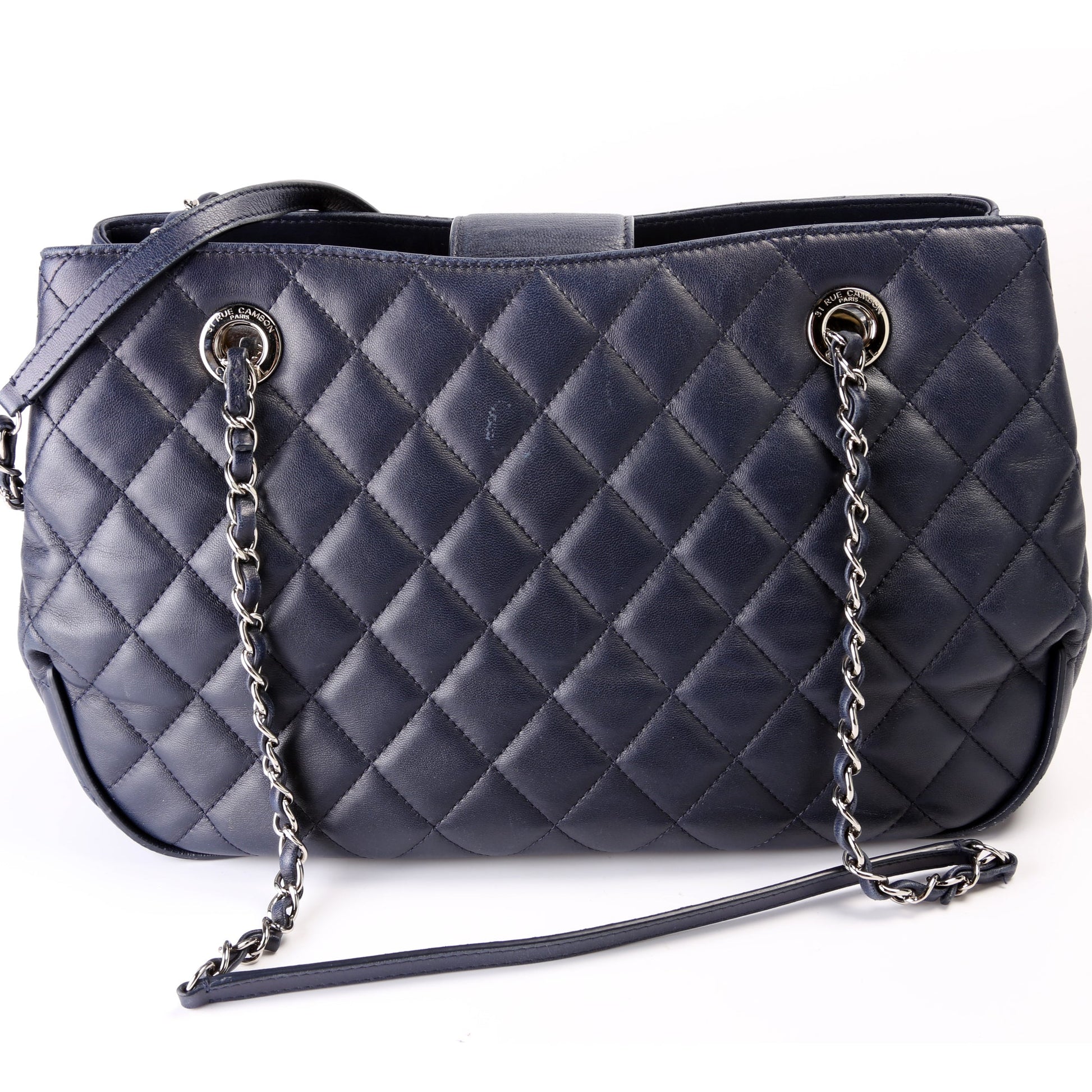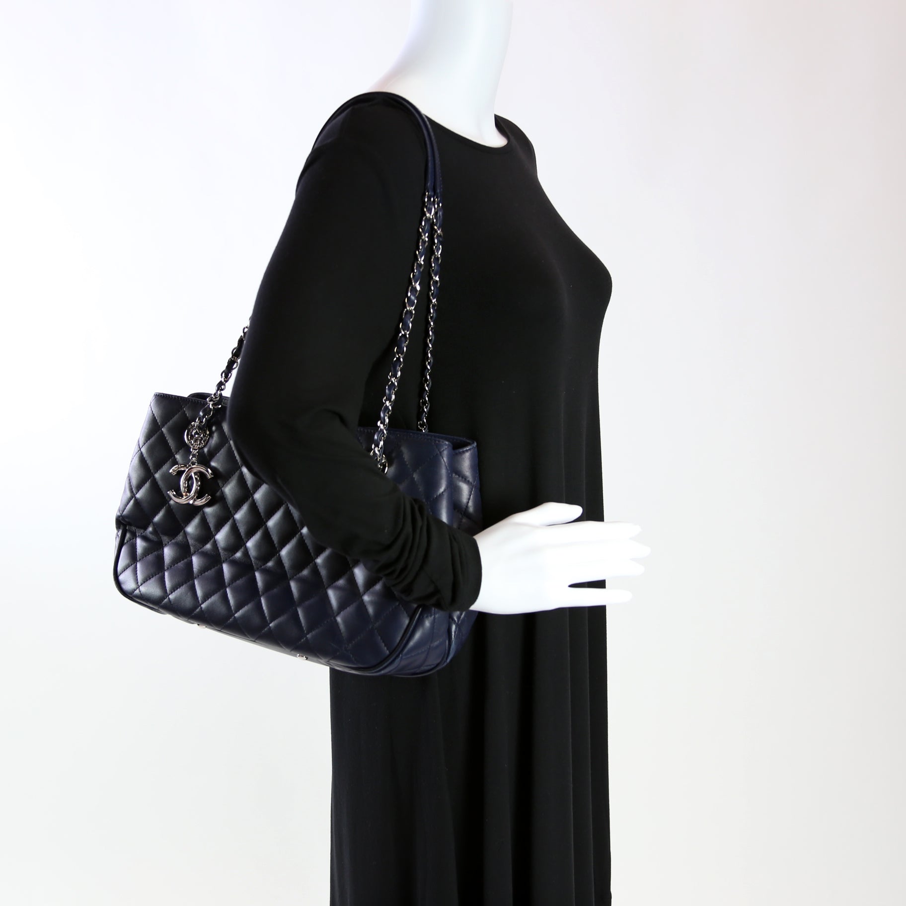 This Chanel Chic Shopping Toteis eye catching bag. The exterior is in the classic Lambskin Leather.