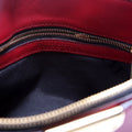 Exterior: The exterior leather shows wear to the corners. The exterior features one magnetic closure pocket. The corners show minor wear.