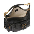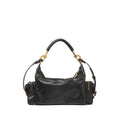 black buffalo leather single detachable top handle single shoulder strap top zip fastening front flap pocket two side zip-fastening pockets main compartment internal slip pocket