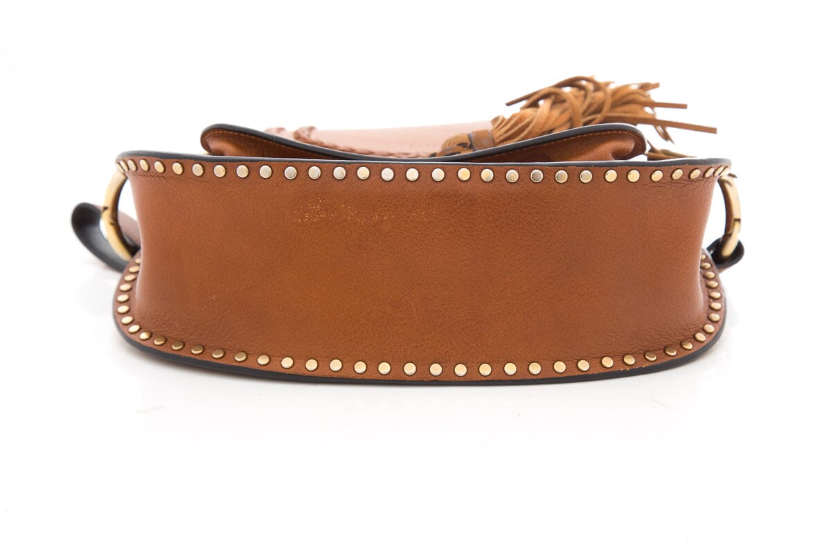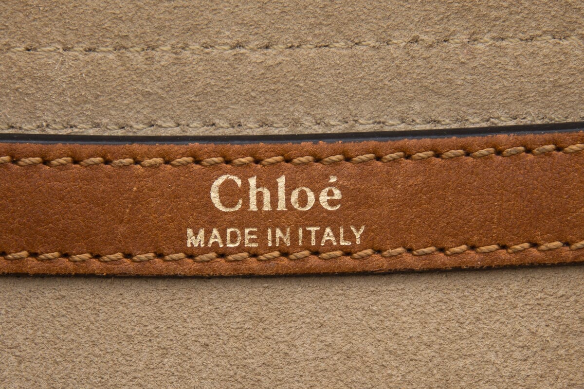 Chloe Brown Hudson Whipstitch Leather Handbag. This item is in good condition; minor scratching on exterior and some marks on lining.