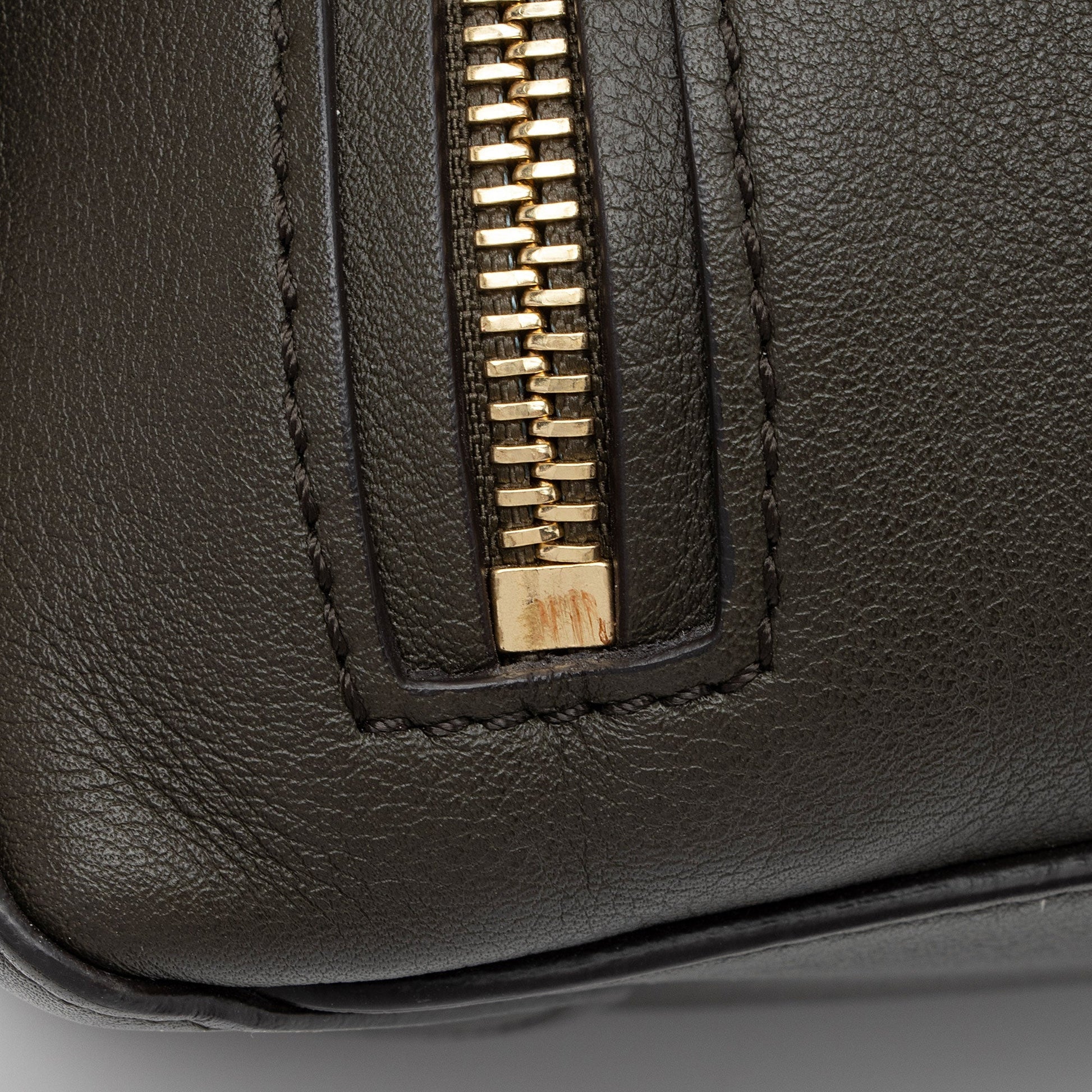 Condition Notes: Subtle scuffs to exterior bottom corners. Light imprint to exterior front front closure hardware. Light surface scratches to hardware. Minor wear throughout interior. Please note: Read product details carefully. This is a dark green bag.