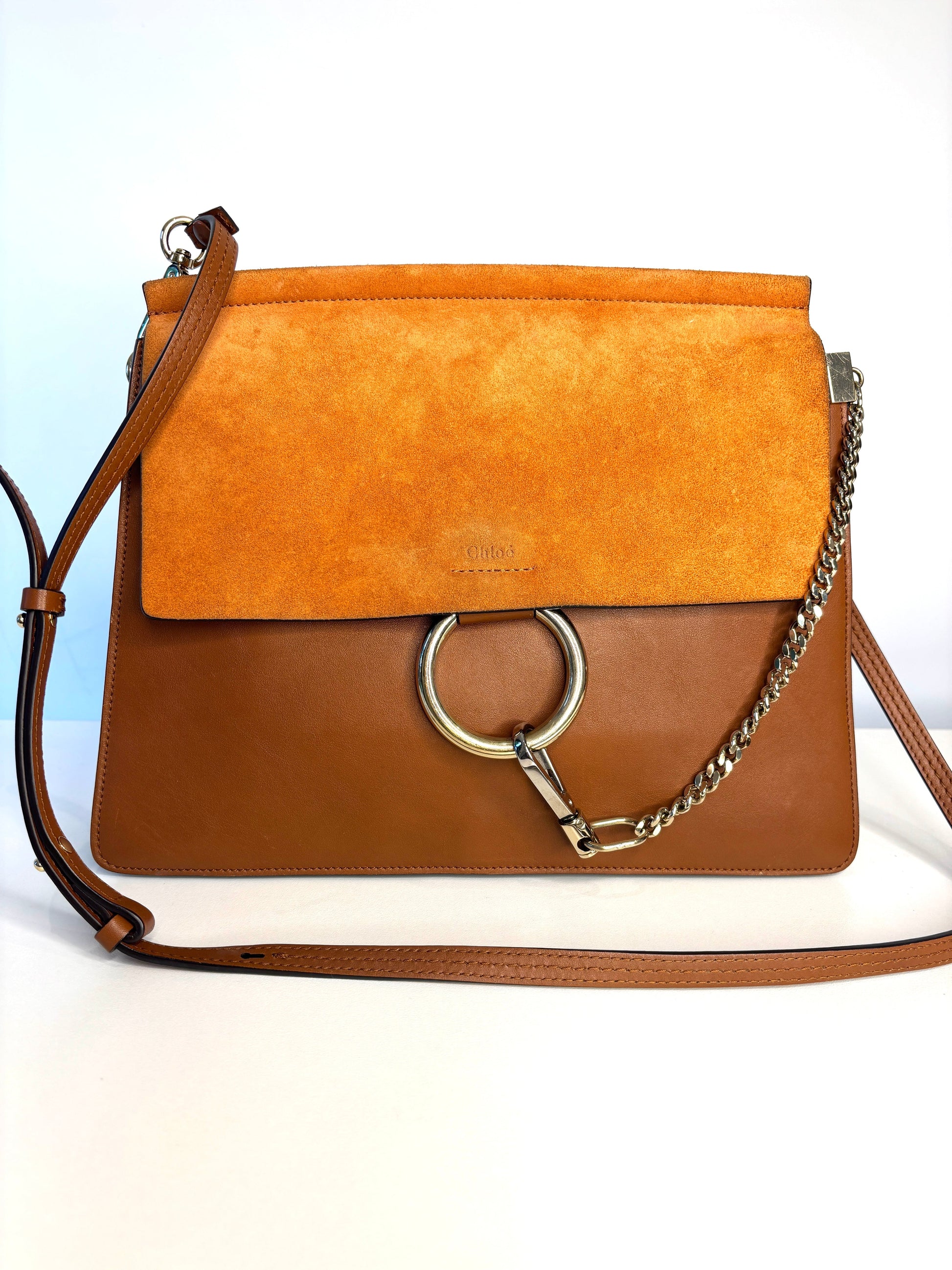 Chloe Faye Medium Brown Leather and Suede Shoulder Bag Preloved