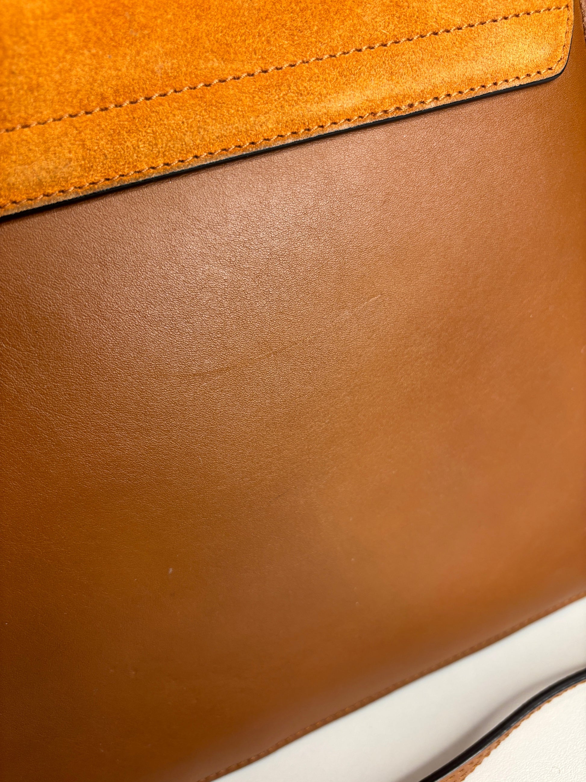 - Condition: very good pre-loved. Faint sign of use on front of flap at the snap closure. Scratch on the back, not noticeable when worn. A couple of faint stain marks on the interior, but otherwise nice and clean.