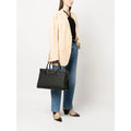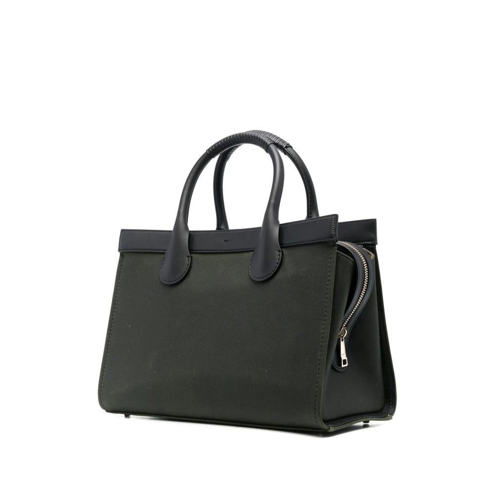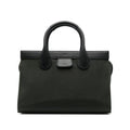 dark green cotton/calf leather embossed logo to the front two top handles top zip fastening main compartment internal zip-fastening pocket adjustable detachable shoulder strap