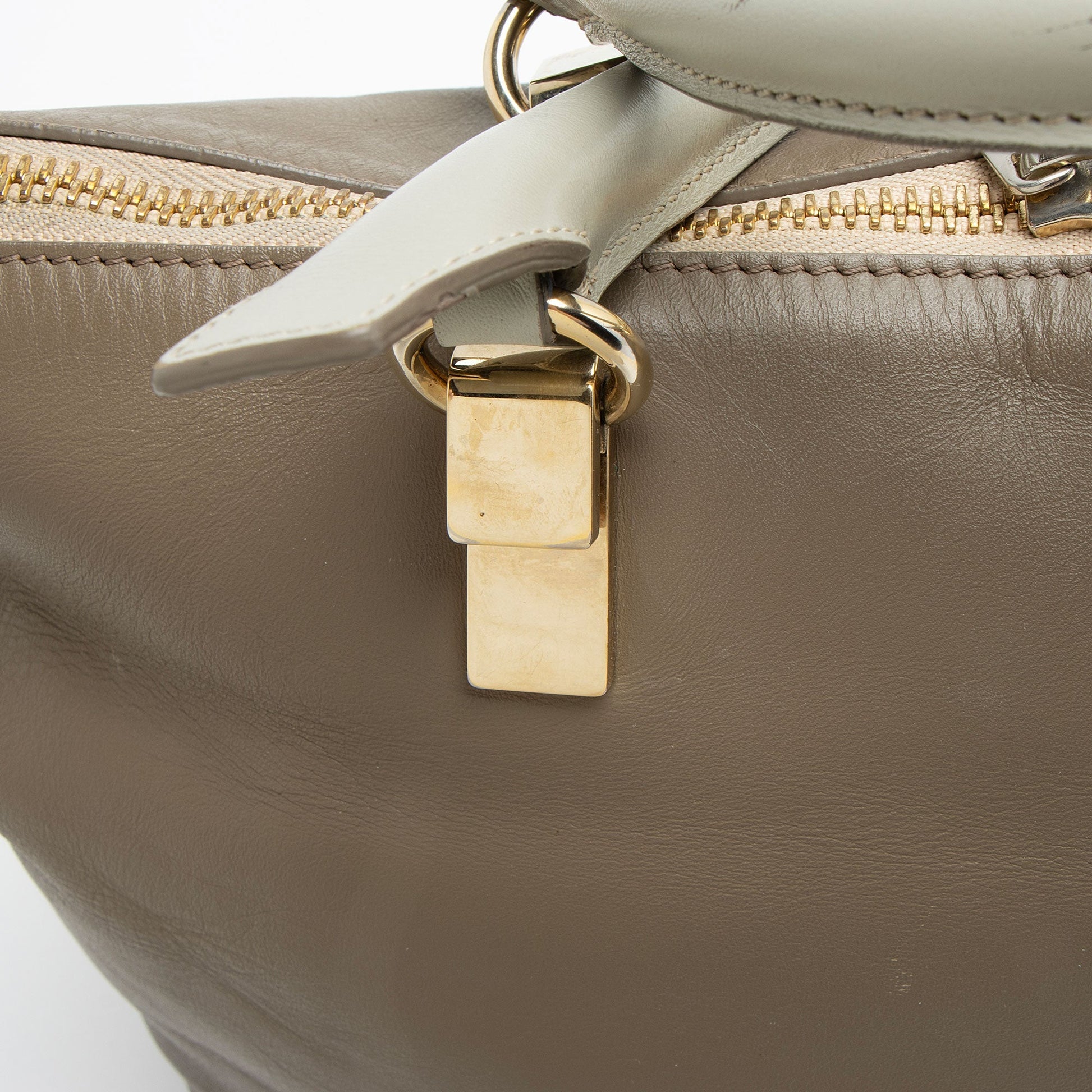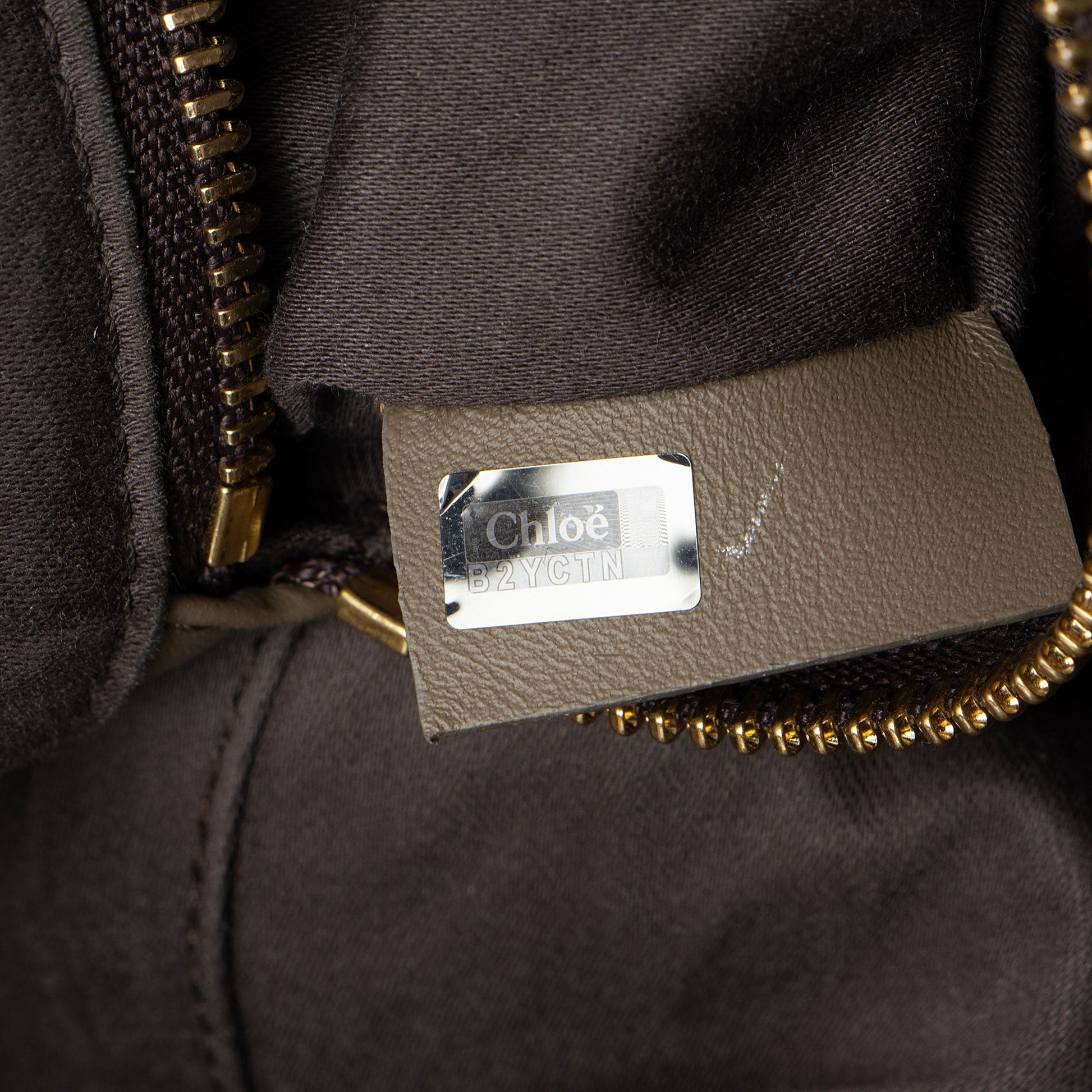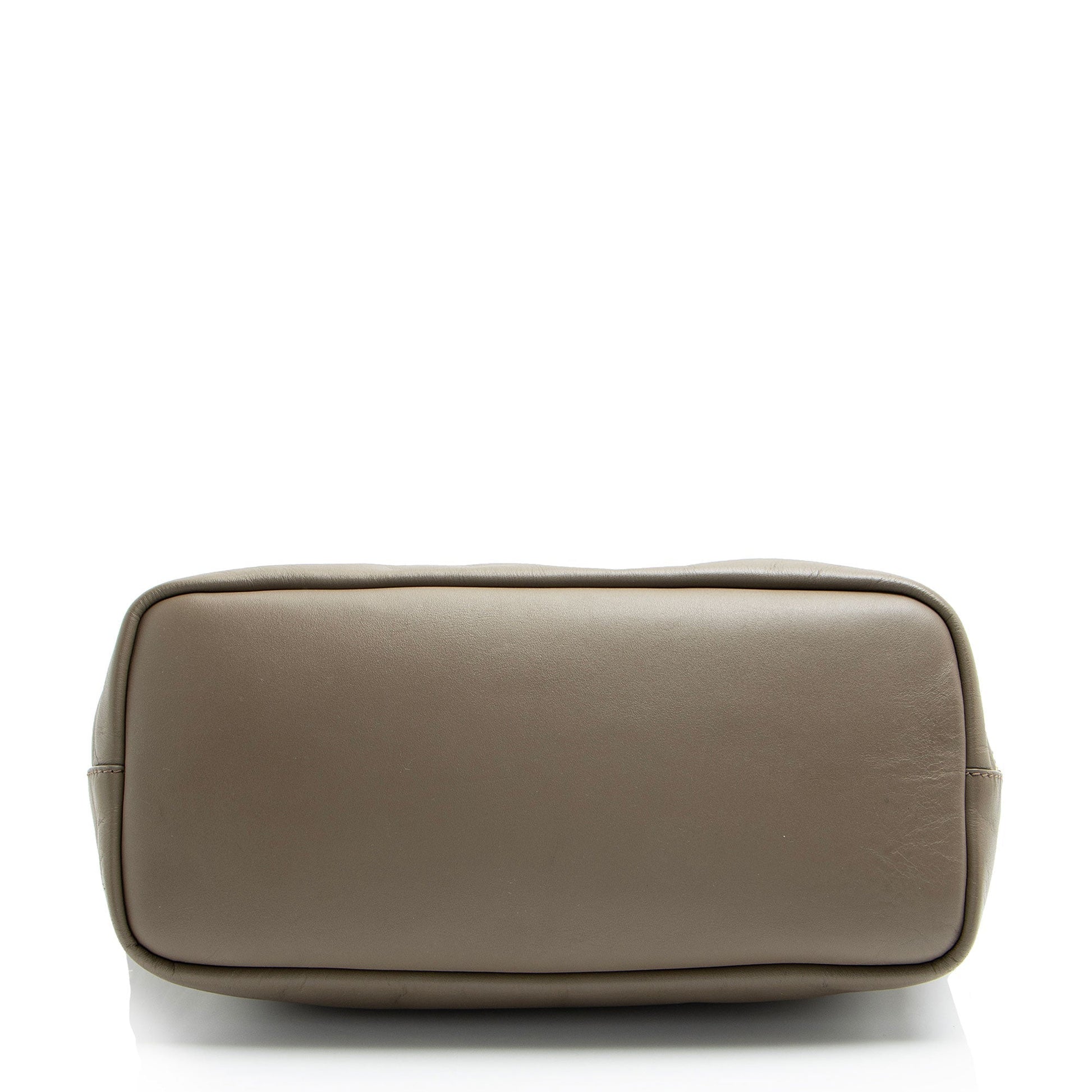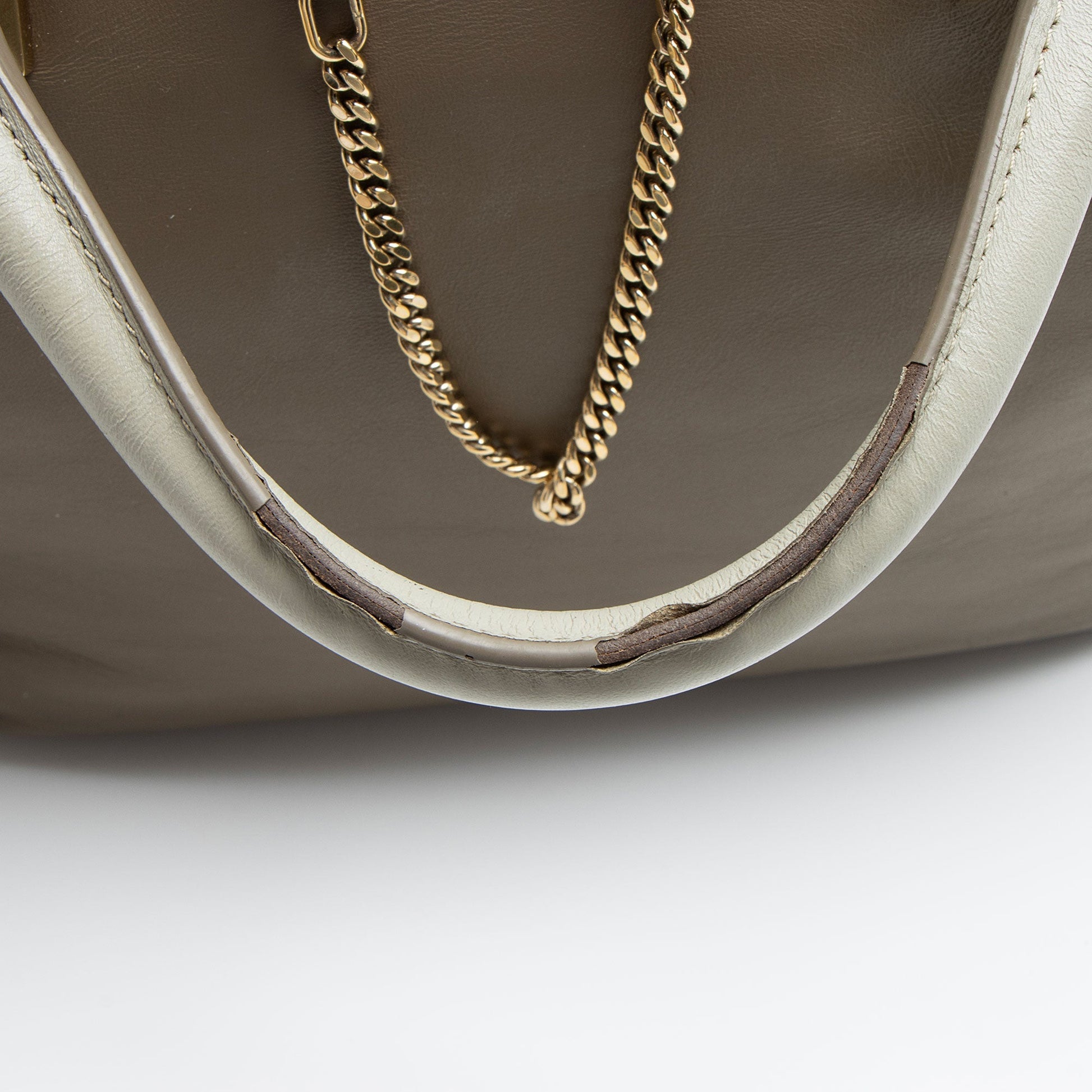 Condition Notes: Visible creasing throughout exterior. Marks and wear throughout handles. Light marks throughout handle casing. Creasing and wear throughout shoulder strap. Moderate surface scratches to hardware. Marks and wear throughout interior.