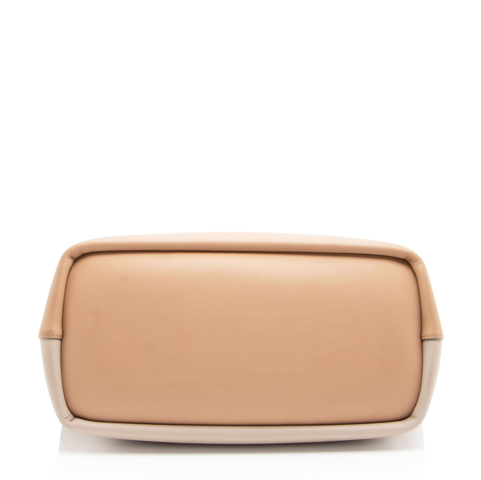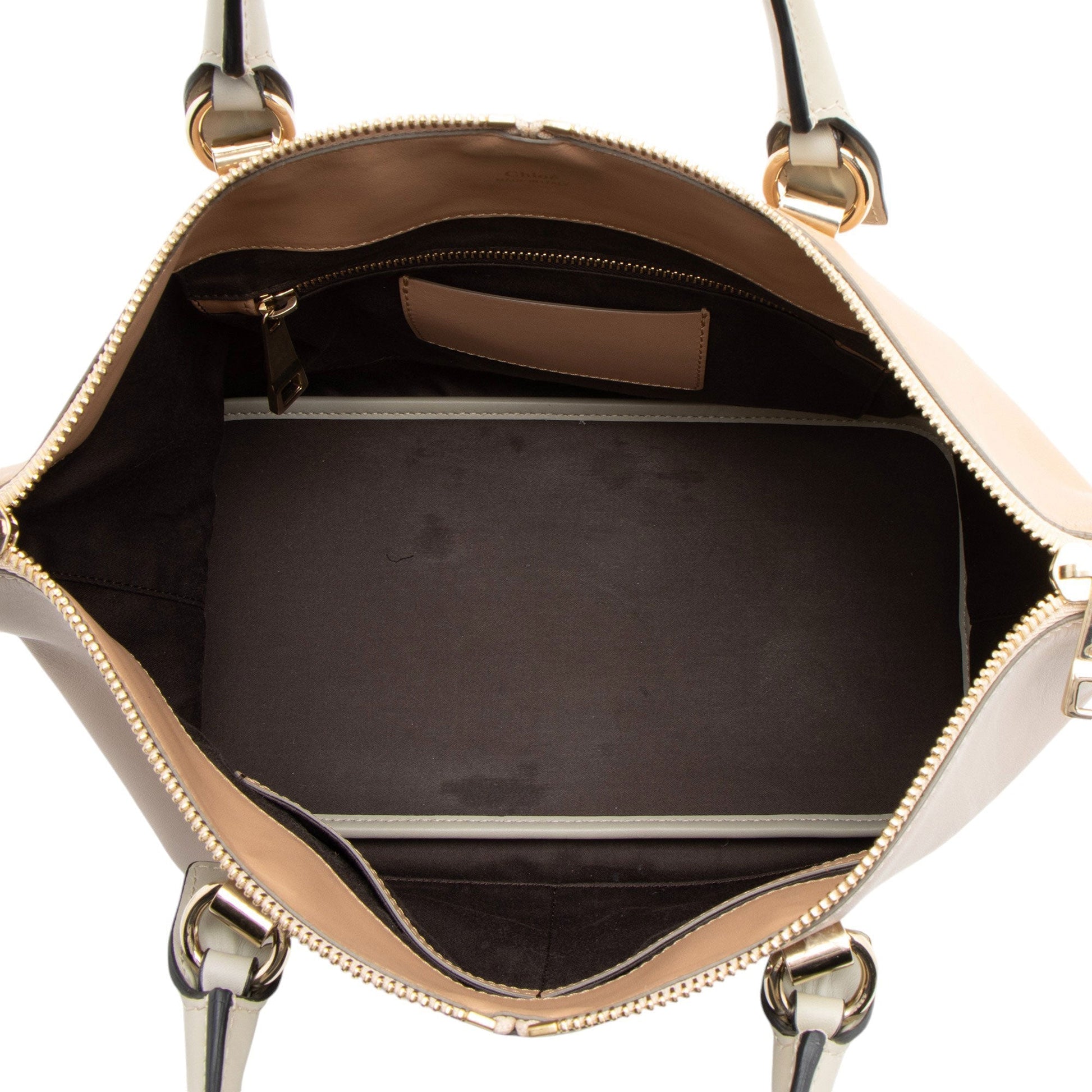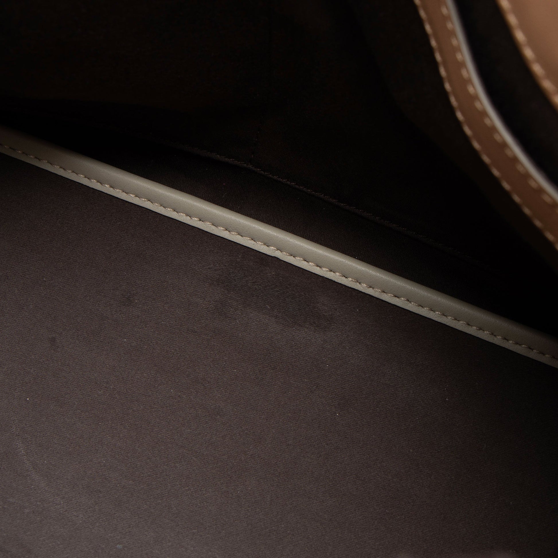 Condition Notes: Subtle creases to exterior. Marks and light darkening throughout handles. Surface scratches to hardware. Visible marks and wear throughout interior. Missing detachable shoulder strap.