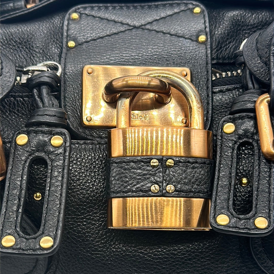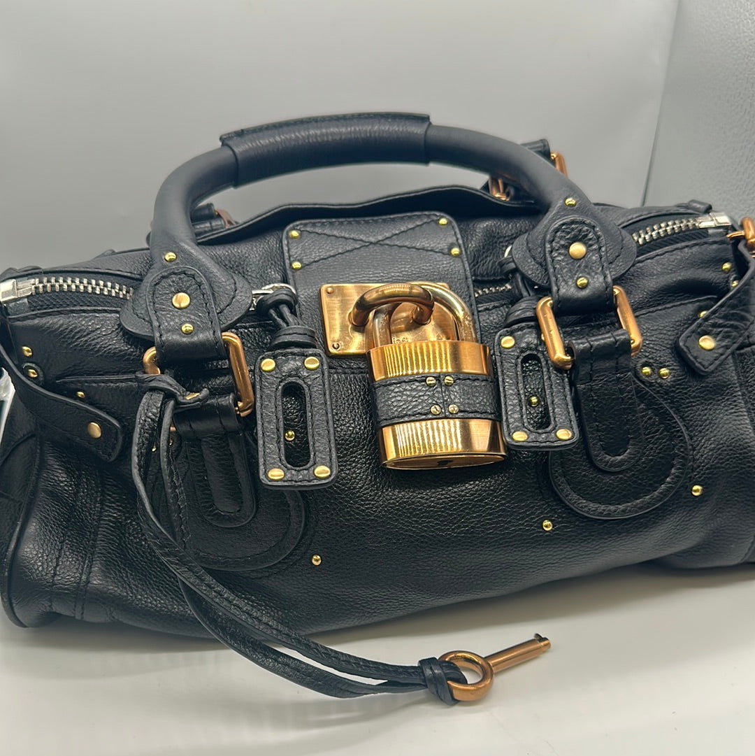 Classic Chloe Paddington Handbag in black leather with rose gold hard wear.