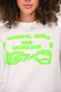 Christian Dior X Cactus Jack White/Green Logo Crew Neck Sweater. Ribbed collar, cuffs, and waistband. Tonal stitching.